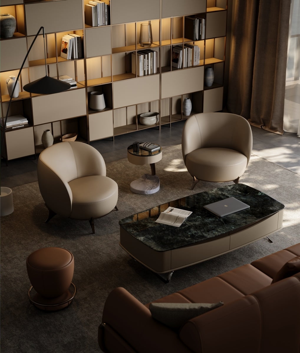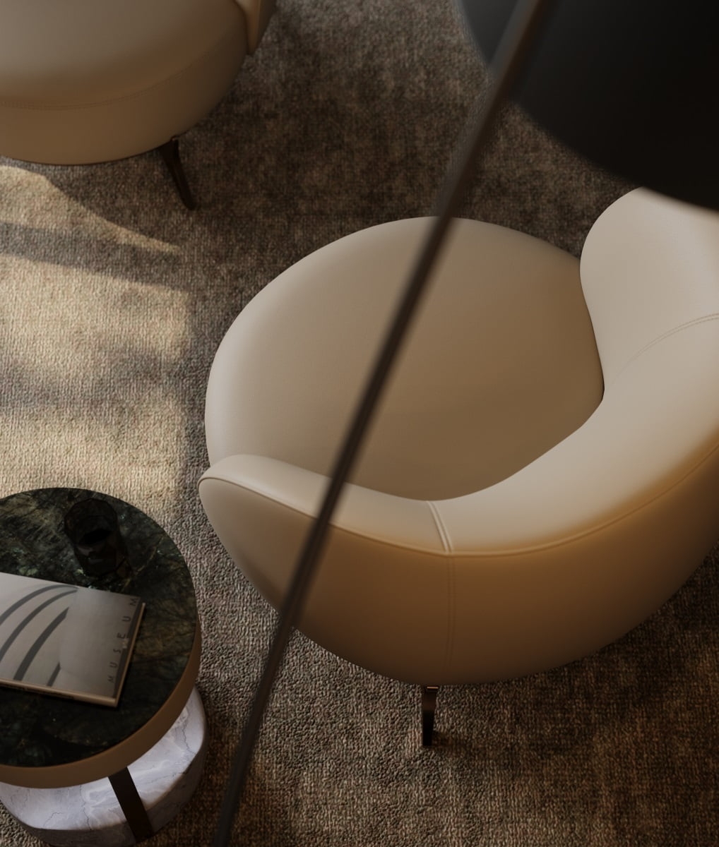 The full-bodied, thick body and delicate legs show the art of design structure in a balanced proportion, which is both comfortable and supportive.