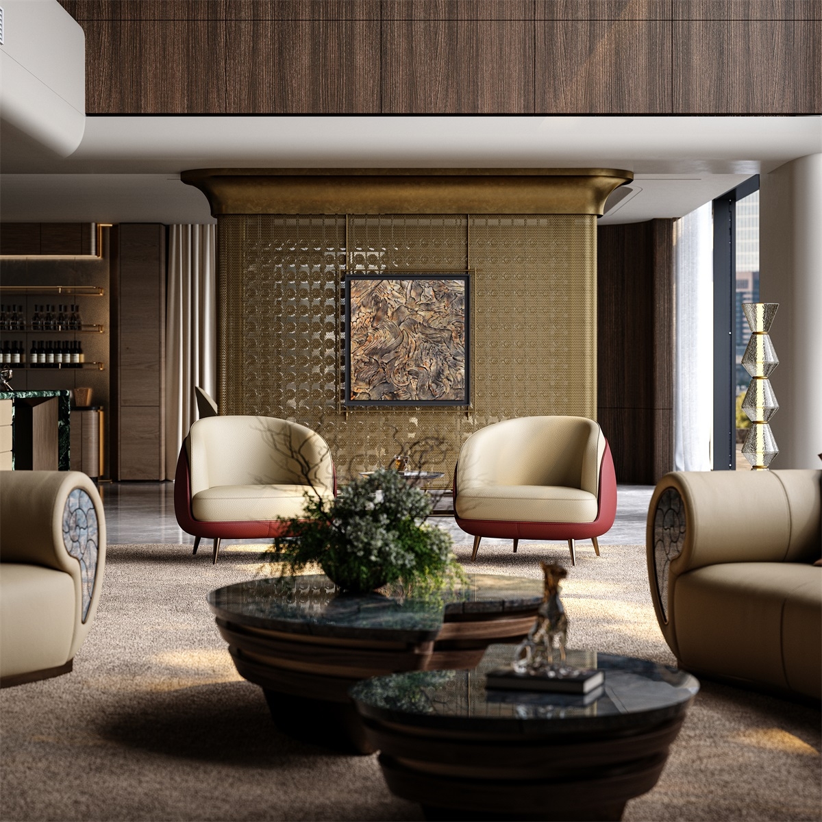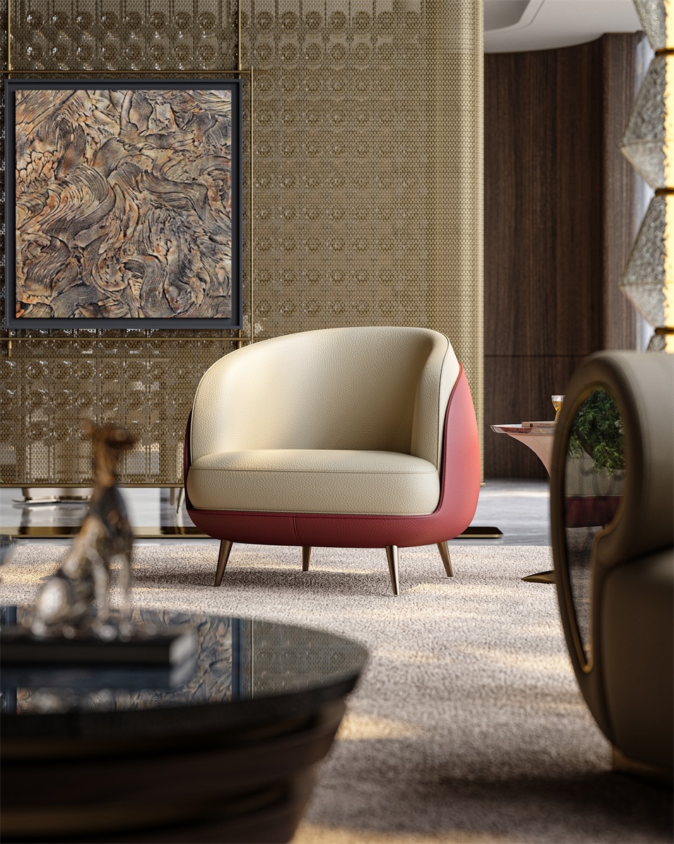 is inlaid within the metal. Despite the combination of different materials, it conveys a feeling of natural comfort. The support feet,