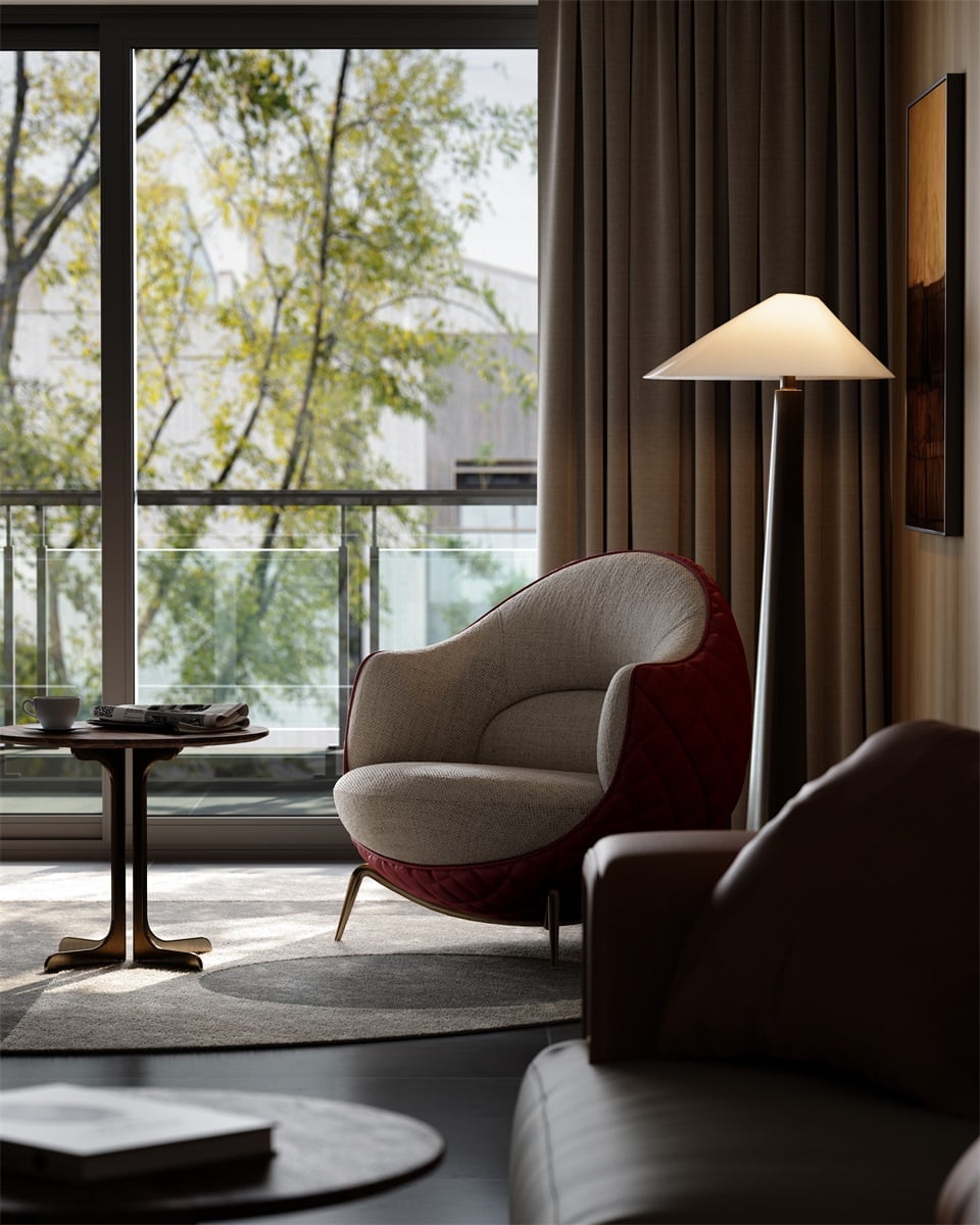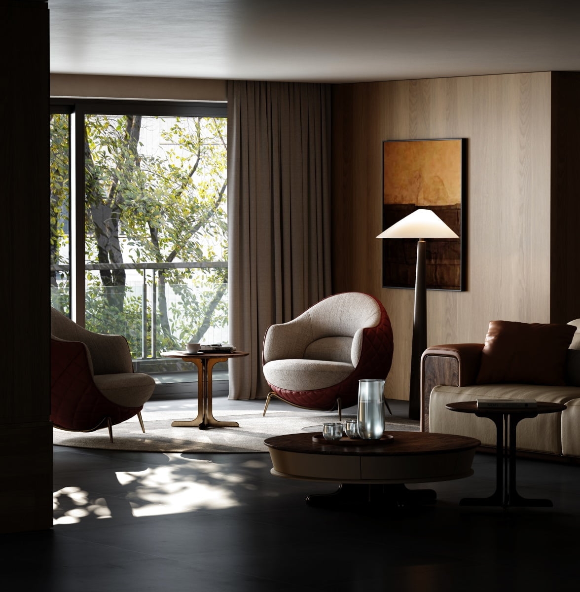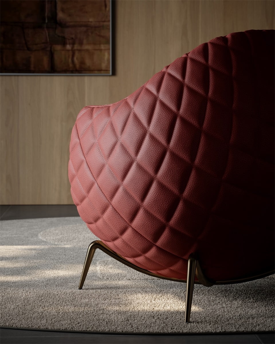The outer side of the chair body is made of top-grade calfskin from Tuscany, Italy. The leather is delicate and tough. After the traditional hand-tanning process, it presents a unique deep luster of wine red. The diamond quilting process, every stitch and every thread is carefully sewn by skilled craftsmen, not only showing the exquisite visual effect, but also reflecting the ultimate pursuit of quality.
