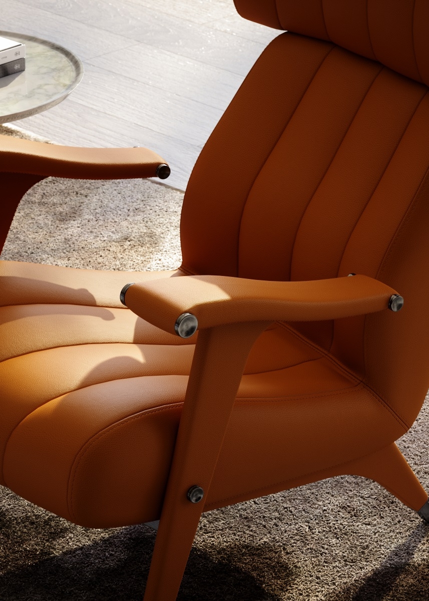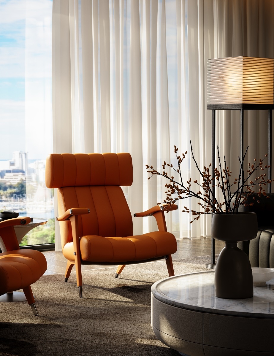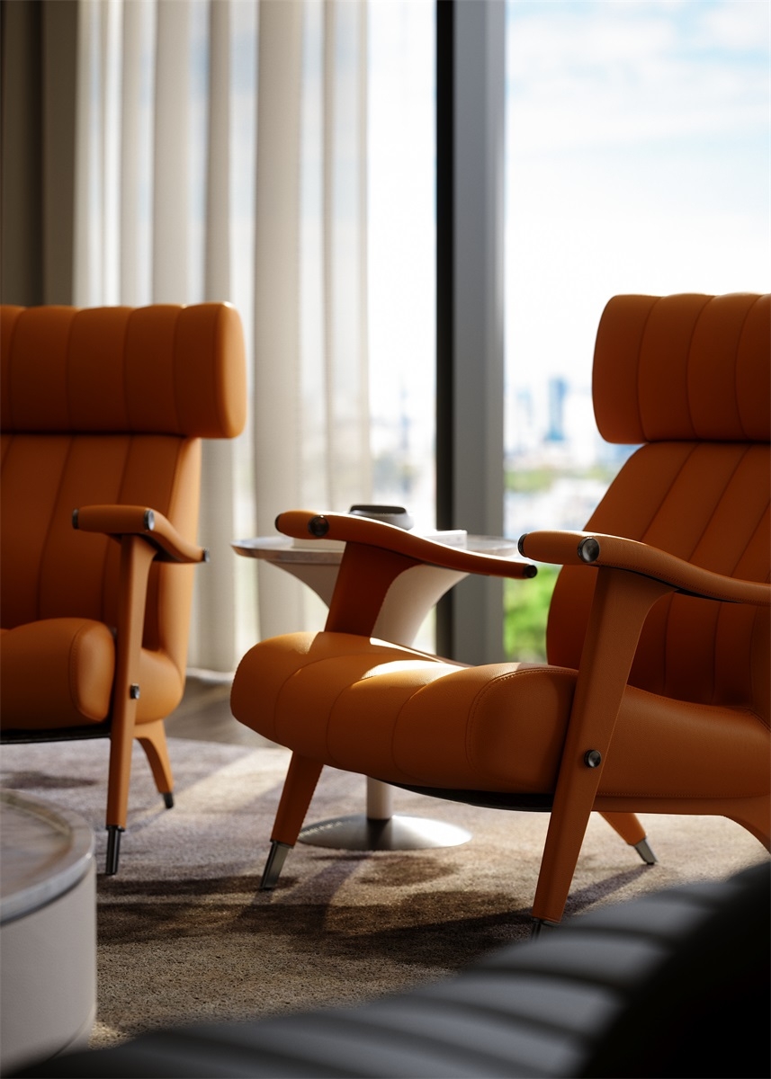with a clean modular silhouette that conveys a striking visual presence and offers robust support, delivering deep comfort