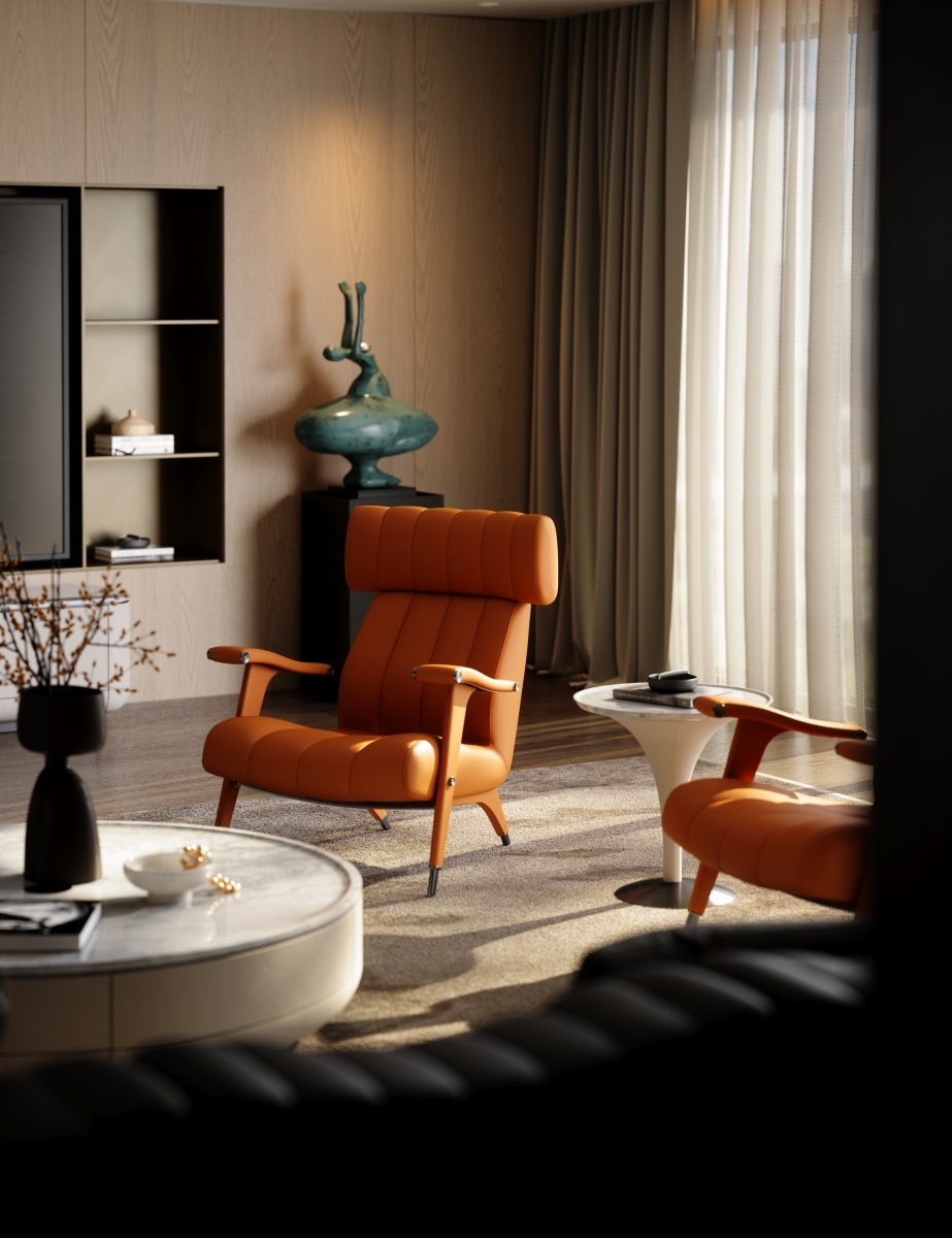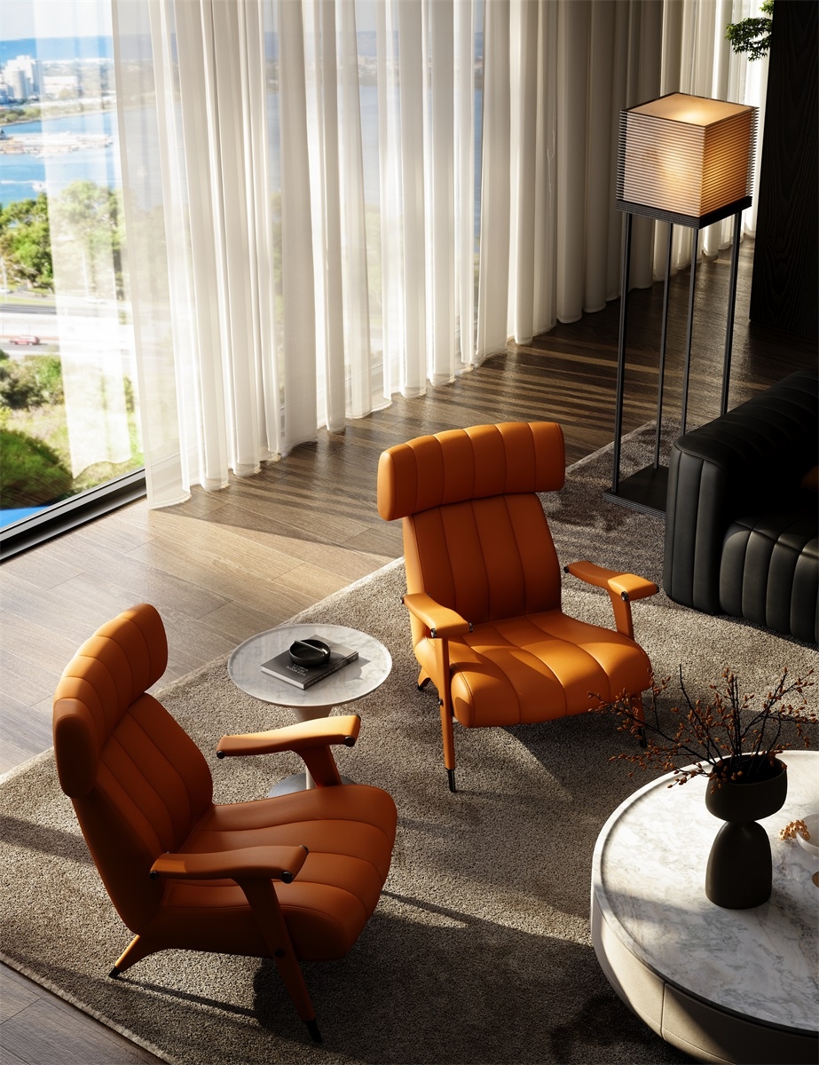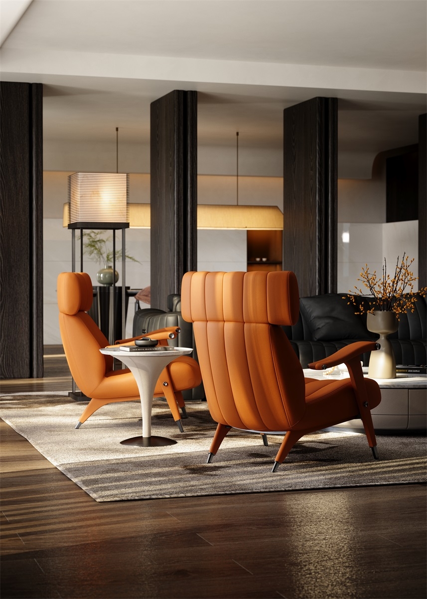 with a clean modular silhouette that conveys a striking visual presence and offers robust support, delivering deep comfort