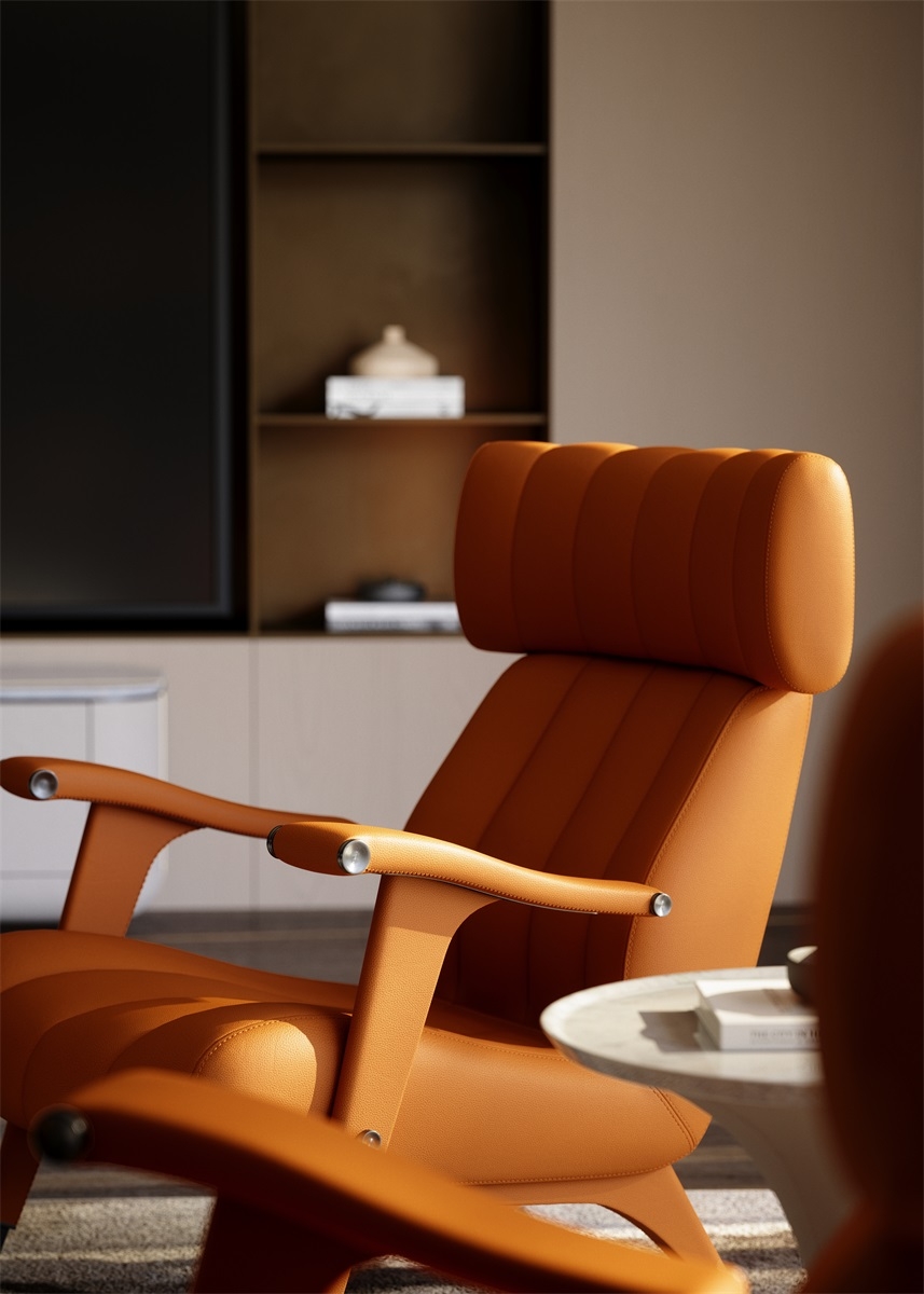 reclining, resting, or lying down. Meanwhile, the generously padded armrests are enveloped in fine, precision stitching,