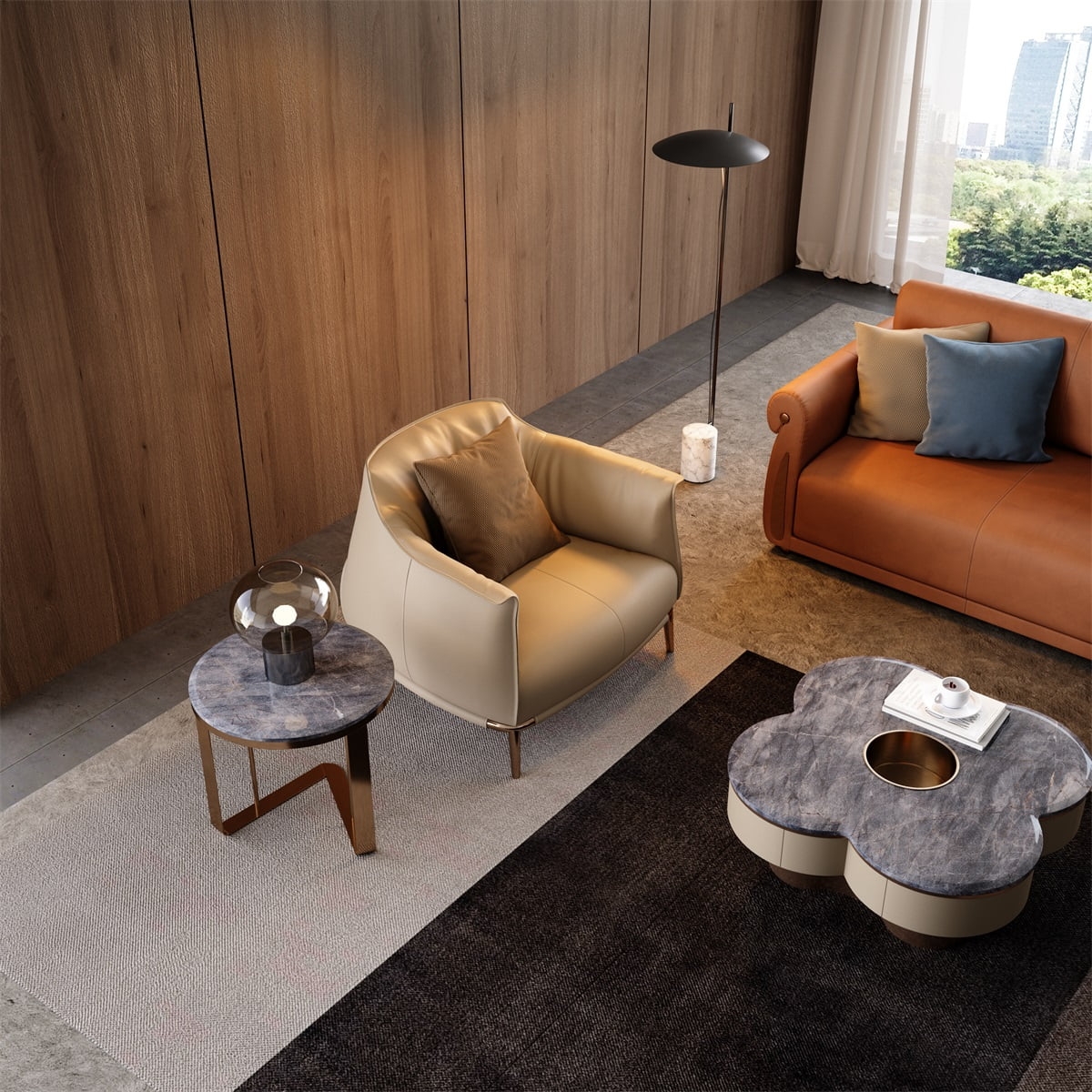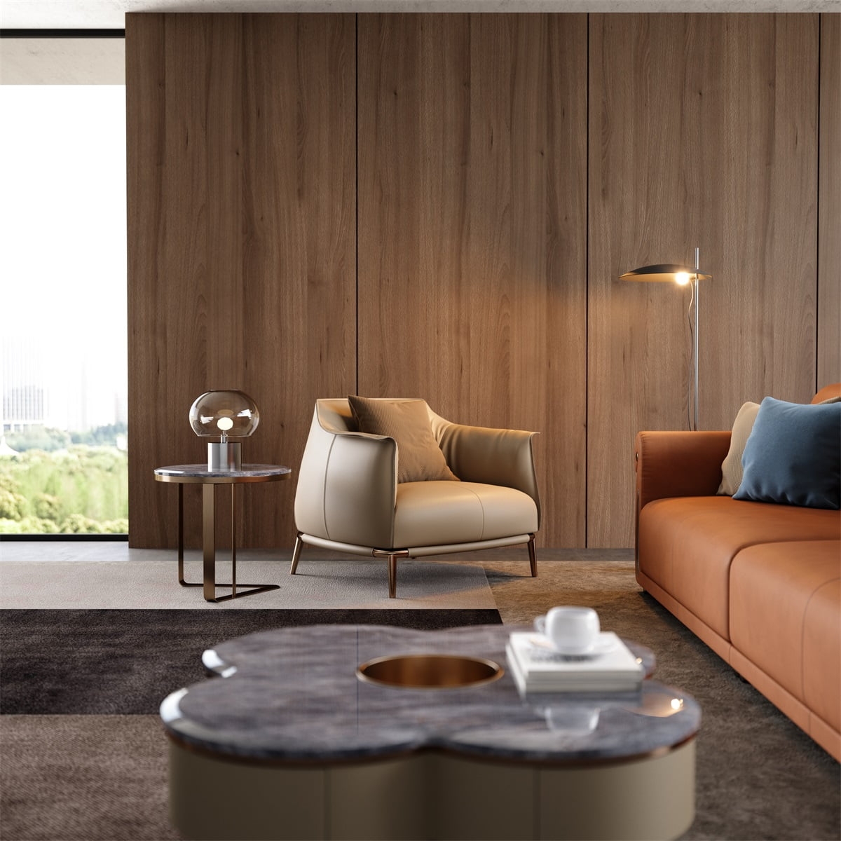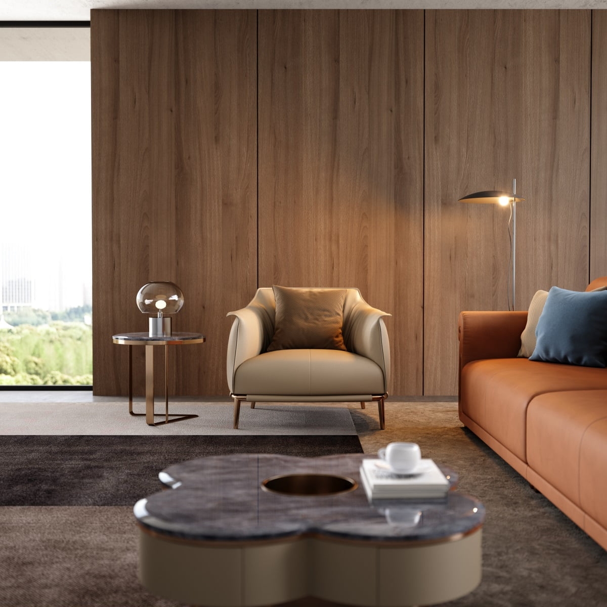 The armrests and backrests are integrated into each other, giving it a perfect wrapping sensation for the human body. The edges show a slightly upturned arc, with soft curves that provide comfortable support and an elegant look with playful and languid playfulness.