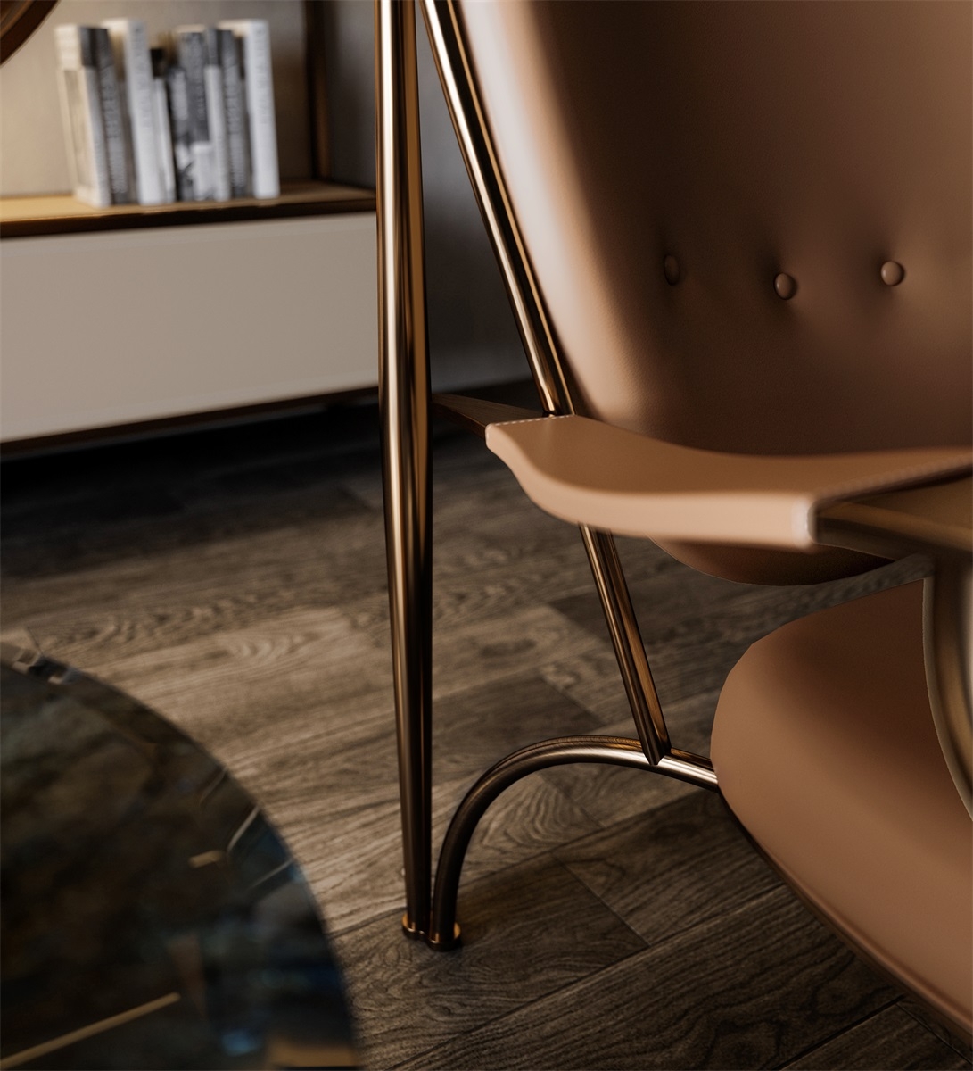 The most distinctive feature of the Pillar series is the cylindrical metal leg, inspired by colonnade design.