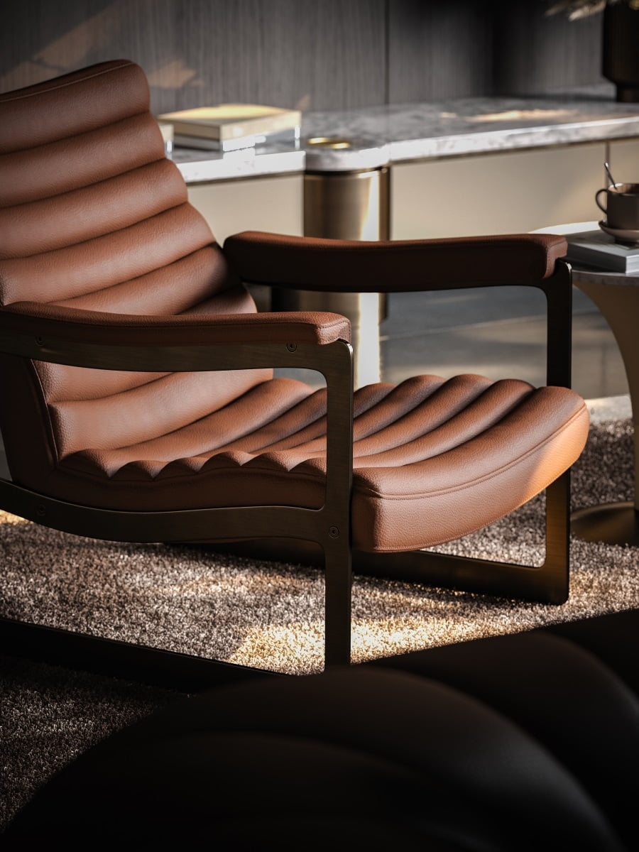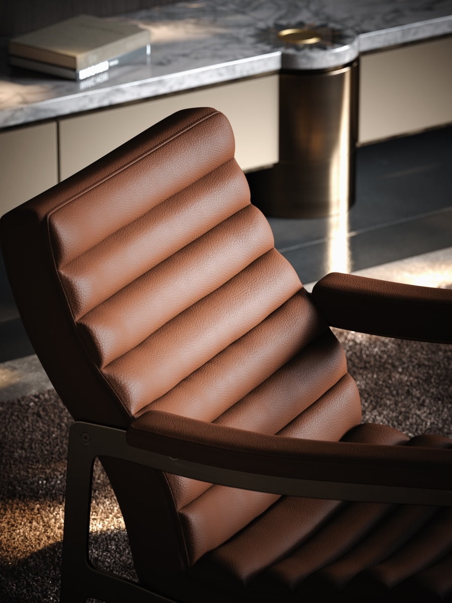From the backrest, bag and armrests to the shape of a flowing stream, the gentle curve not only makes the chair look fuller, but also provides a closer fit to different parts of the human body when sitting.