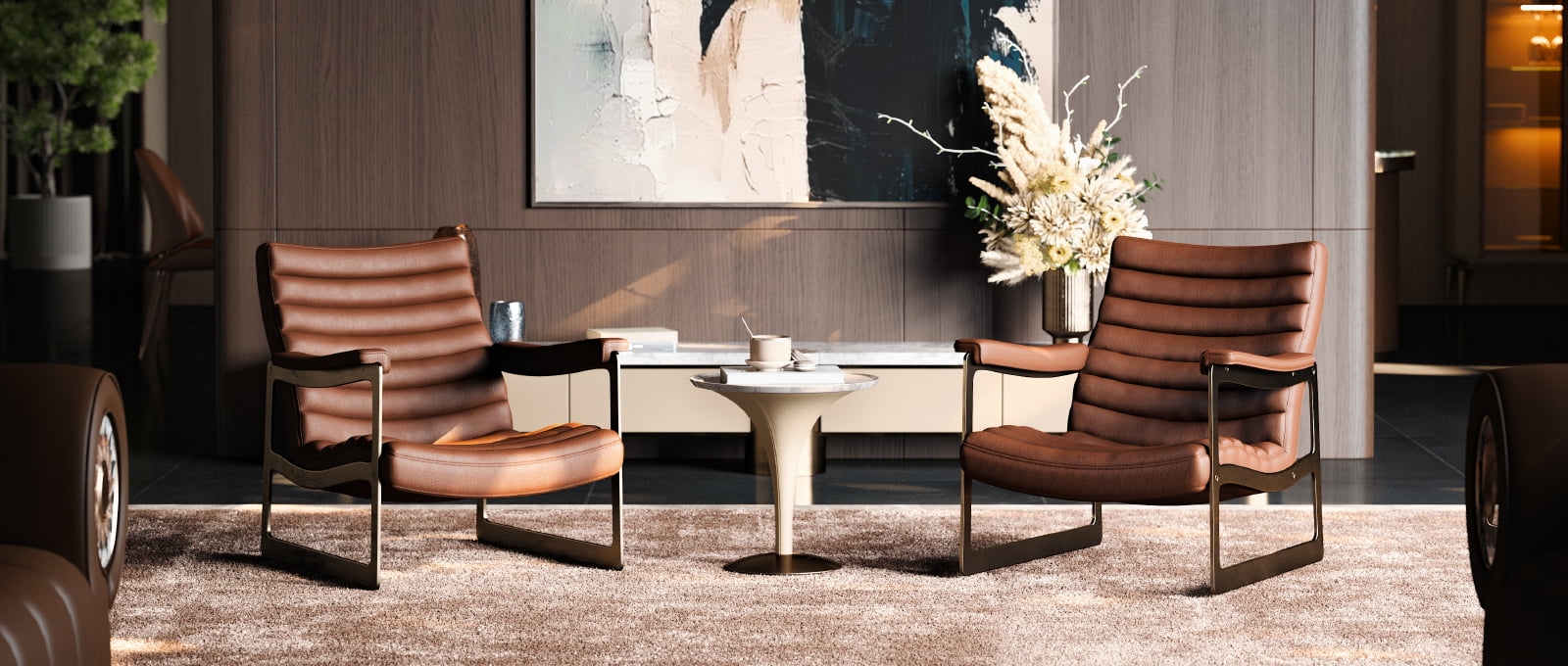 metal - framed leather seating