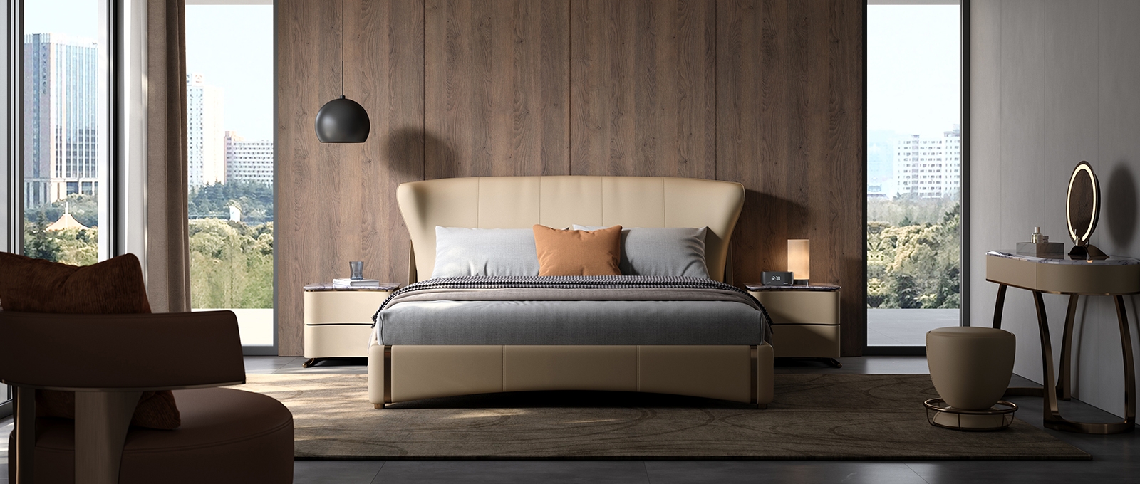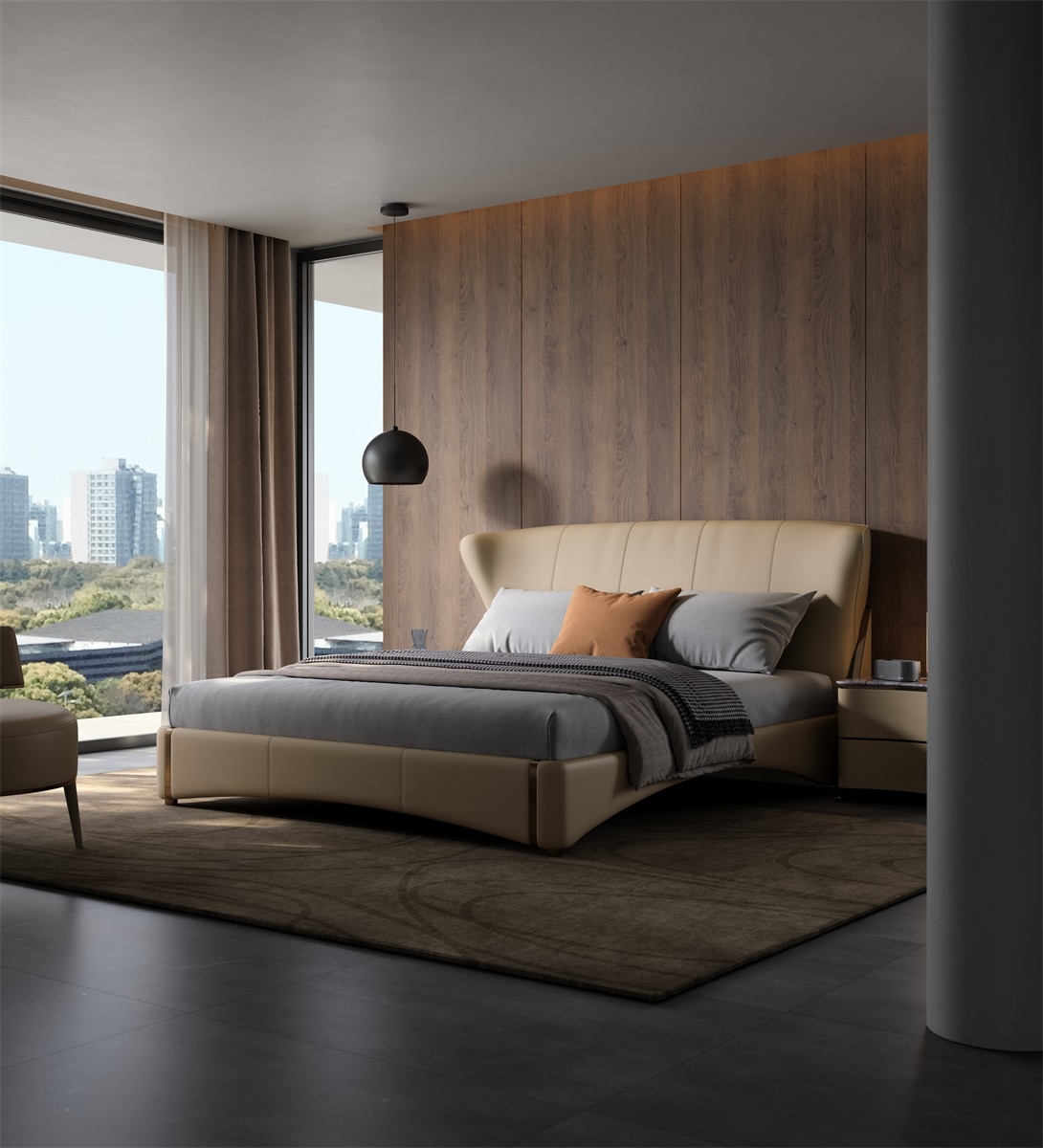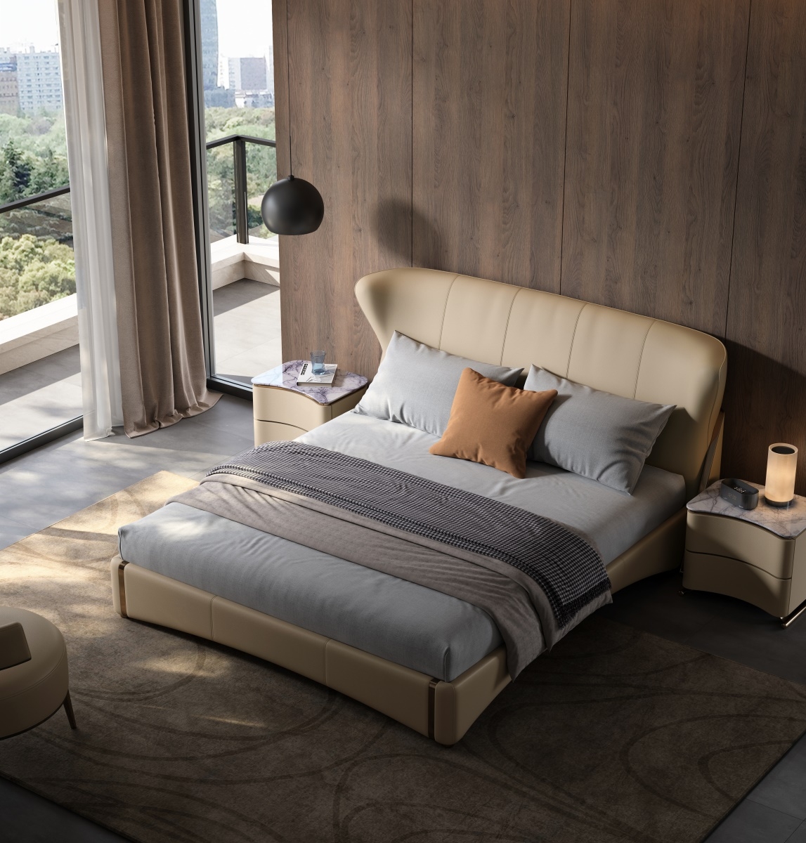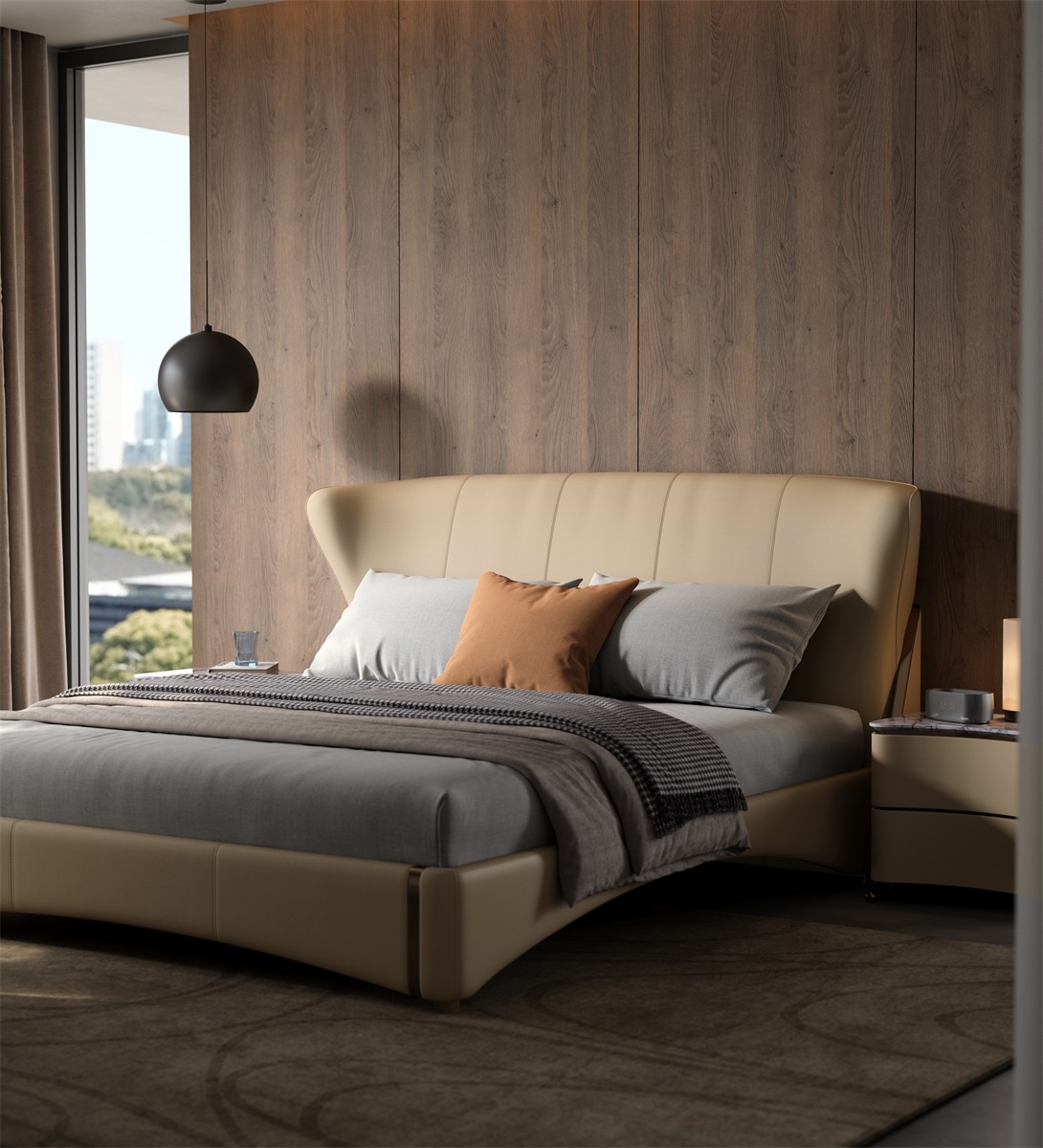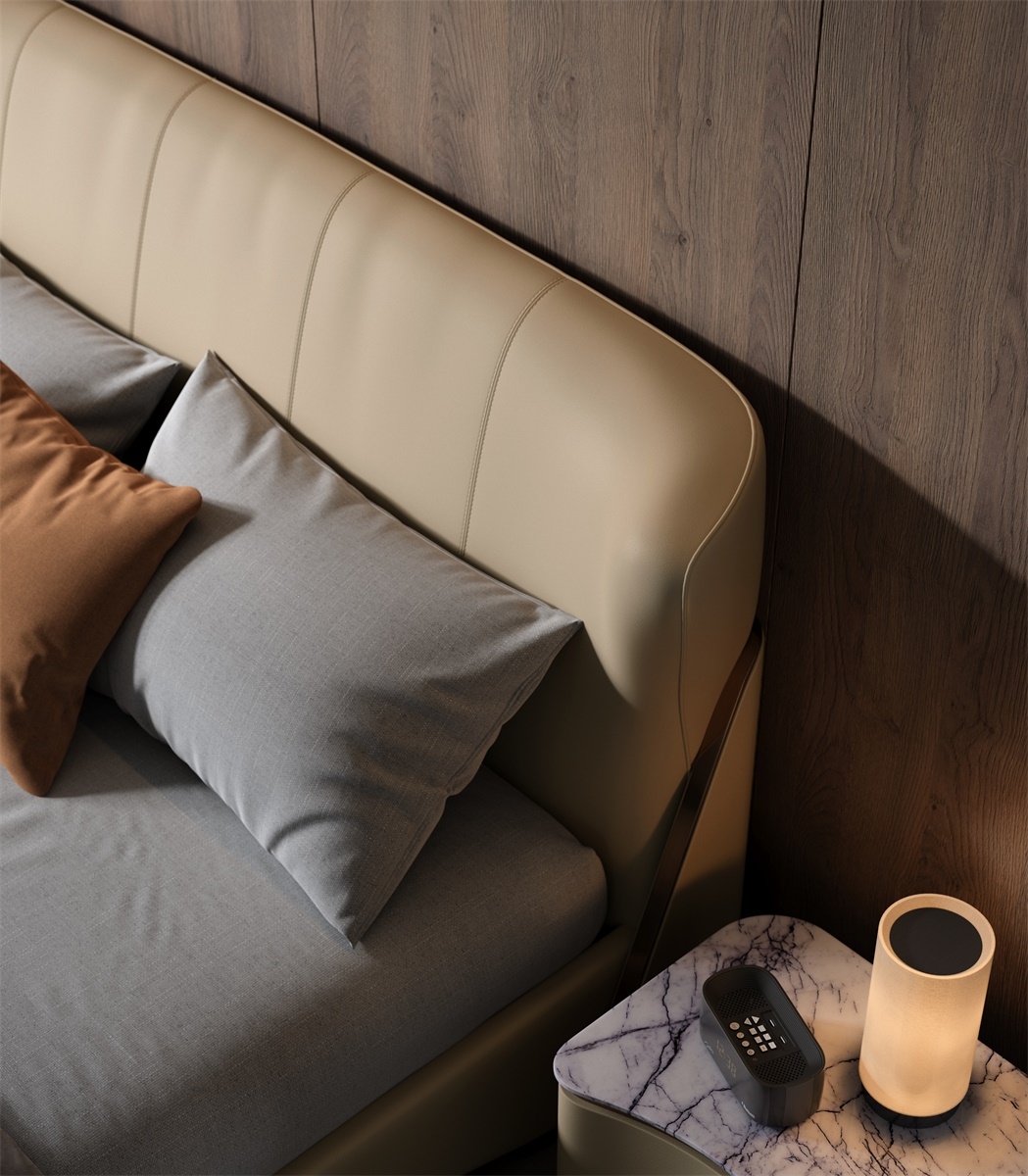 Under the elegant lines, there is a strong sense of power, and accumulating strength can better reflect the need for accumulation in life, understanding the principle of accumulating strength and developing it gradually.The headboard, a sweeping curve forged from the finest full - grain leather, is not just a backdrop — it’s a statement. Its organic, winged silhouette evokes the grace of a couture gown, an architectural marvel that cradles your space in timeless elegance.