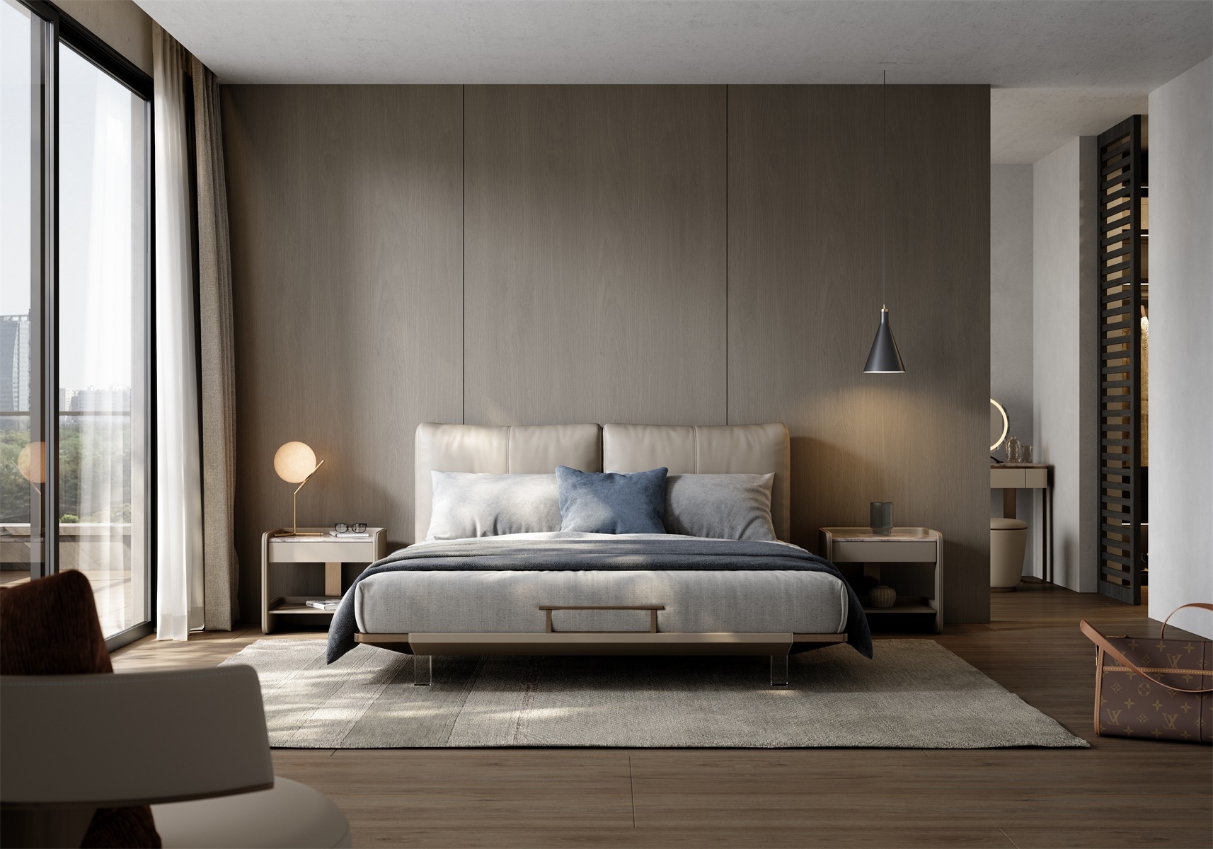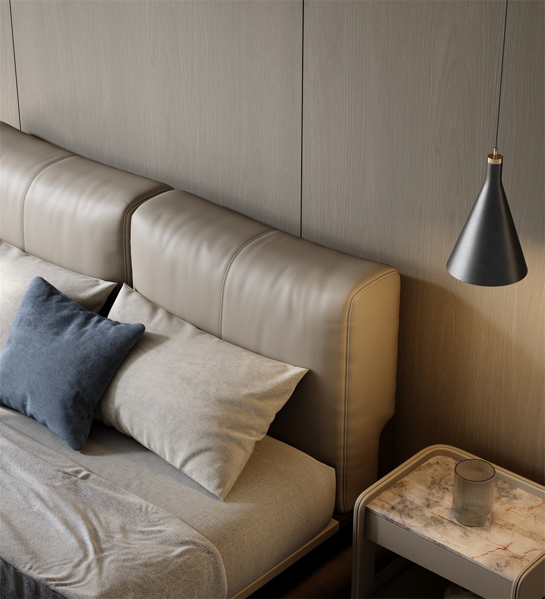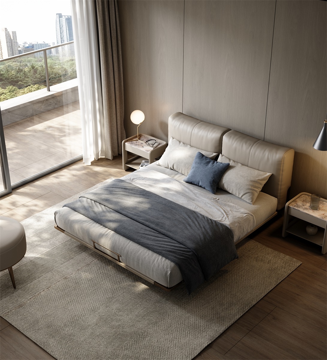 The bed adopts a suspended structure, with the edge of the bed maintaining a precise distance from the ground. Light and shadow can freely shuttle, infusing the bedroom with a sense of "lightness as if nothing". The headboard soft package is designed based on the S-curve of the human spine, filled with high-elastic memory foam and down, providing zero-pressure coverage for the head, neck, waist and back. Before going to bed, you can lean on it to read, saying goodbye to "aching shoulders and sore back", and reshaping the aesthetics of sleep support.