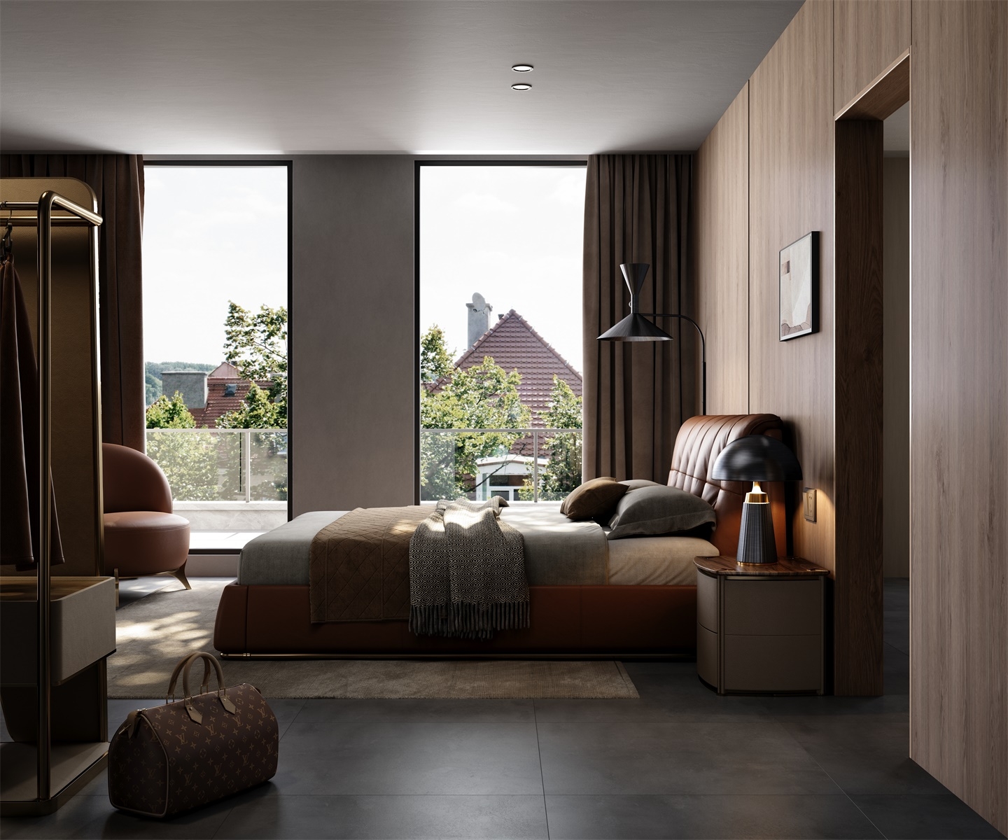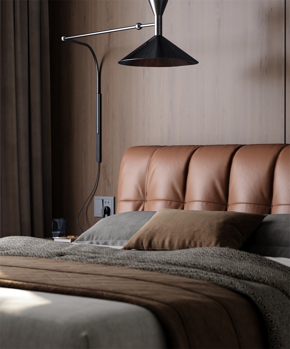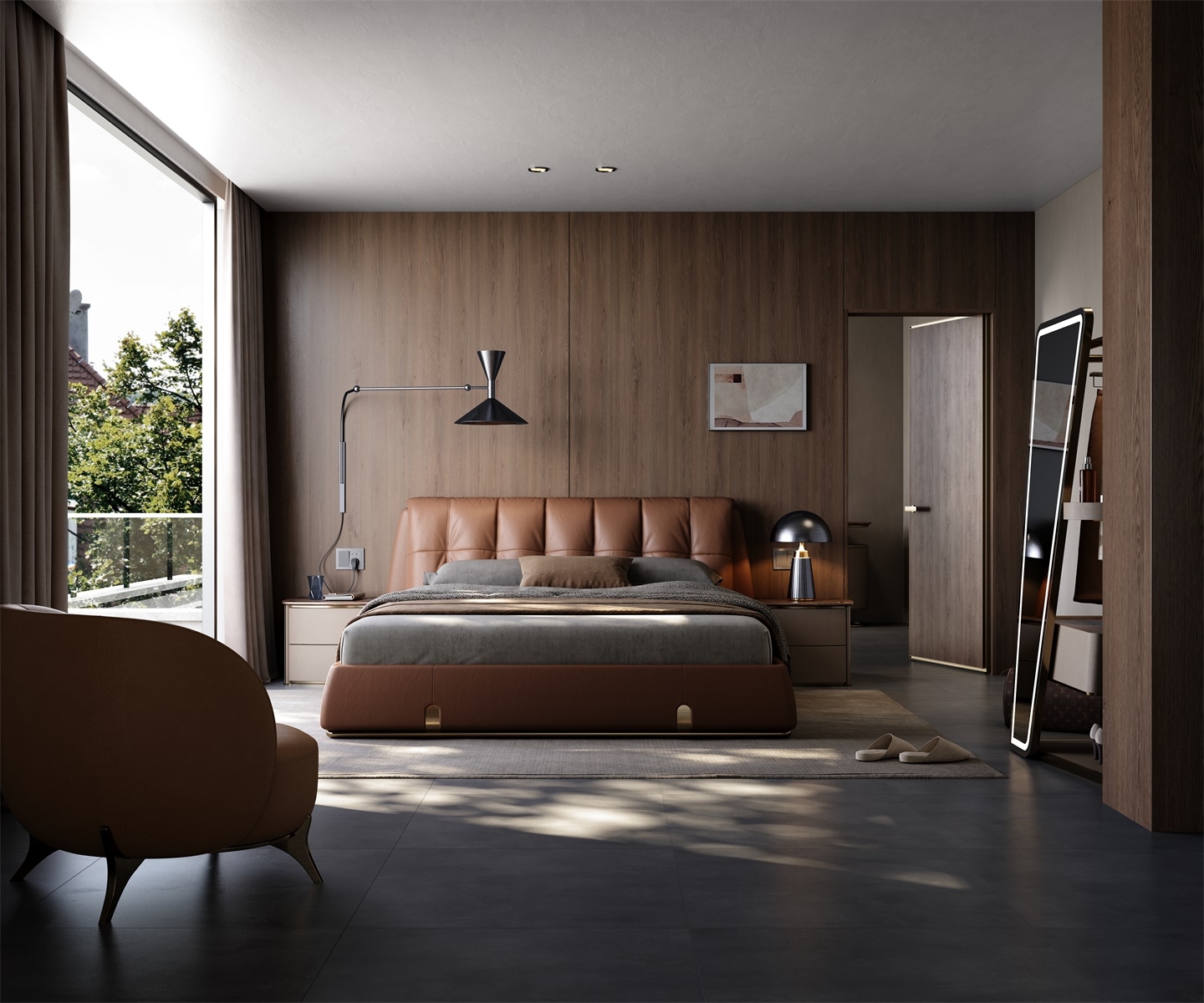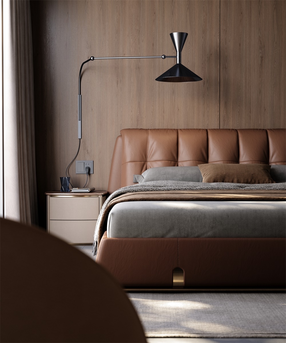 In the realm of high - end bedroom furnishings, this bed reigns supreme. It masterfully blends a tufted, structured design, sumptuous materials, and meticulous detailing to forge a sleep sanctuary for the most discerning connoisseurs.The headboard, adorned with neatly arranged tufts on rich brown leather, presents a geometrically precise and visually striking silhouette. The square - paneled pattern extends to the bed base, creating a cohesive and sophisticated look.