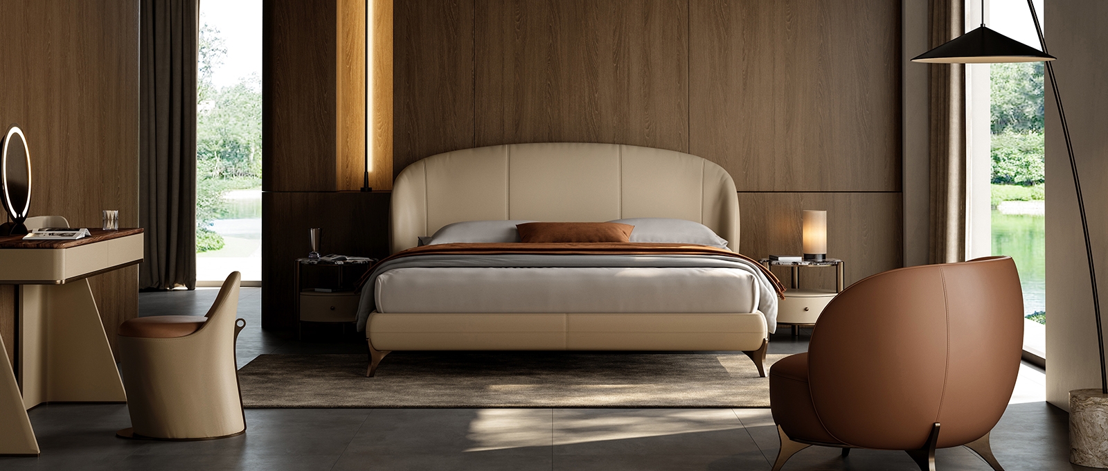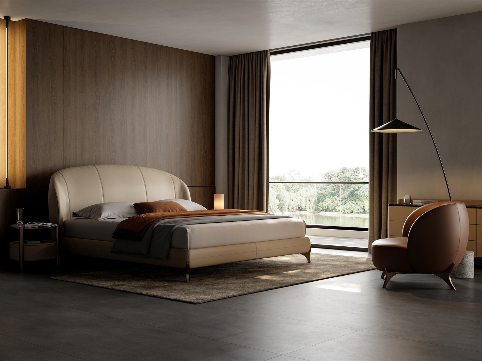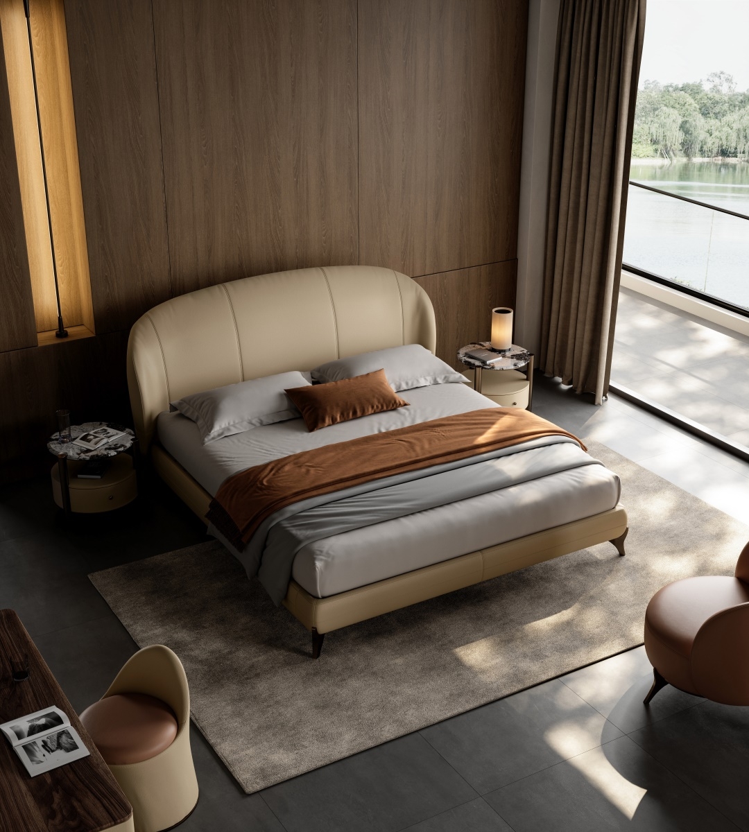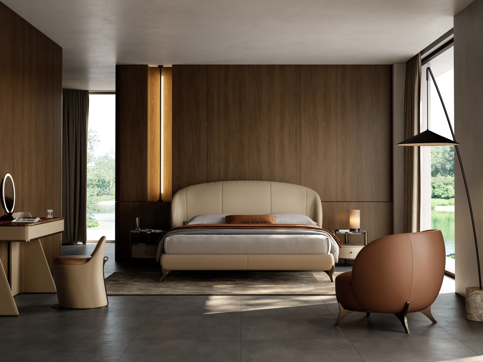 The design endows a minimalist style full of power, with exquisite materials and clever ideas, which well reflect the extreme power.The headboard, a seamless curve forged from the finest full - grain leather, is an architectural marvel. Its fluid lines and plush form evoke the grace of a high - fashion runway, transforming your bedroom into a private atelier of style.