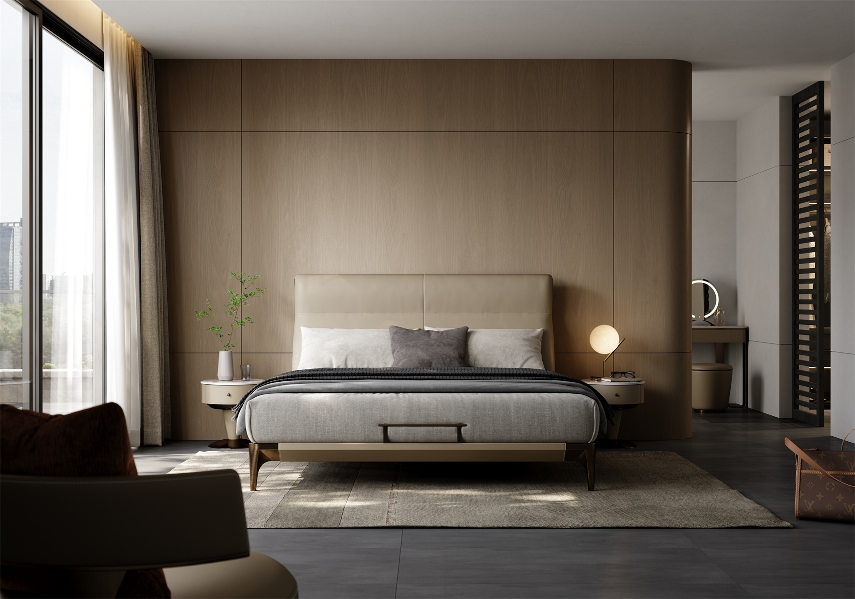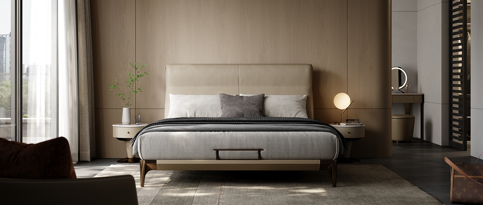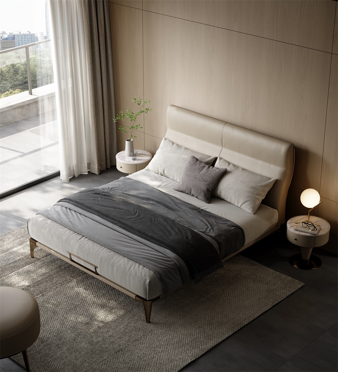 The exquisite leather wrapping and curved headboard design add more elegant temperament to this bed, while the low metal bed legs make it more luxurious and allow the sweeping robot to freely shuttle.