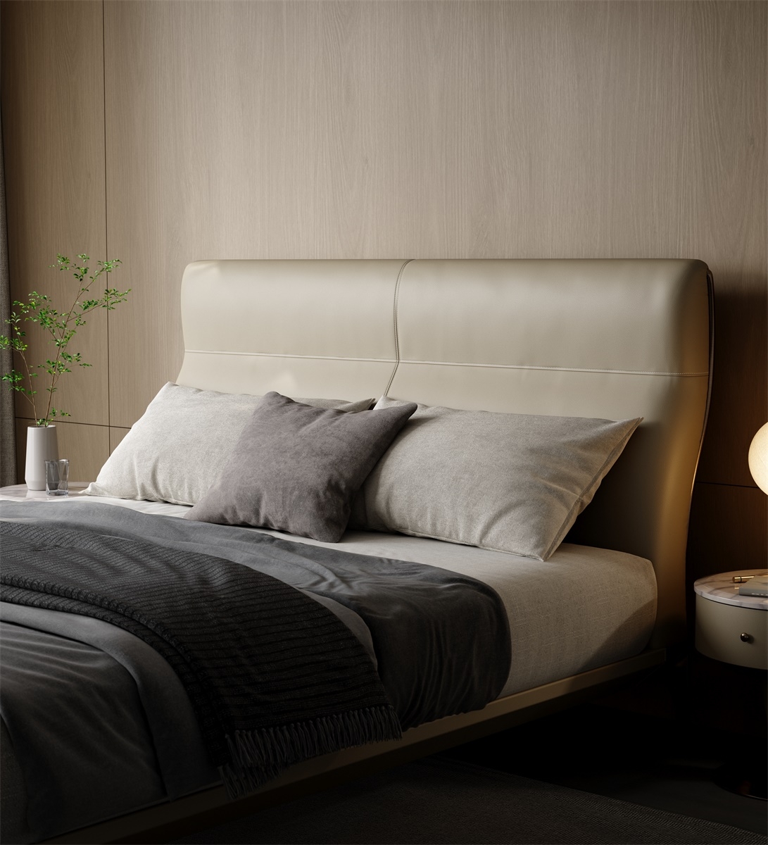 The headboard soft package follows the S-curve of the human spine. Its thickness and curvature have been adjusted hundreds of times to fit the natural shape of the shoulders, neck, waist and back. Filled with a mixture of high-elastic sponge and down, it provides a zero-pressure wrapping sensation for the head and back. Before going to bed, lean on it to read or watch TV series, and bid farewell to "aching shoulders and sore back". The bed frame adopts a suspended row frame and is equipped with silent bed feet. There is no noise when turning over, ensuring a safe and smooth deep sleep.