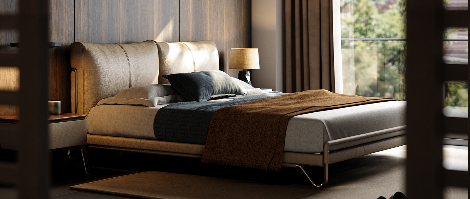 Modern Beige Leather Bed