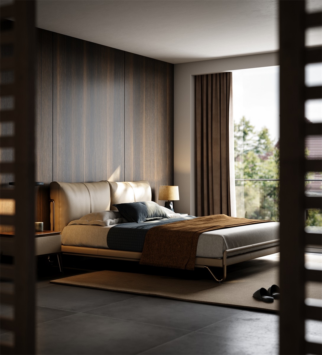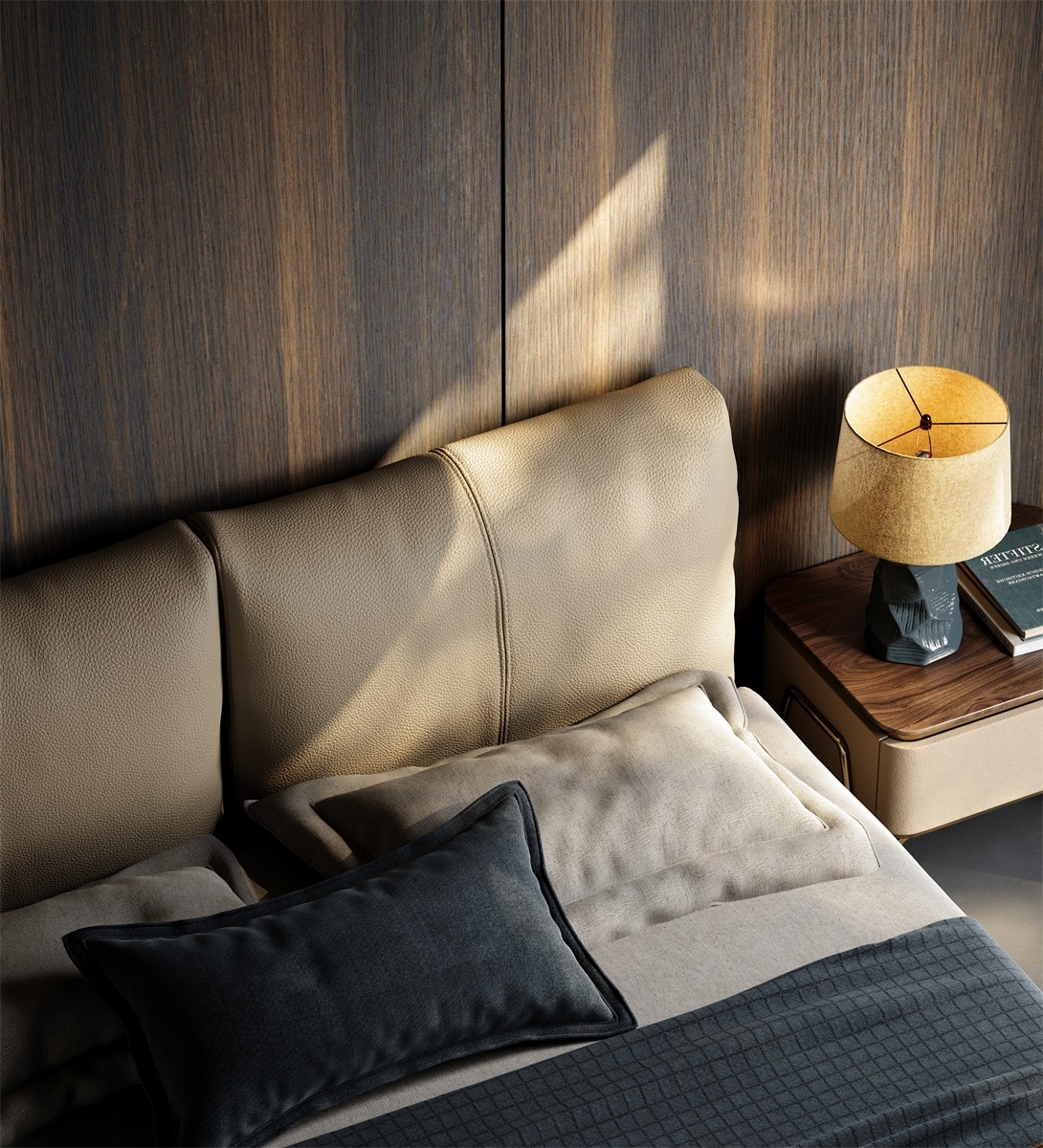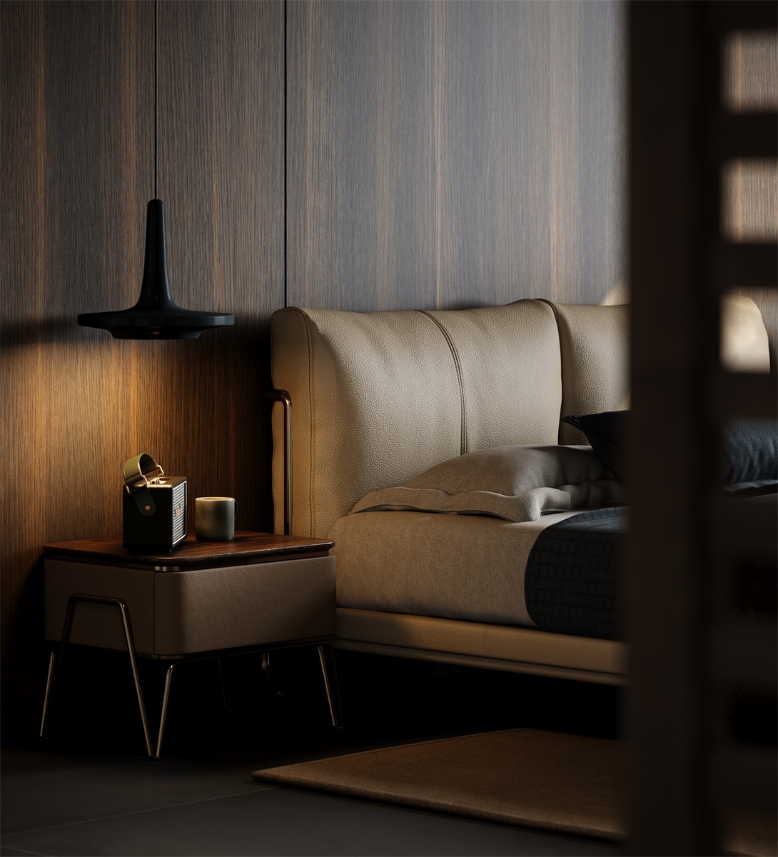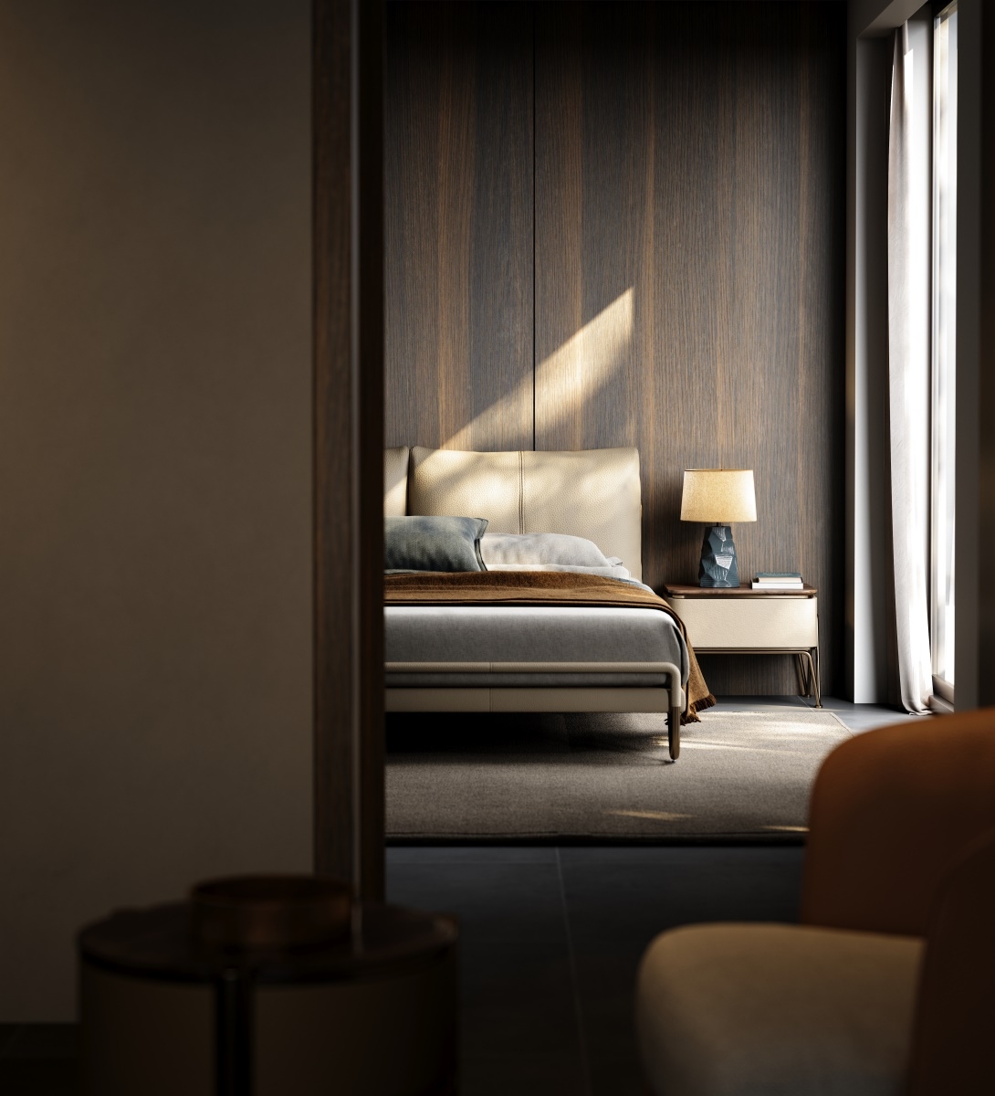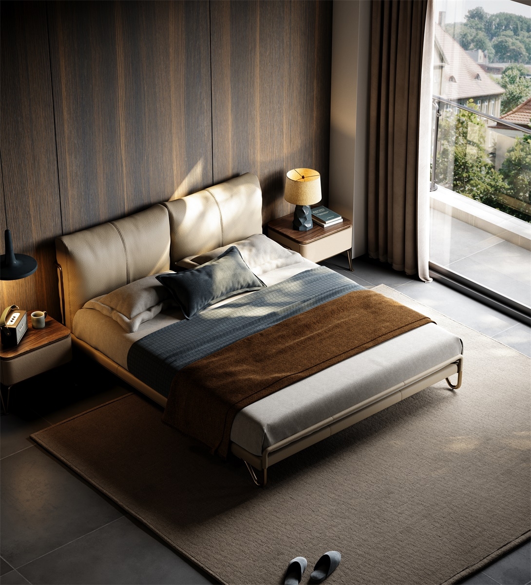 Carefully selected top-quality top-grain cowhide from European pastures, with tiny and even pores on the surface, fine texture and natural beauty. After going through multiple rigorous tanning and dyeing processes, the light beige color is soft and elegant, both dirt-resistant and easy to match with various bedroom styles. The genuine leather surface feels warm and soft to the touch, as if every touch is an intimate dialogue with nature, bringing you an unparalleled luxurious skin-friendly experience and highlighting your ultimate pursuit of a quality life.