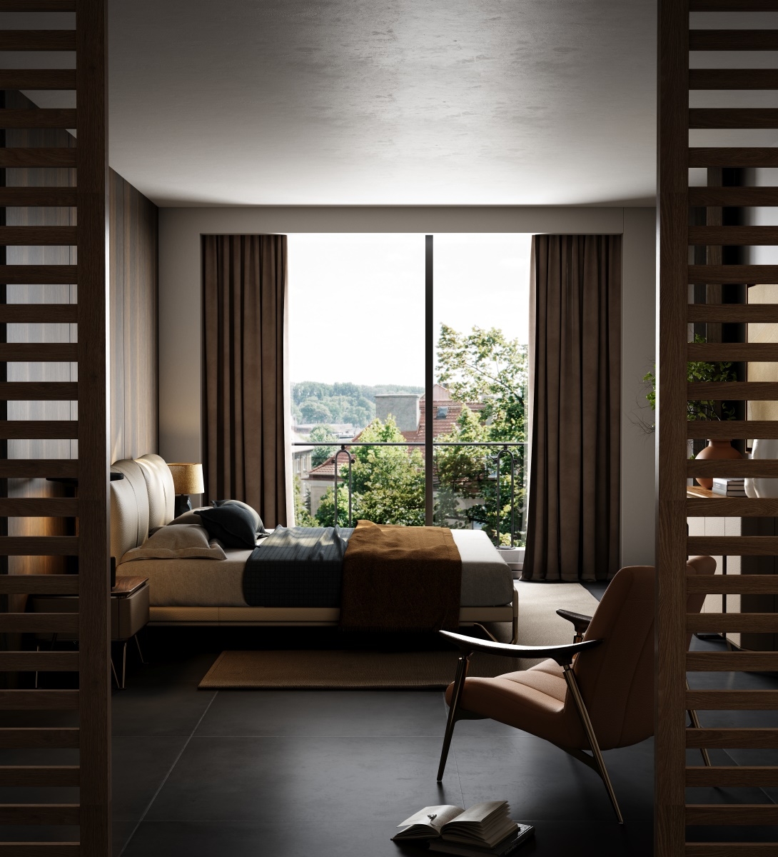 Bed with Contrast Pillows and Throw