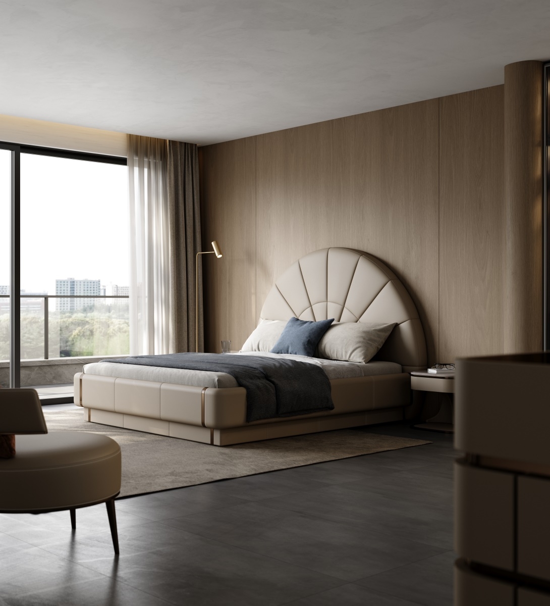 High - End Upholstered Bed with Curved Headboard