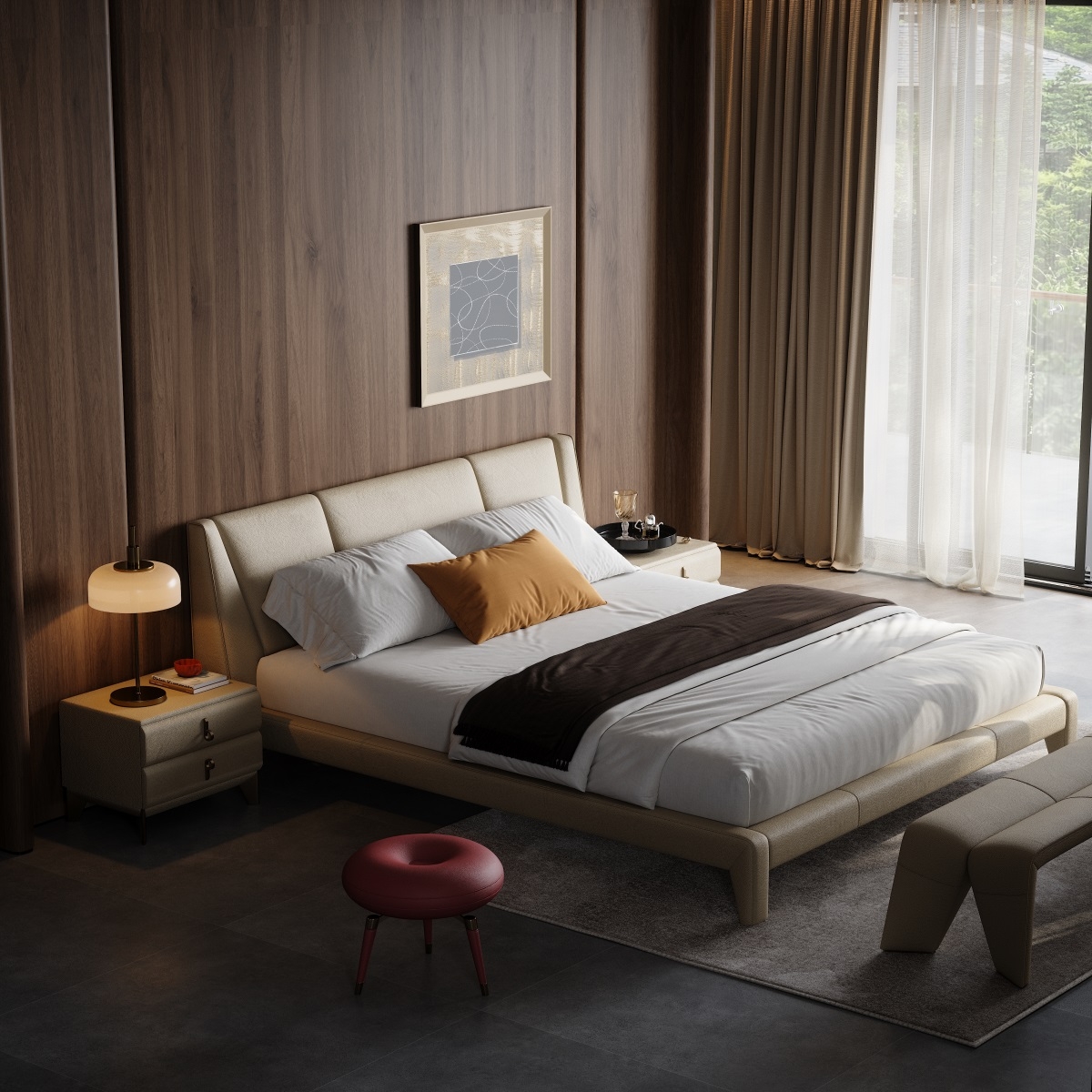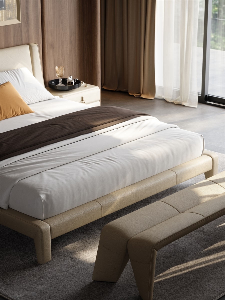 Built-in drawers create storage space, combining storage function with oriental design aesthetics. It inherits