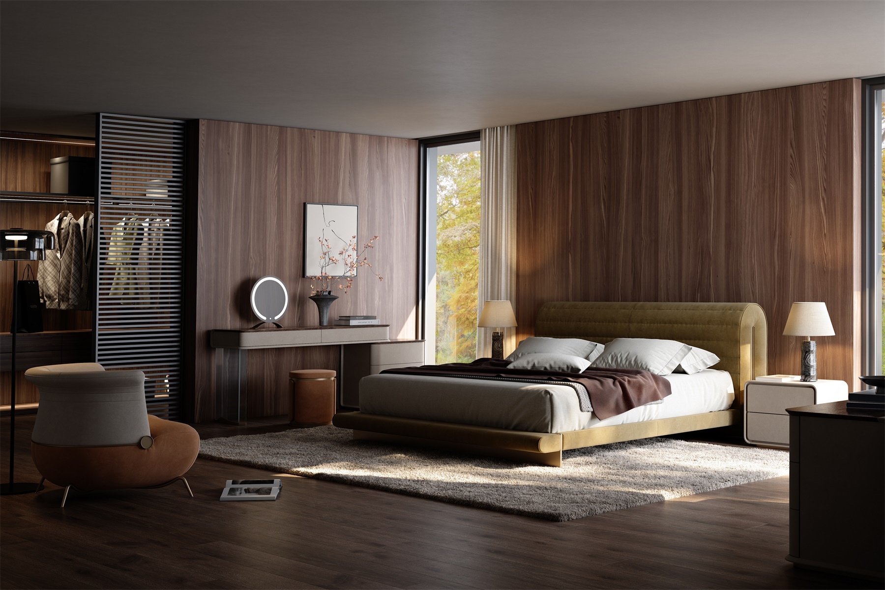 Paired with simple bedding + artistic table lamps (as shown in the picture), it is the intersection of "rest and aesthetics" - when you lie down to rest and relax your body and mind, the "soft touch of leather" and the "warm texture of solid wood" make "bedtime" an "immersive artistic enjoyment", using "scenes" to interpret the "essence of luxury life".