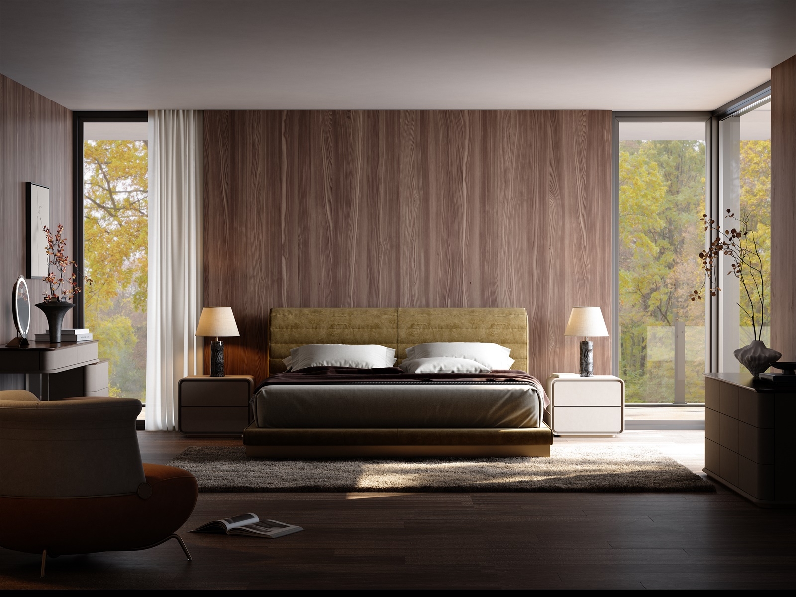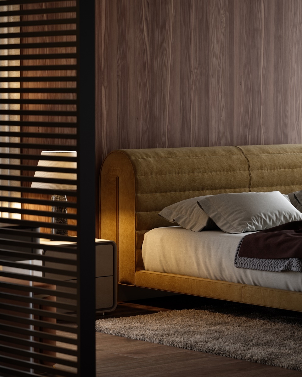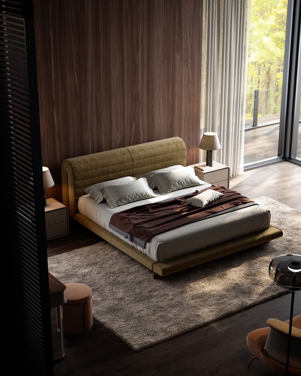 The soft-packed headboard with geometric edges is full of modern sense, just like the rolling waves that constantly enrich the texture of the space, and the artistic style is full of retro tenderness.
