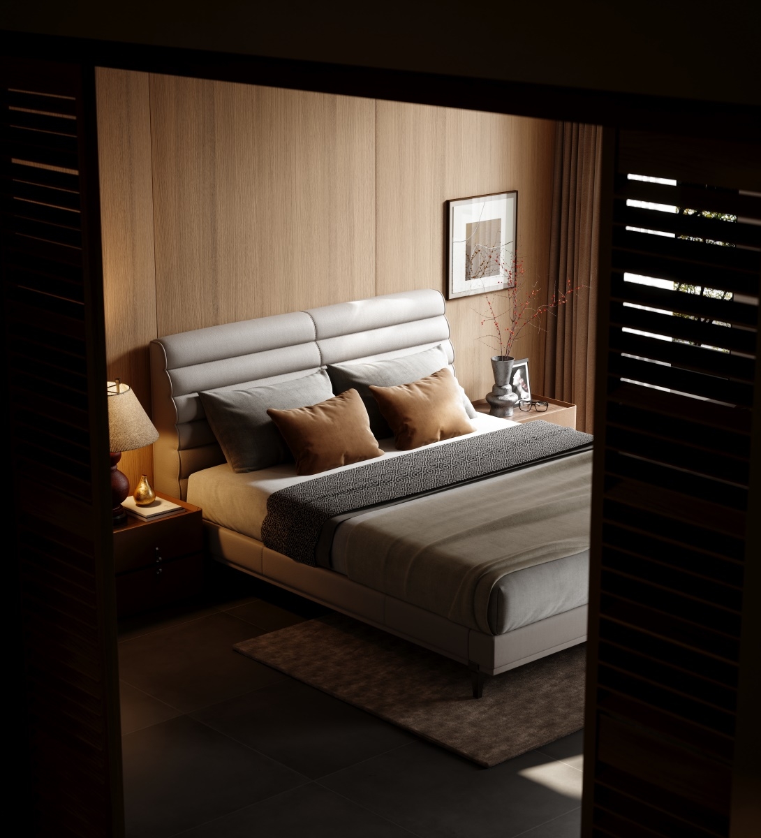 This is a state of life where the soul is enriched and joyful, and the mind is peaceful and tranquil. It is a life of harmony between man and nature, harmony between man and nature, and happiness between man and nature.Premium Upholstery: Durable, cozy fabric offers a sumptuous touch and timeless appealStylish Accents: A mix of gray and brown pillows add visual interest and a pop of color.Modern Design: Clean lines and a low - profile footboard create an elegant, sophisticated look.