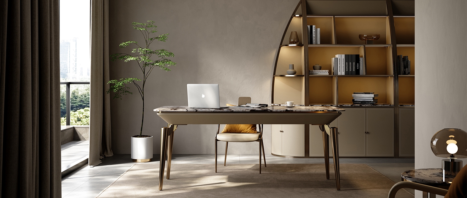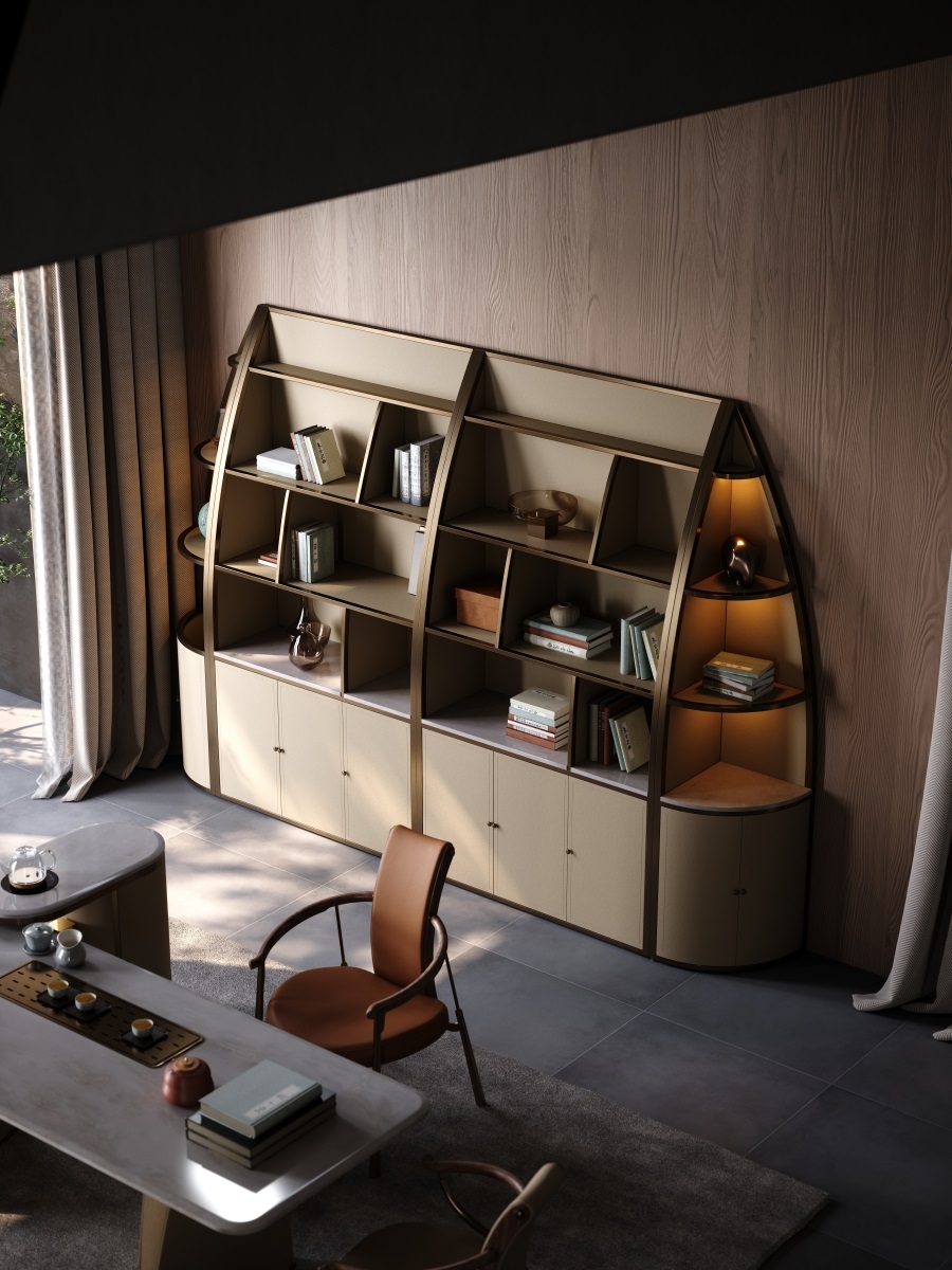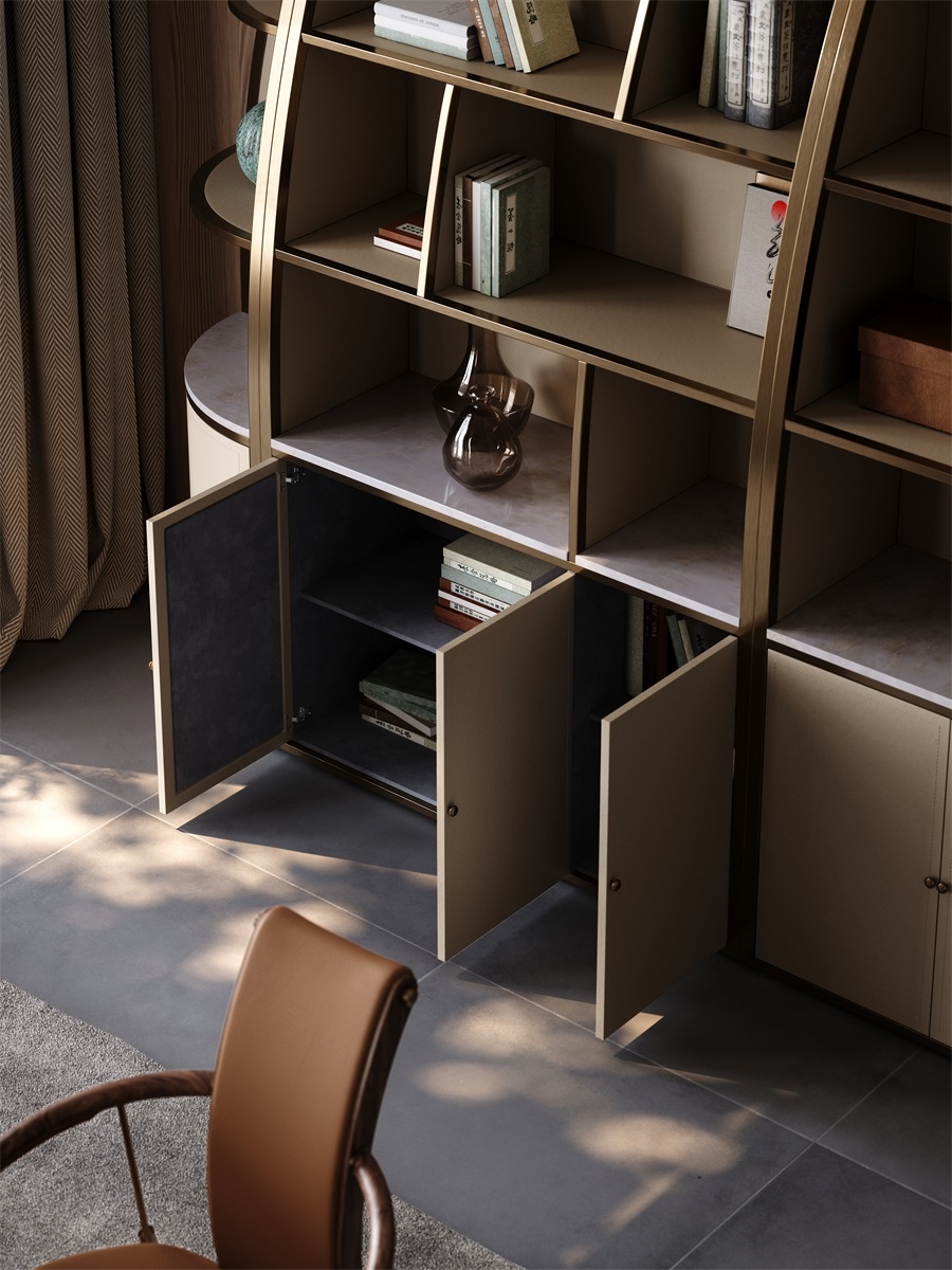 The well-arranged storage design brings neatness and order to the study.