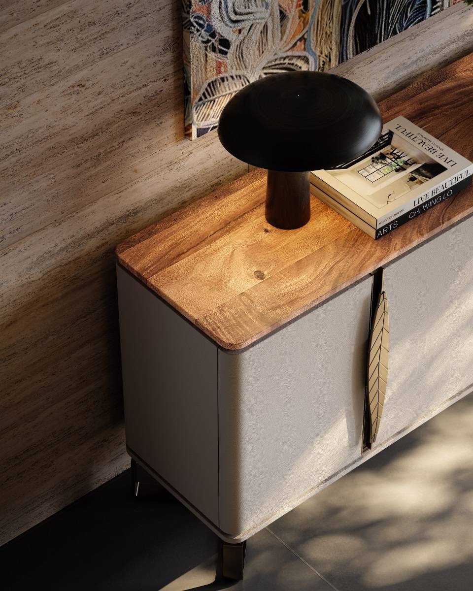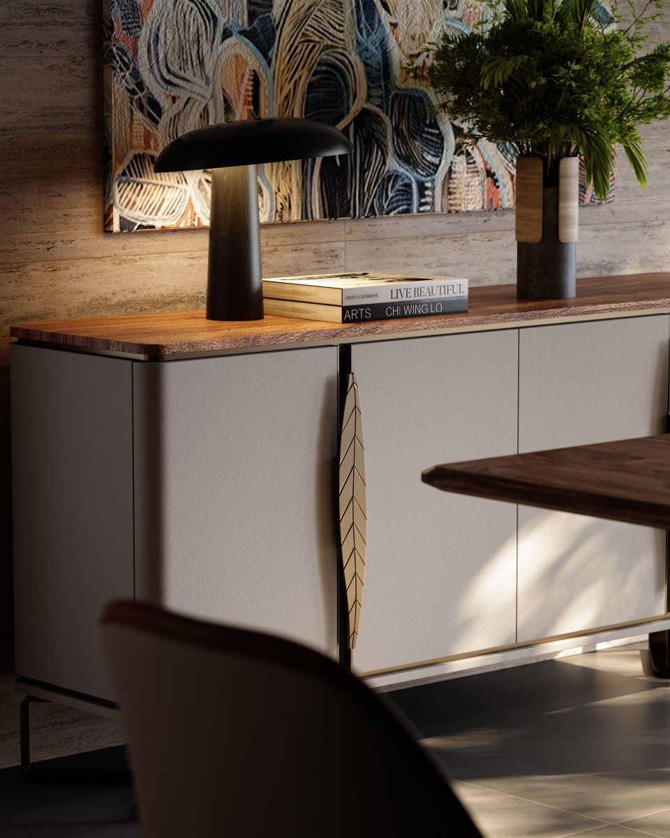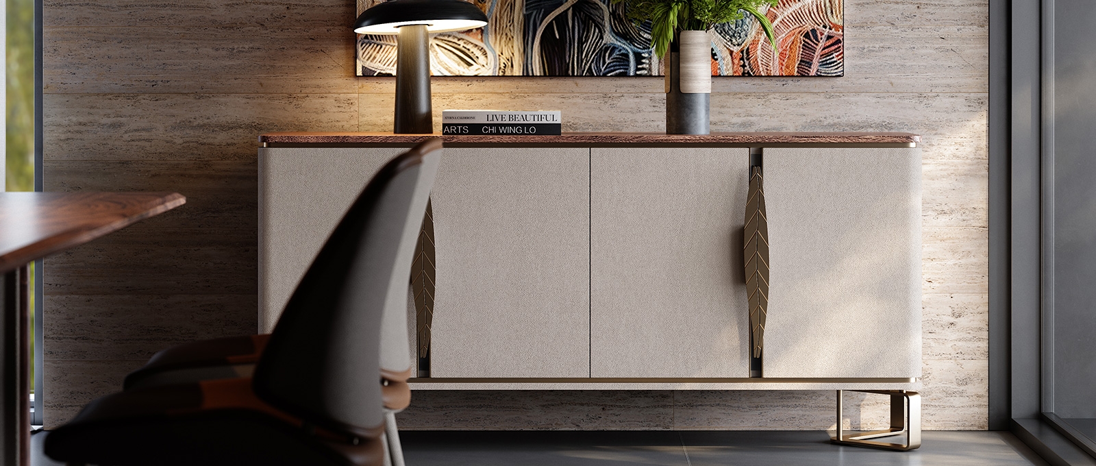 The unique appearance of the product is designed using a leaf shaped design, and the clever combination of solid wood and metal is used to interpret the sensory balance of leaf rigidity and softness, interpreting the tenacious vitality of all things growing, and making people full of hope for the future.