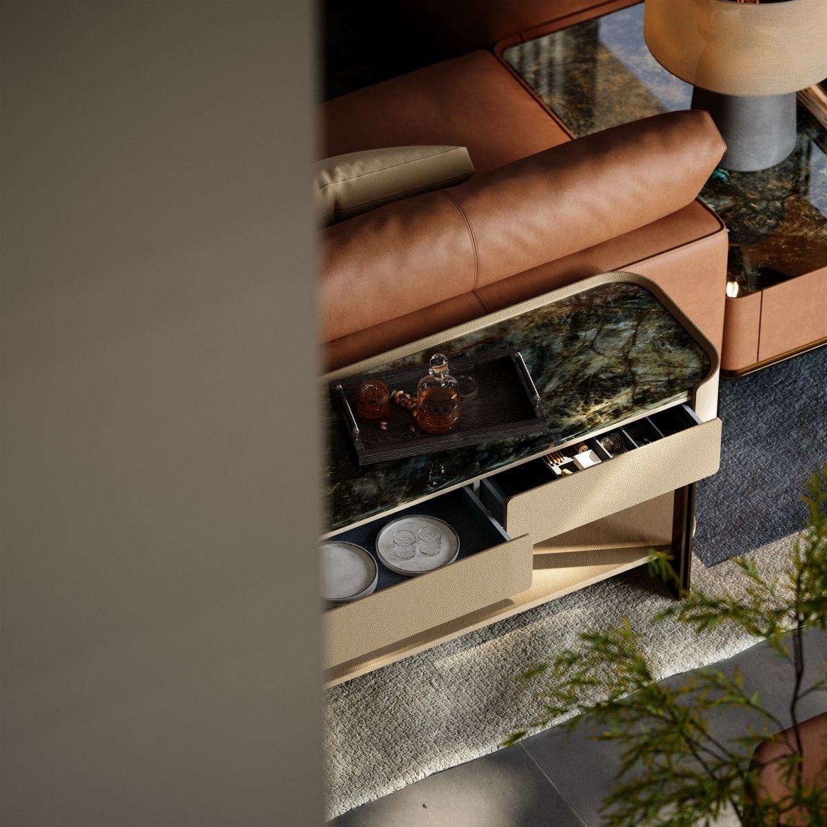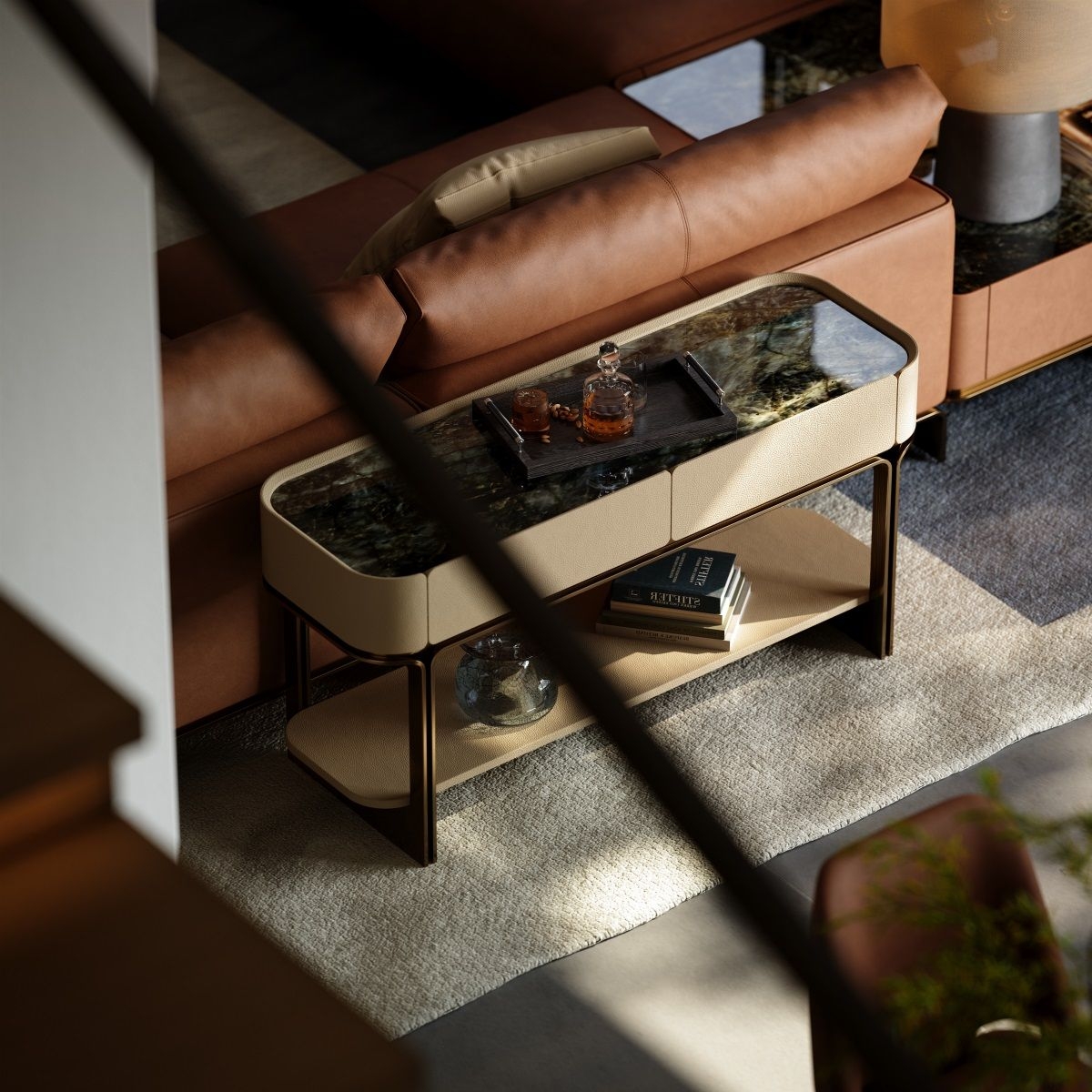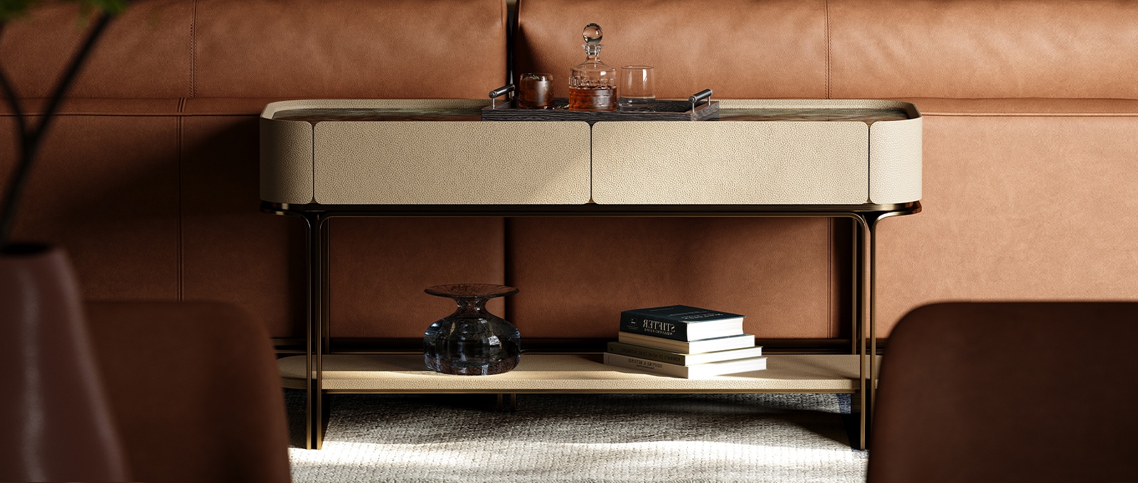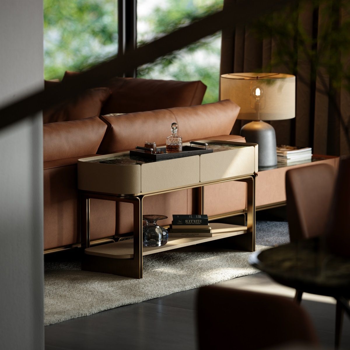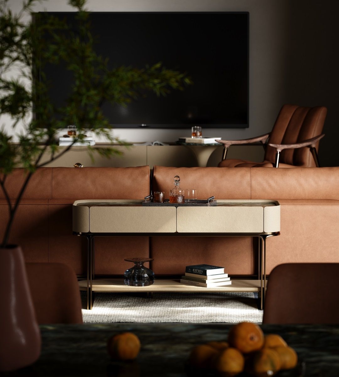 Modern console table with fabric drawers