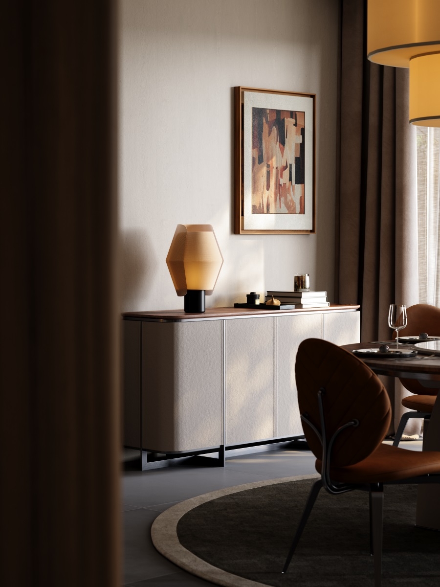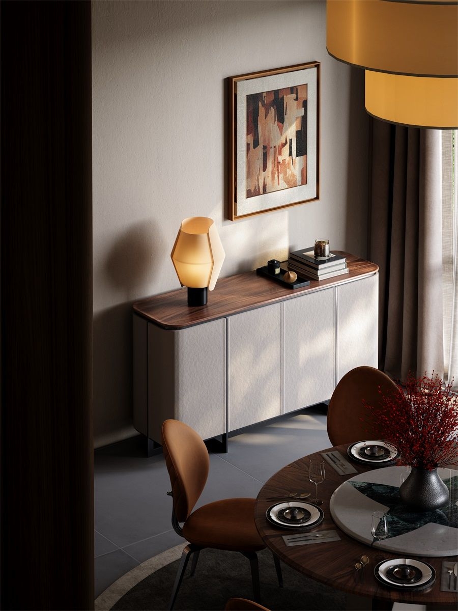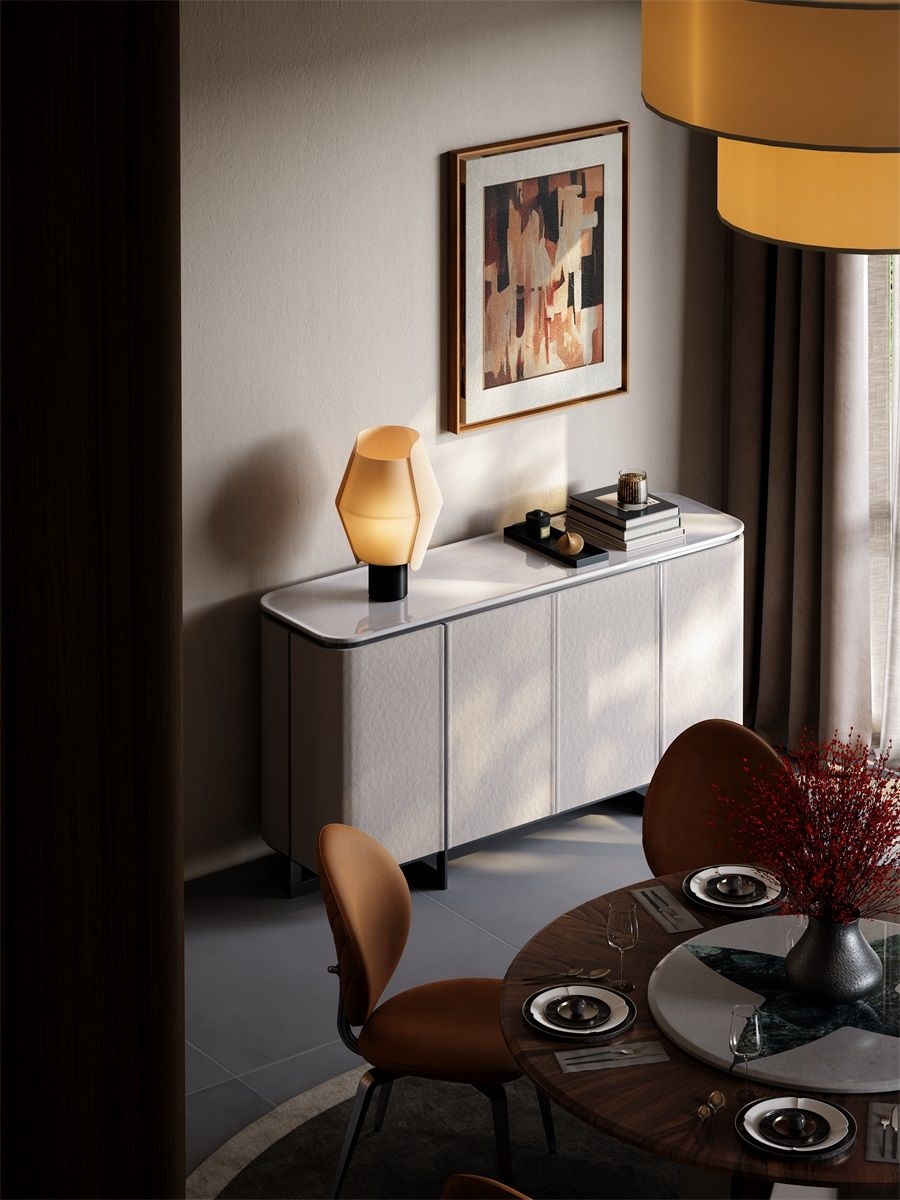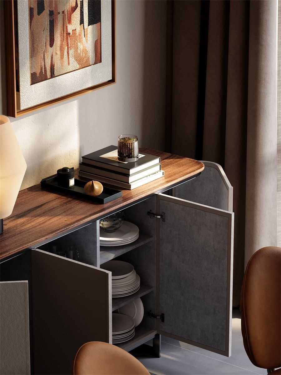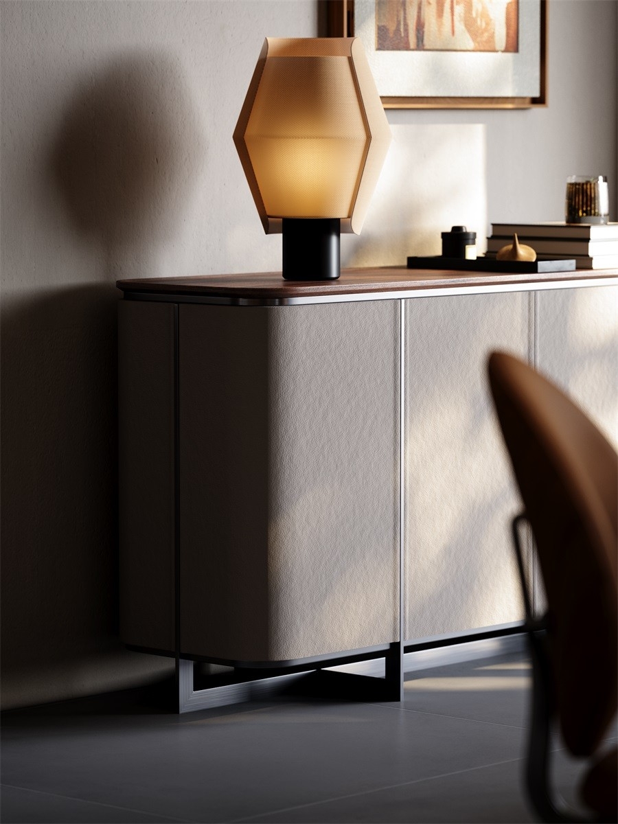 The combination of the side cabinet and the thin legs makes the square side cabinet come alive. With the exquisite curved edges, the agility of life runs through the design.