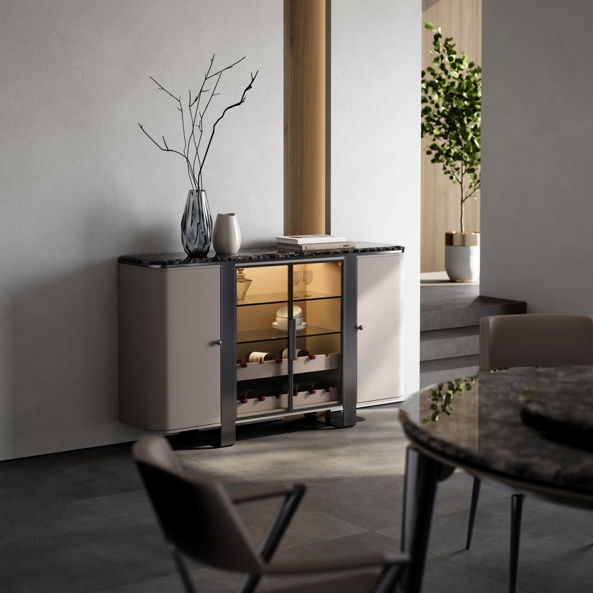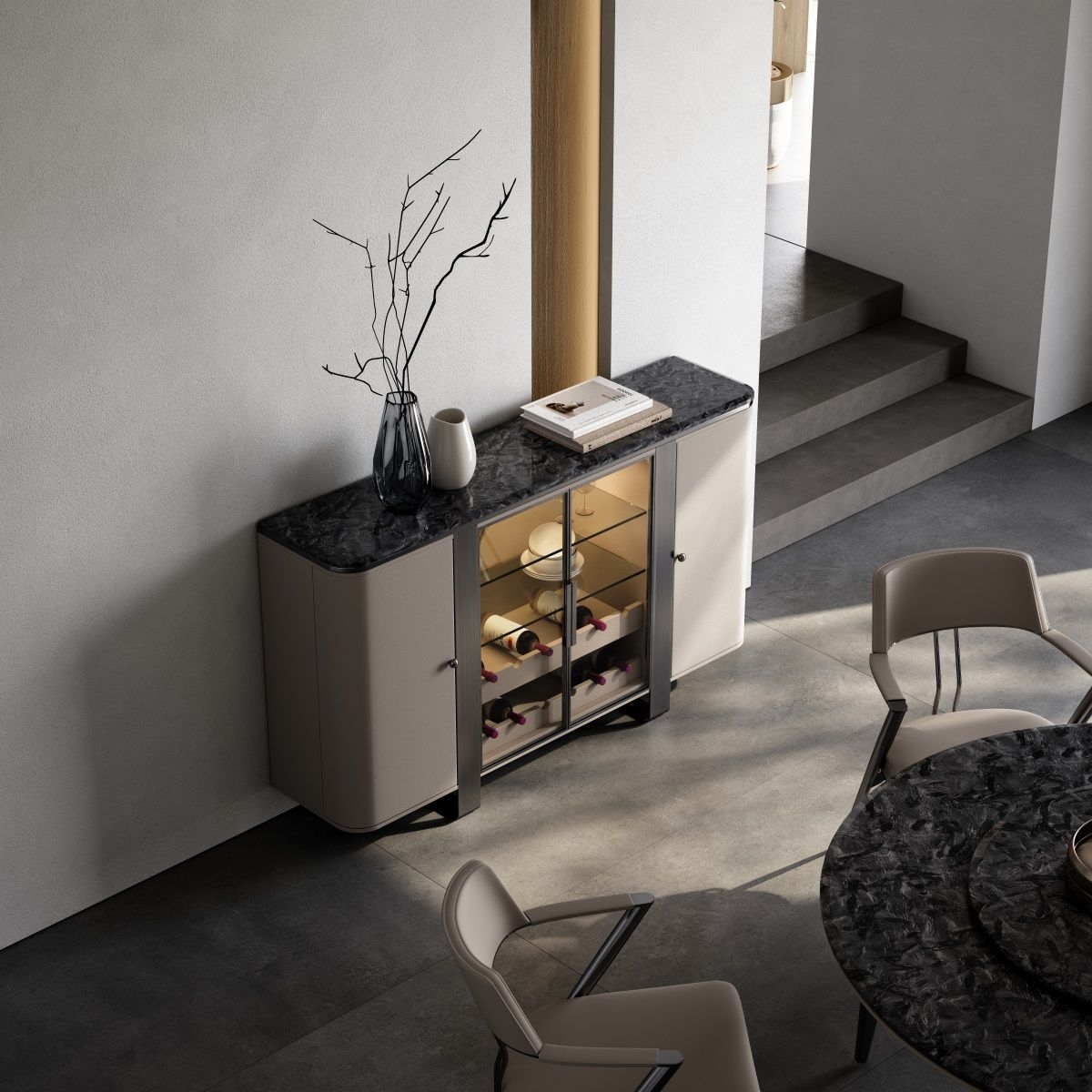 Subtracting from life and simplifying complexity is a wise attitude towards life. I hope you have the least, but everything is the best.Specialized Wine & Dish Storage:Built - in wine racks, glass shelves, and dish storage with ambient lighting create a perfect display area.