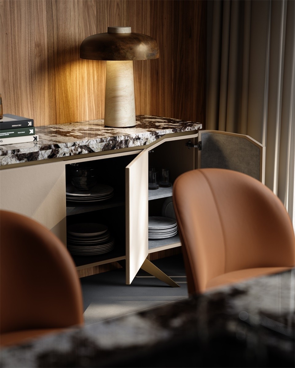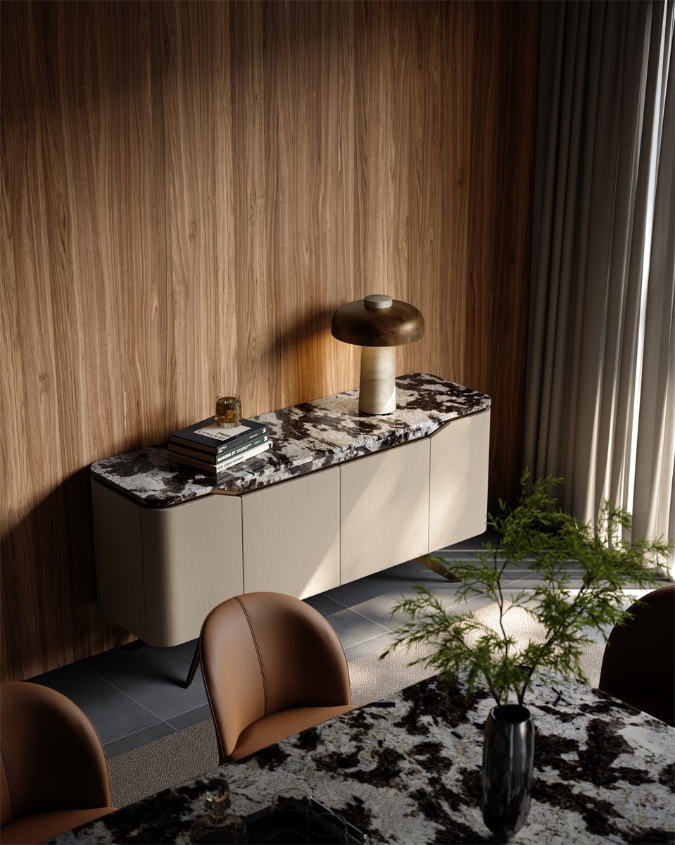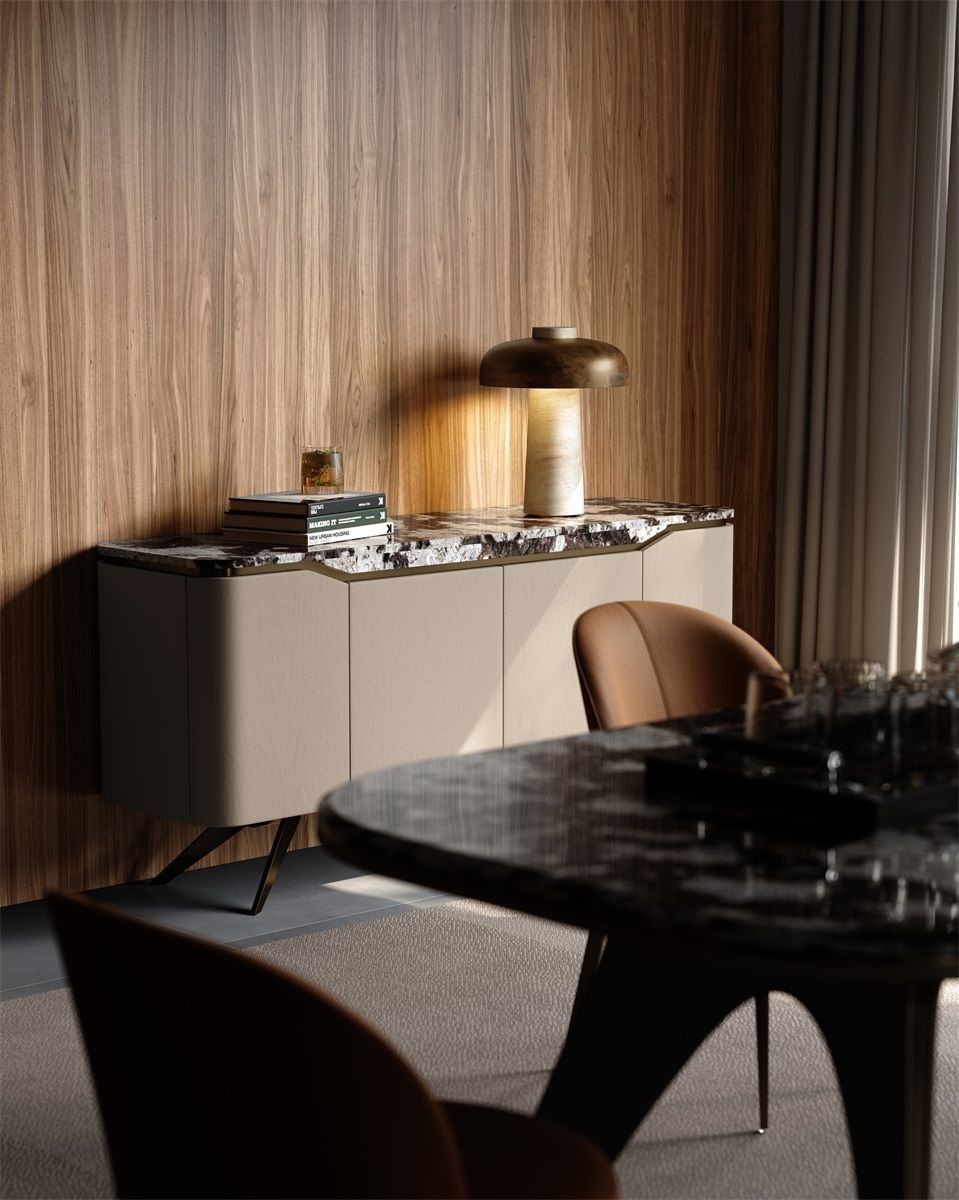 Luxury Marble & Leather Sideboard High - End Dining Room Storage