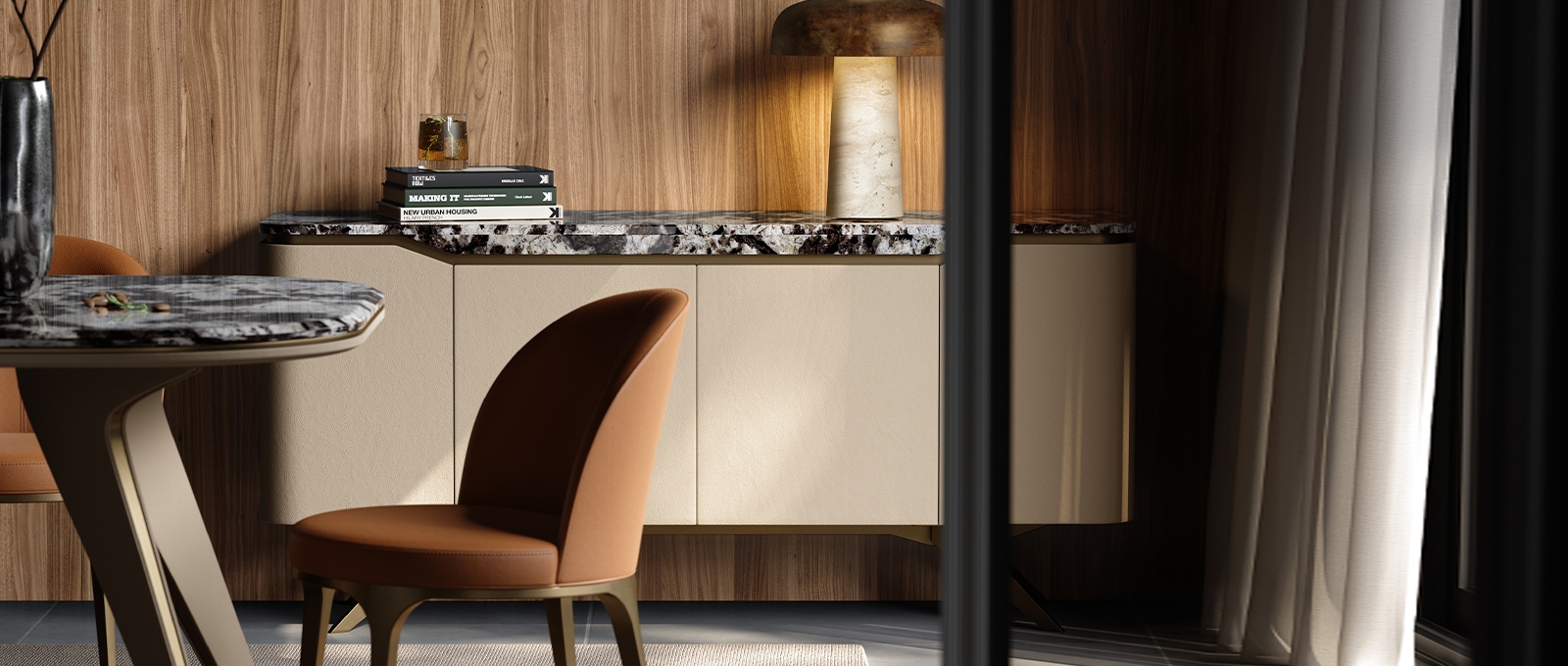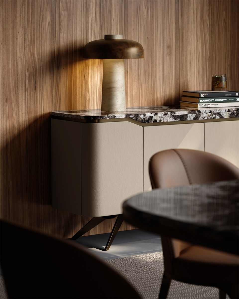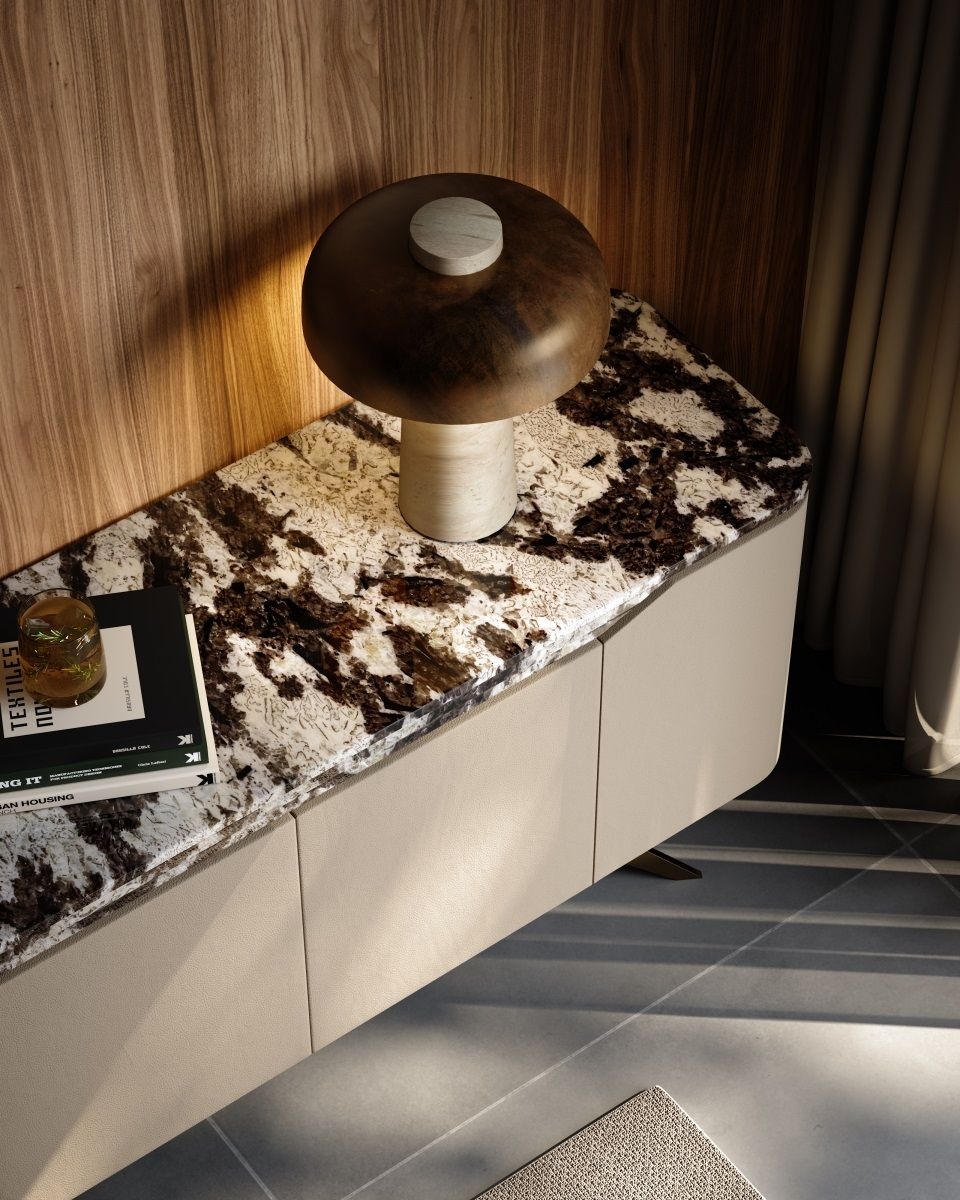 Luxury Marble & Leather Sideboard High - End Dining Room Storage