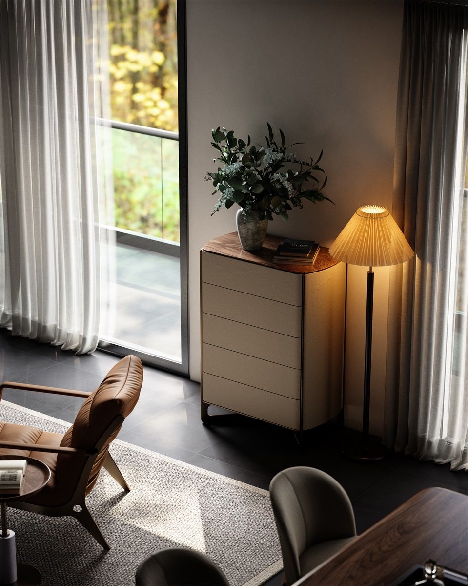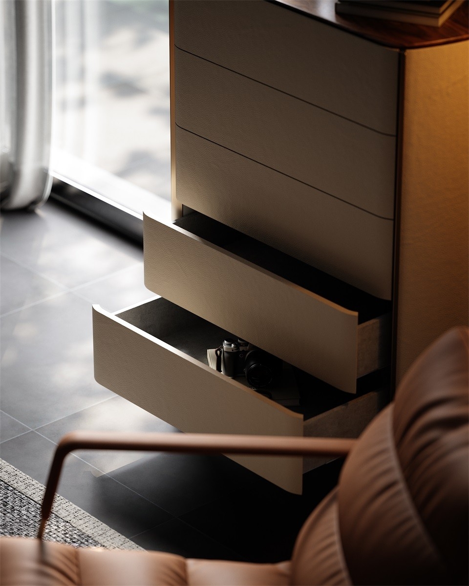 Multiple drawers can neatly store miscellaneous items. Steady and introverted yet stylish, presenting a visually pleasing effect.