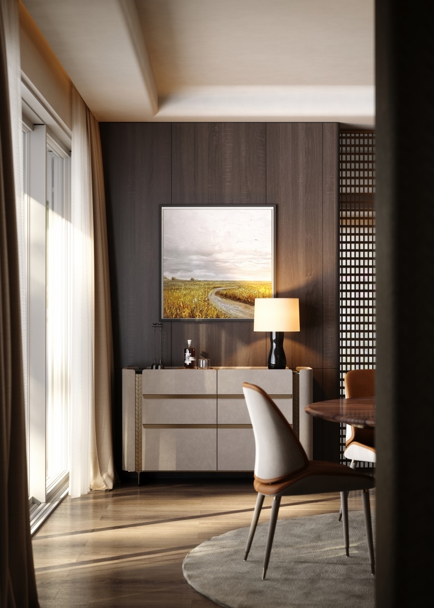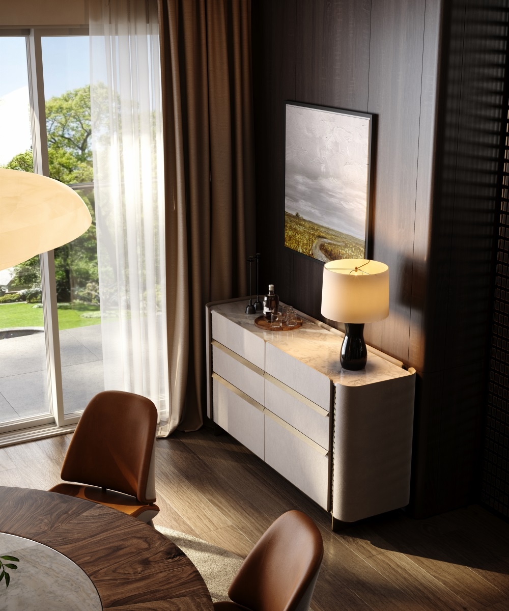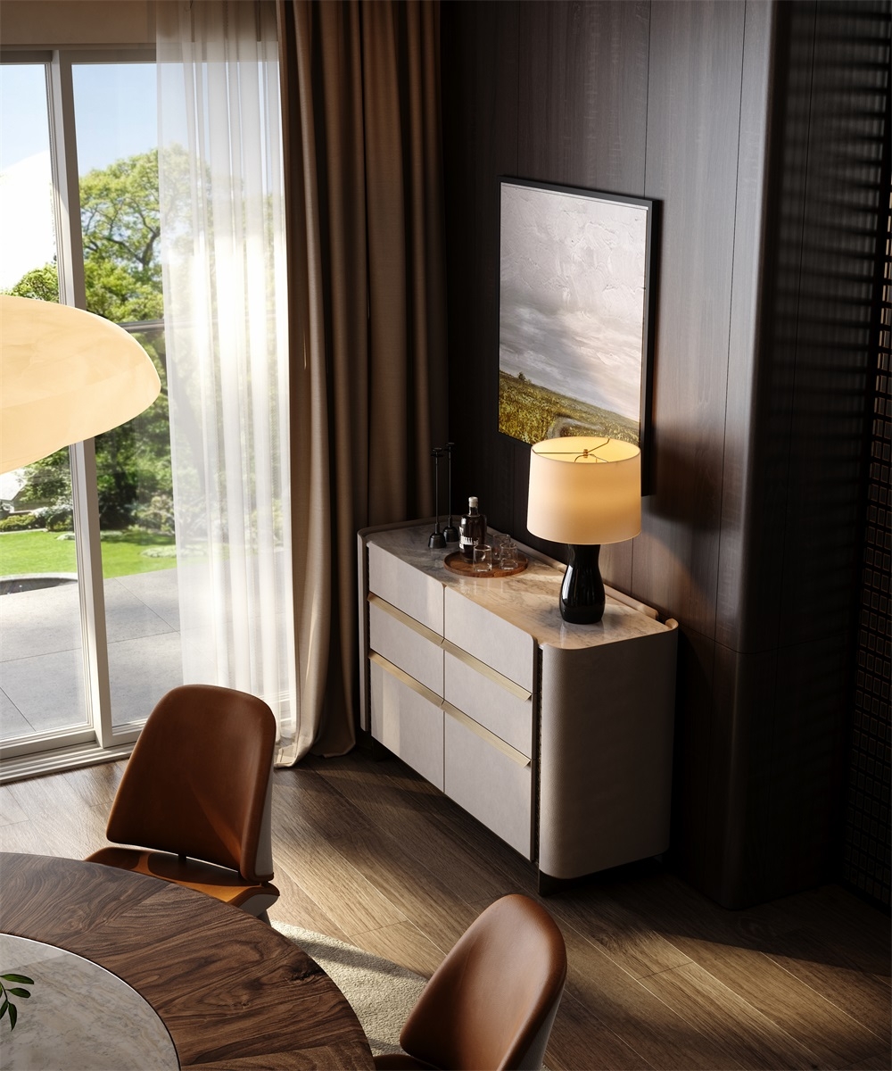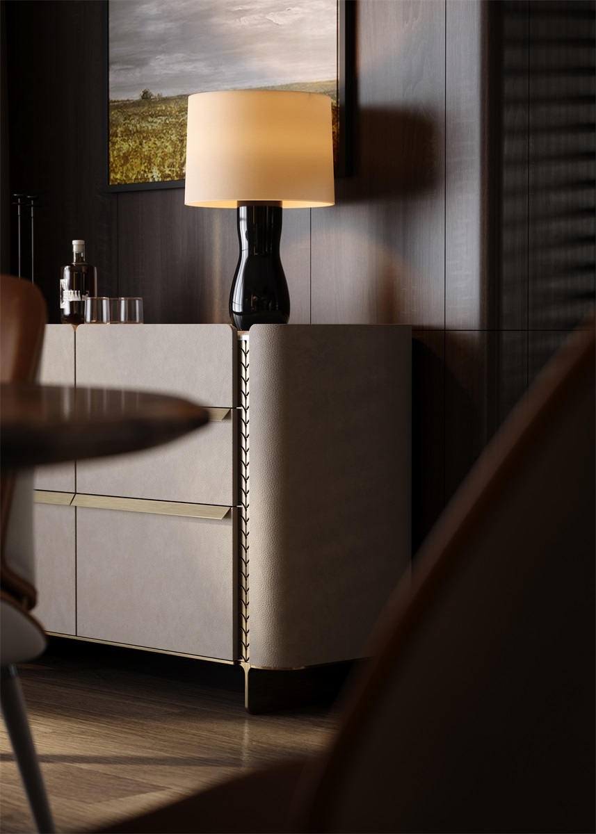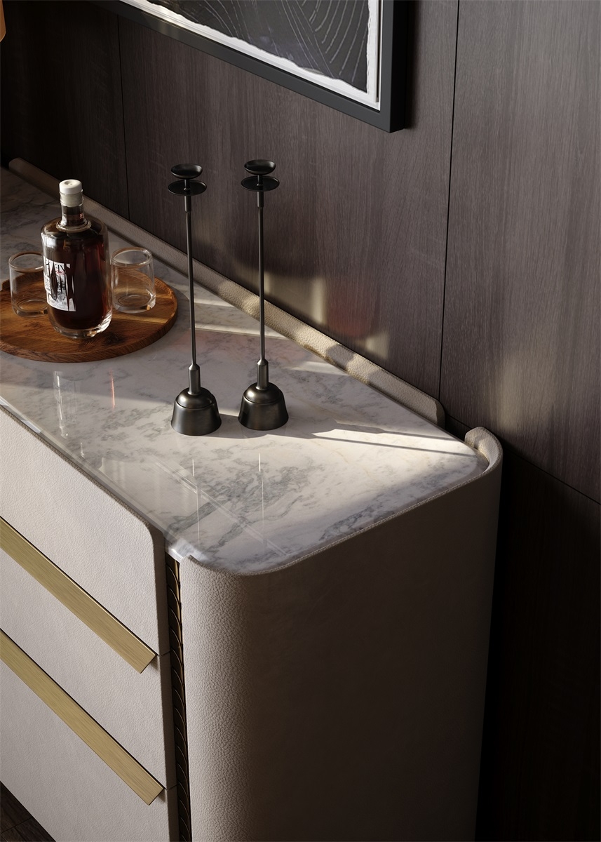The natural luxury stone tabletop is warm and opulent, the cabinet body is wrapped in delicate genuine leather,