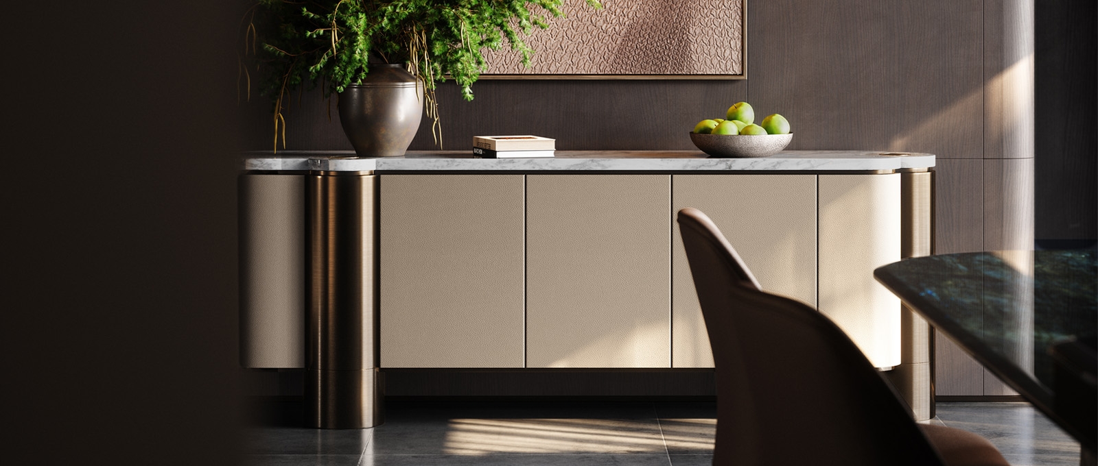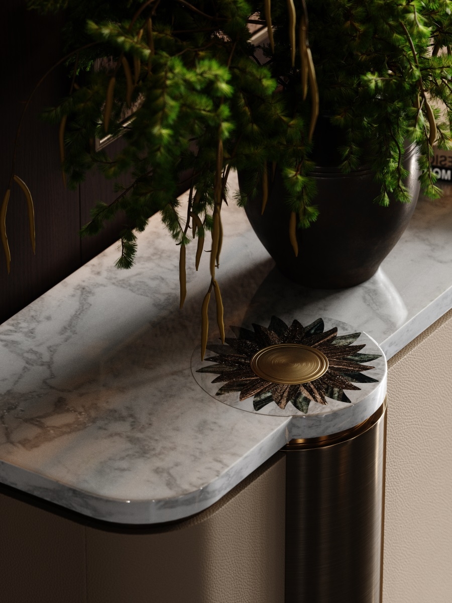shadow, and the hues of natural luxury stone to depict the elegant form and spirit of the golden sunflower. It not only serves as a metaphor for the heritage passed down through generations of a family but also stands as a unique totem, wordlessly