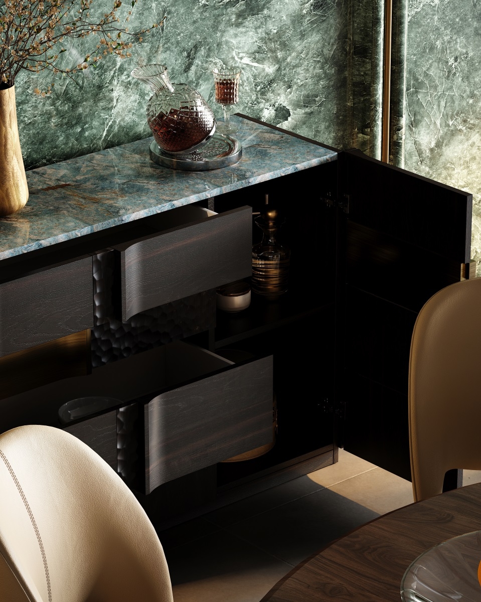 from its intersecting lines. It integrates effortlessly into any living space, blending seamlessly with its surroundings