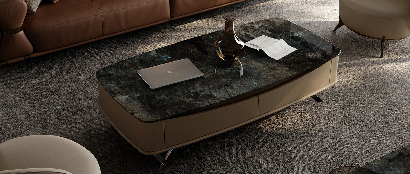 The welding points of the metal support are finely ground to be smooth and traceless. Then, they undergo multiple electroplating processes to ensure that the metal surface does not fade or rust for a long time, always maintaining a brilliant luster. Every detail is handled with the aim of perfection, ensuring that the quality of the coffee table stands the test of time.