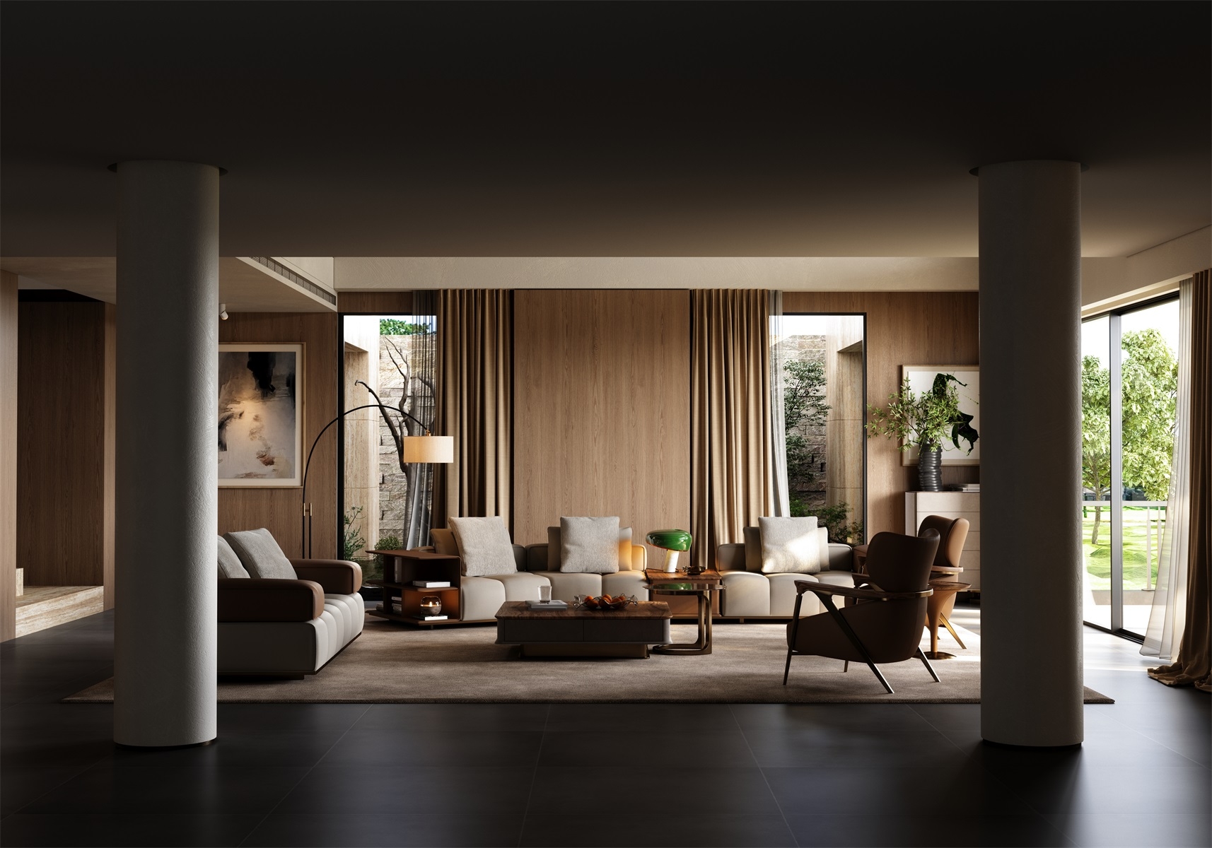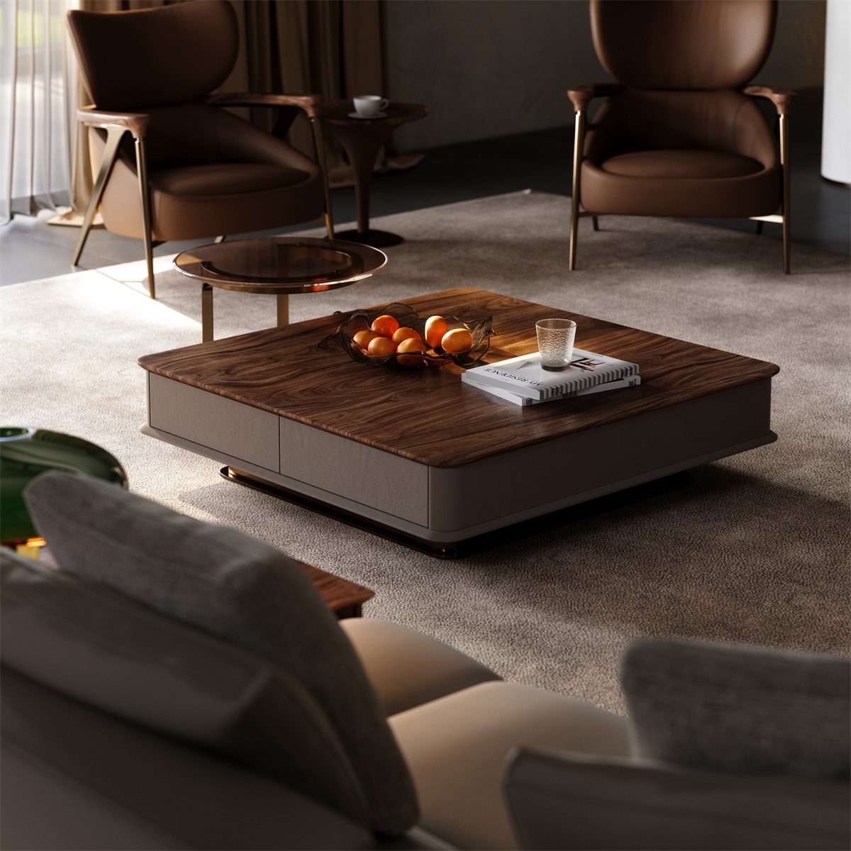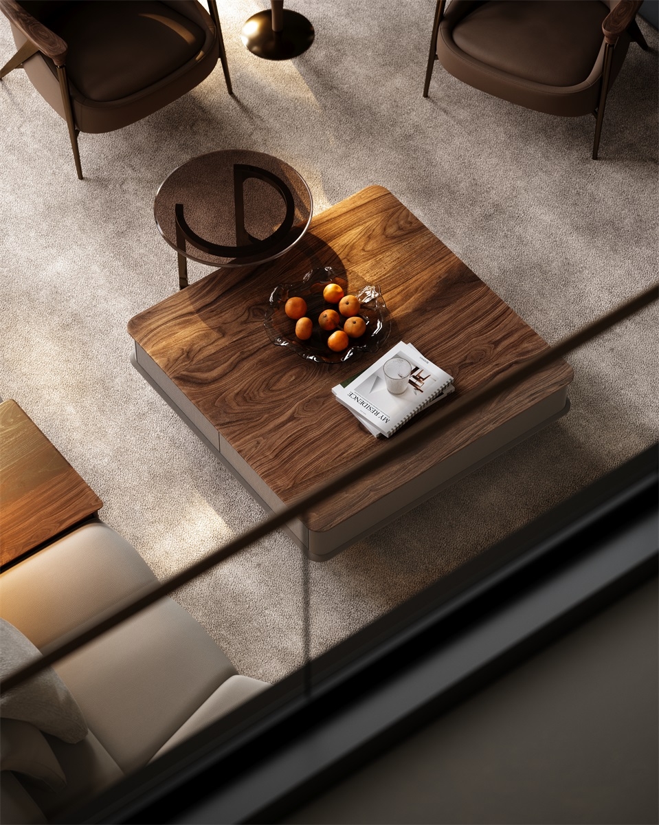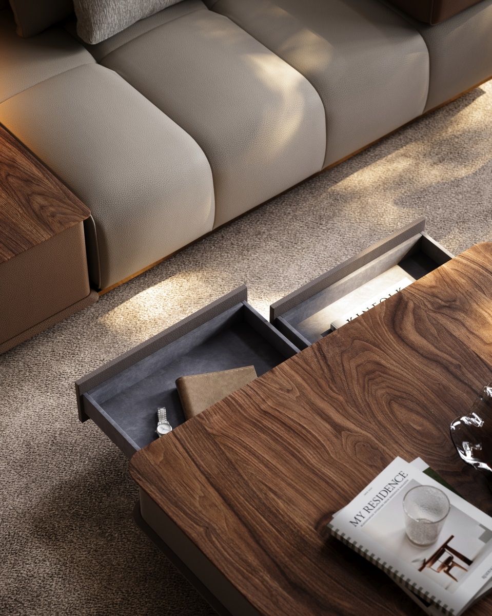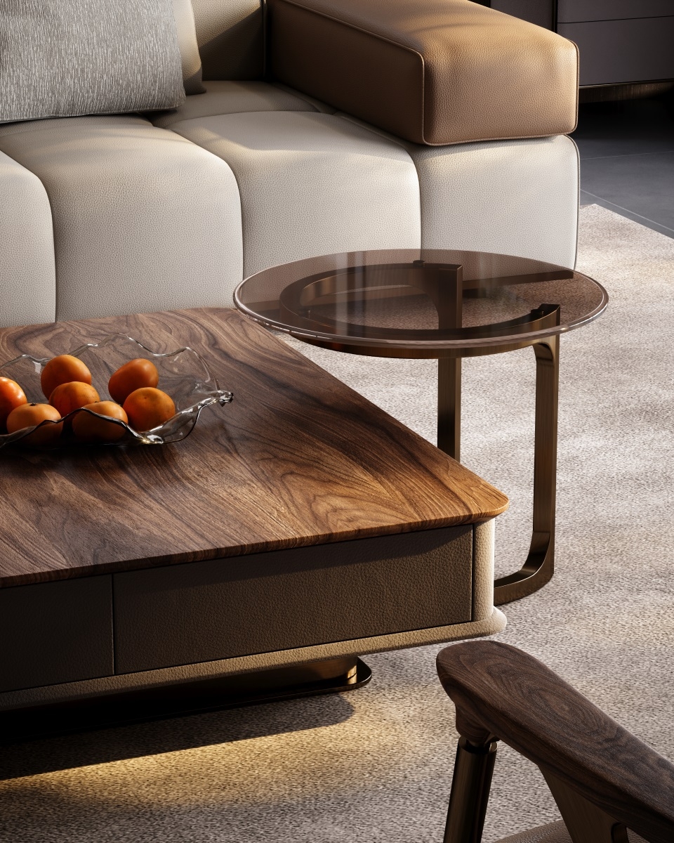 The rectangular outline of the long coffee table echoes the circular tabletop of the small side table, creating a spatial rhythm that combines hardness and softness. The long coffee table's "double-drawer storage" meets the daily storage needs, while the small side table's "suspended countertop" can flexibly place tea cups and books, forming a "main and auxiliary interactive" functional zone, transforming the living room from a "monotonous" to a "layered aesthetic field".