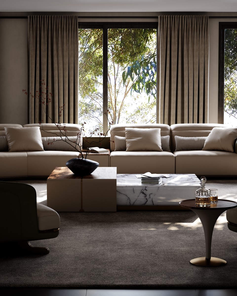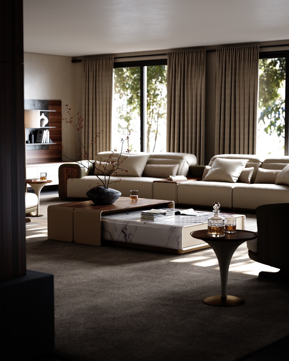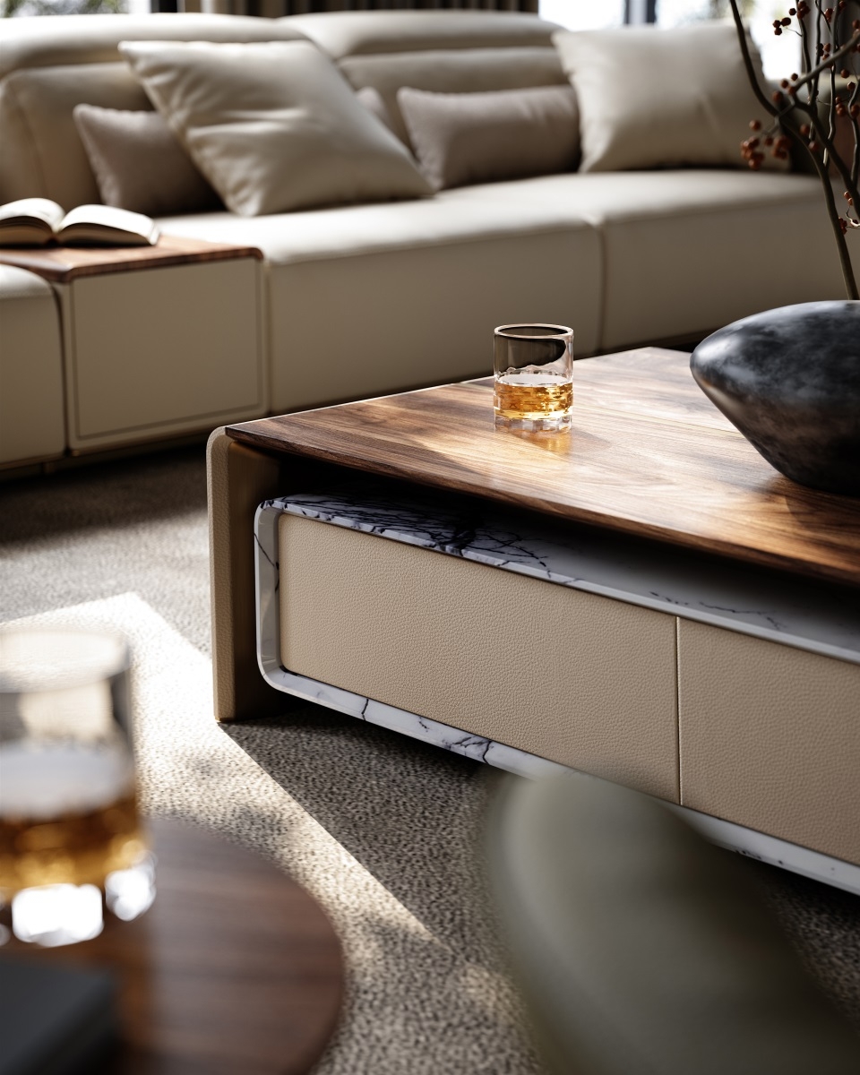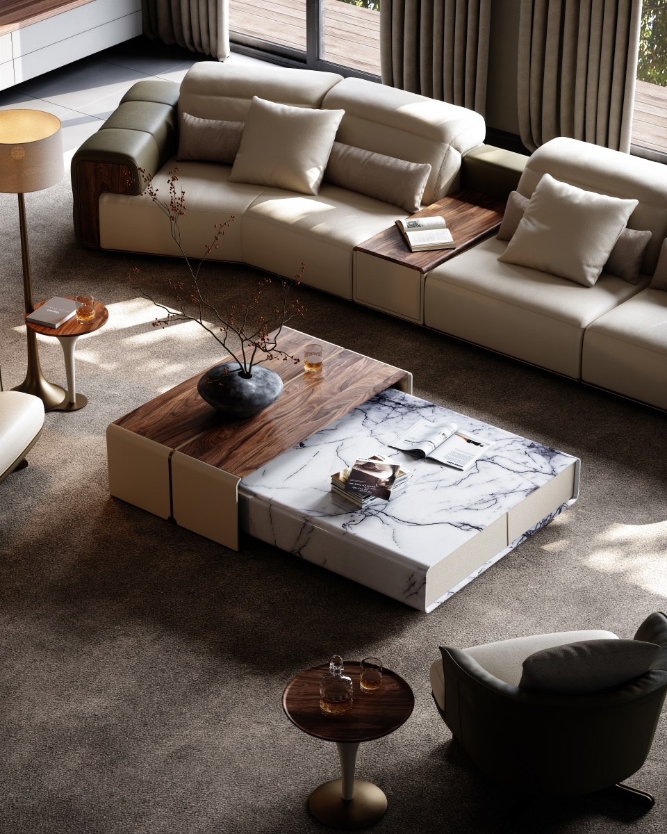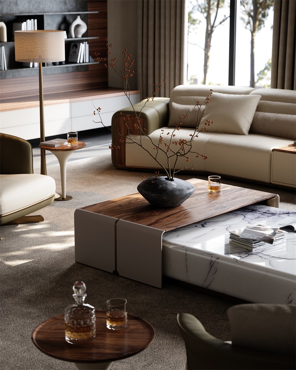 No need to compete with other beauties, at the top of Kunlun, one can fully display the style of a king. Entering the field of vision with a majestic and majestic posture, concealing the mind of the master craftsman, although not showing the mountains or dew, but hiding the universe inside.Merges wood, leather - like elements, and a durable tabletop for a sumptuous, timeless appeal.Adaptable sections and integrated storage add practicality, keeping your space tidy and customizable.Ideal for showcasing decor or everyday items, enhancing living room aesthetics with a modern, high - end touch.