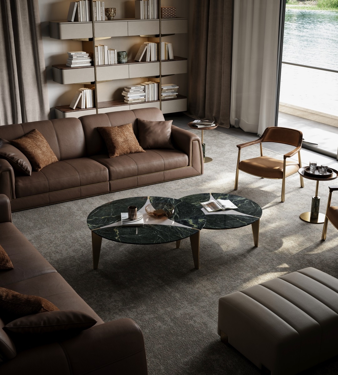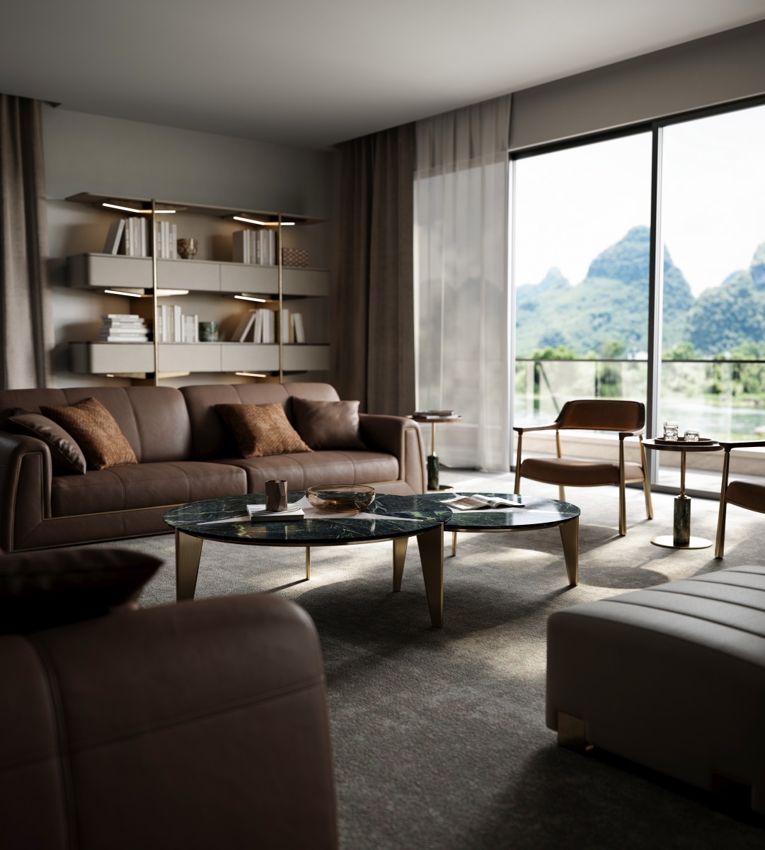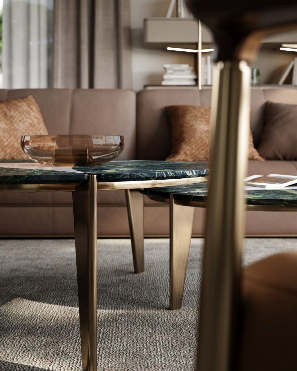 The lightweight design creates a dynamic and elegant posture, and the combination of double round coffee tables releases a delicate and elegant beauty, which can also bring an elegant and durable visual experience in the space.
