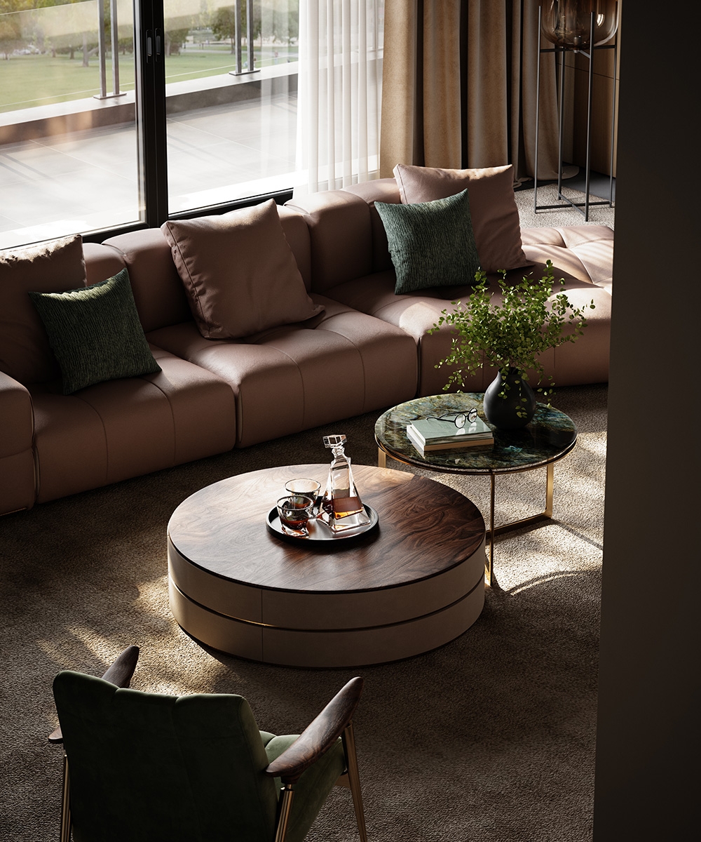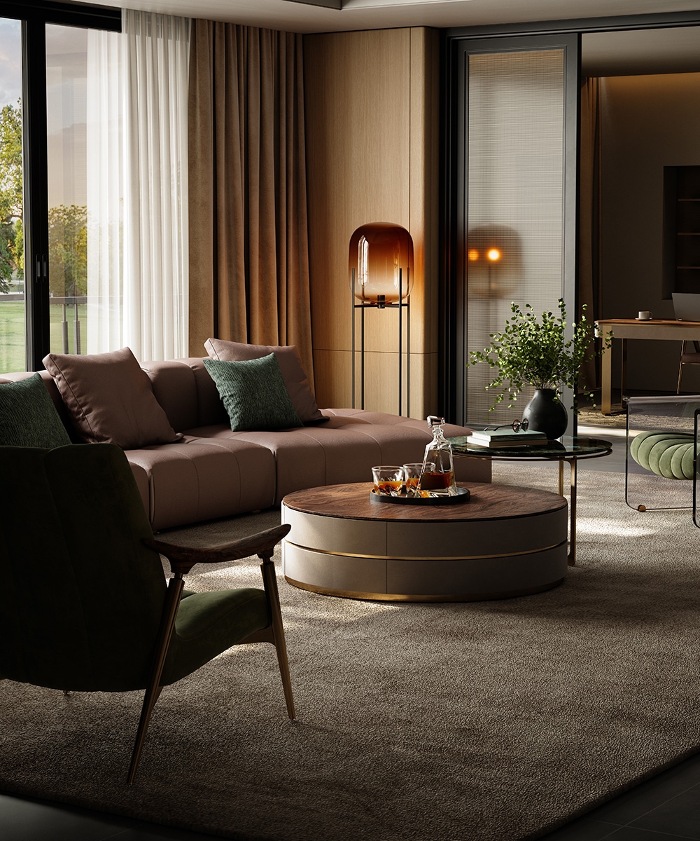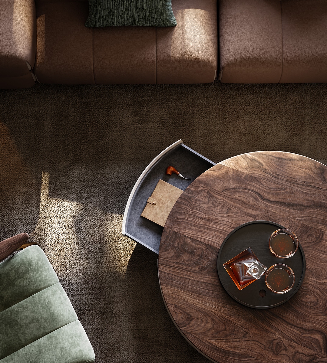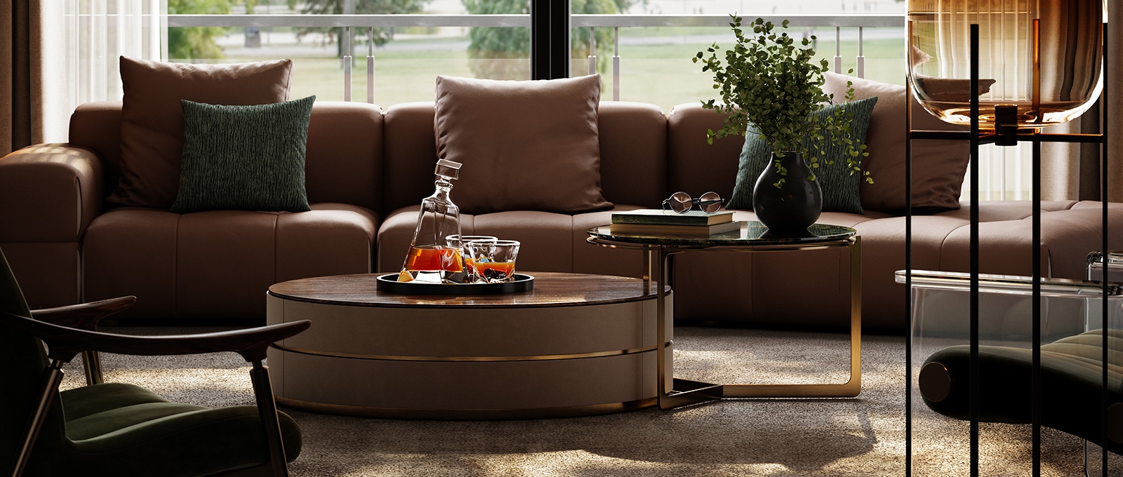 The coffee table is designed with a circular shape as its design concept, combined with different bases to create a harmonious and unified aesthetic. When paired with different sofas, it can also highlight the style of the living room.