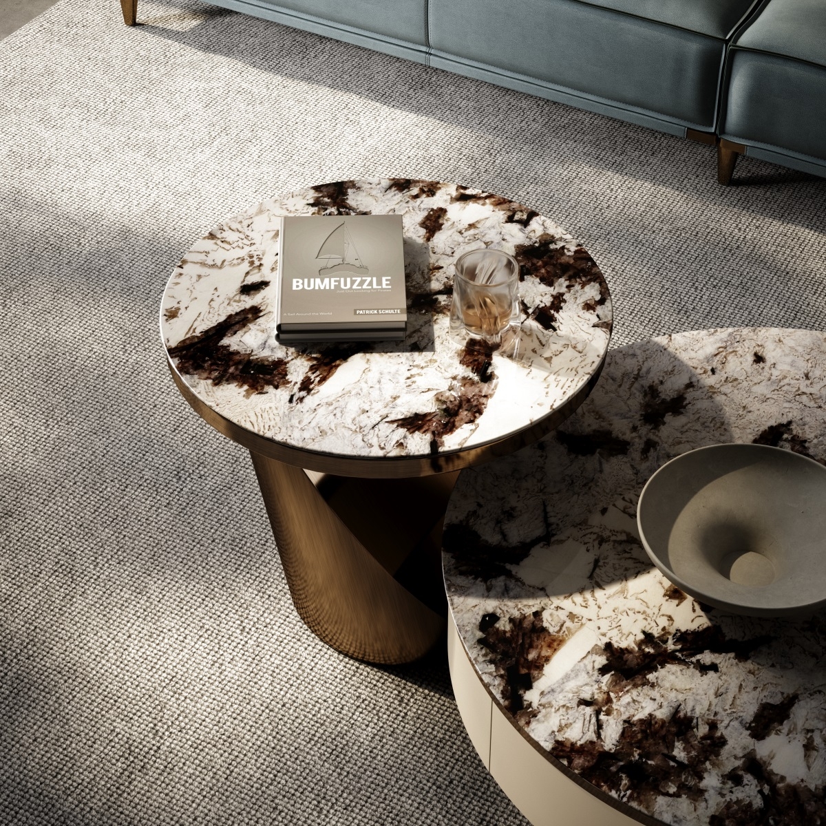 Natural Stone, Leather and Metal Coffee Table