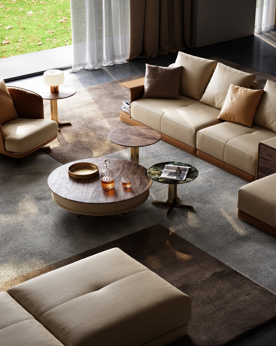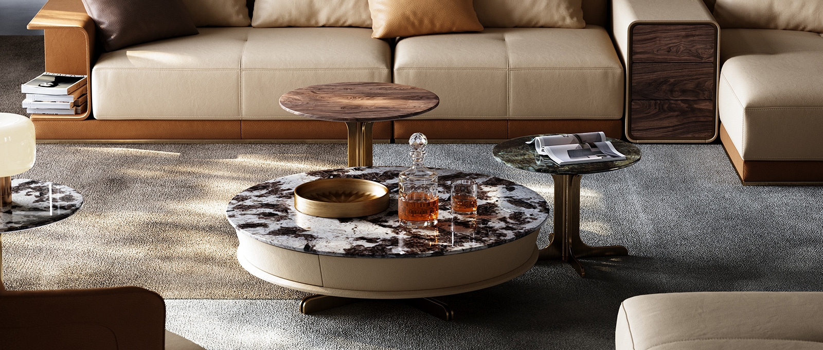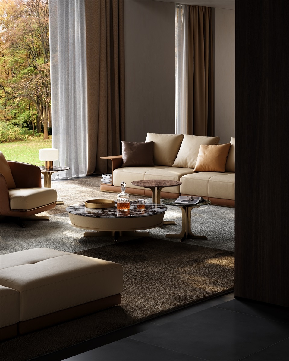 The metal elements embellished on the base chase the "round" lines, integrating symmetry and modern aesthetic innovation into it, making the space elegant and low-key.