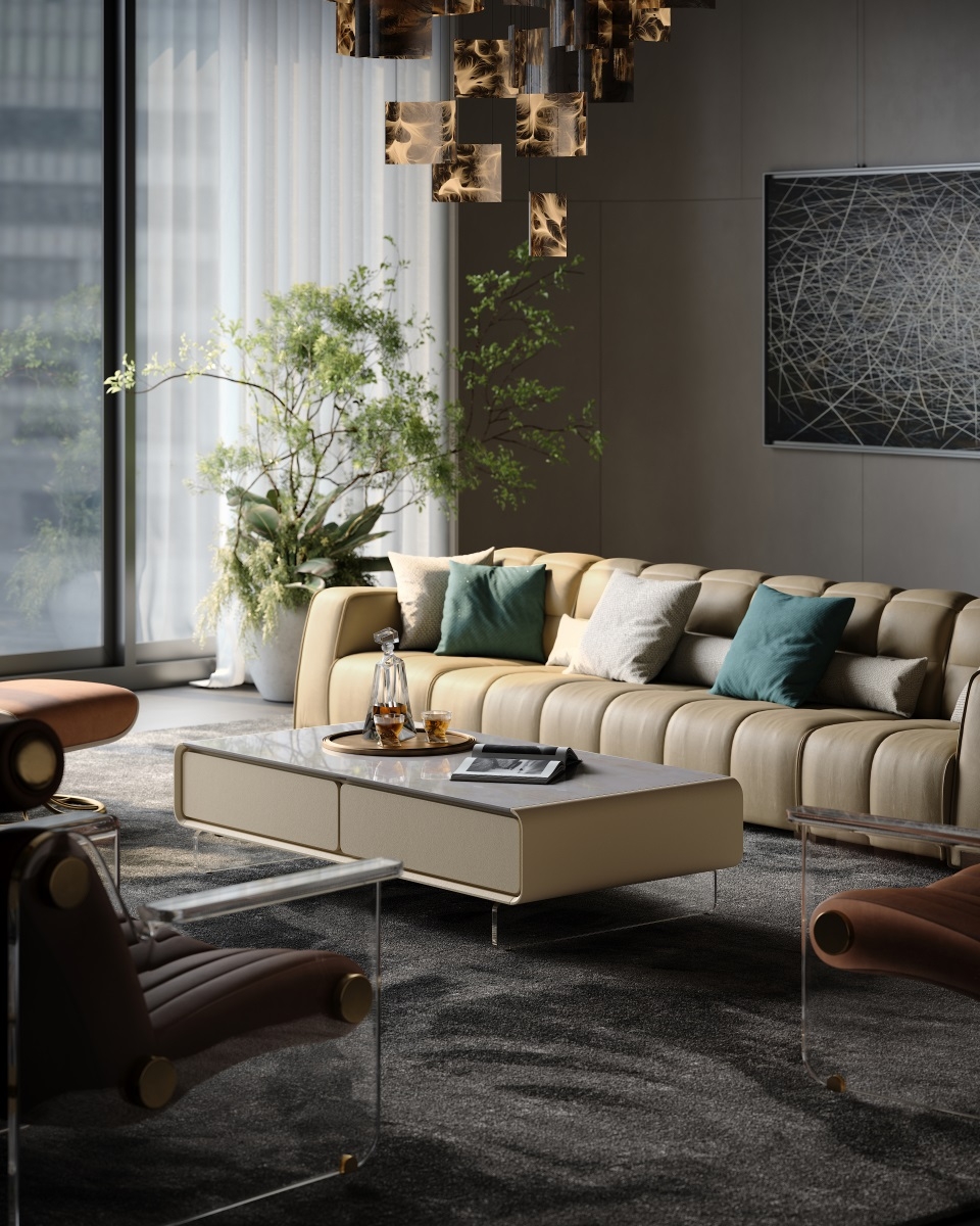‘Linglong’ means the object is exquisite and refined, revealing detail and quality in the subtle. Through an ingeniously structured and clearly defined visual presentation, it conveys a sense of order and spacious elegance within the space.
