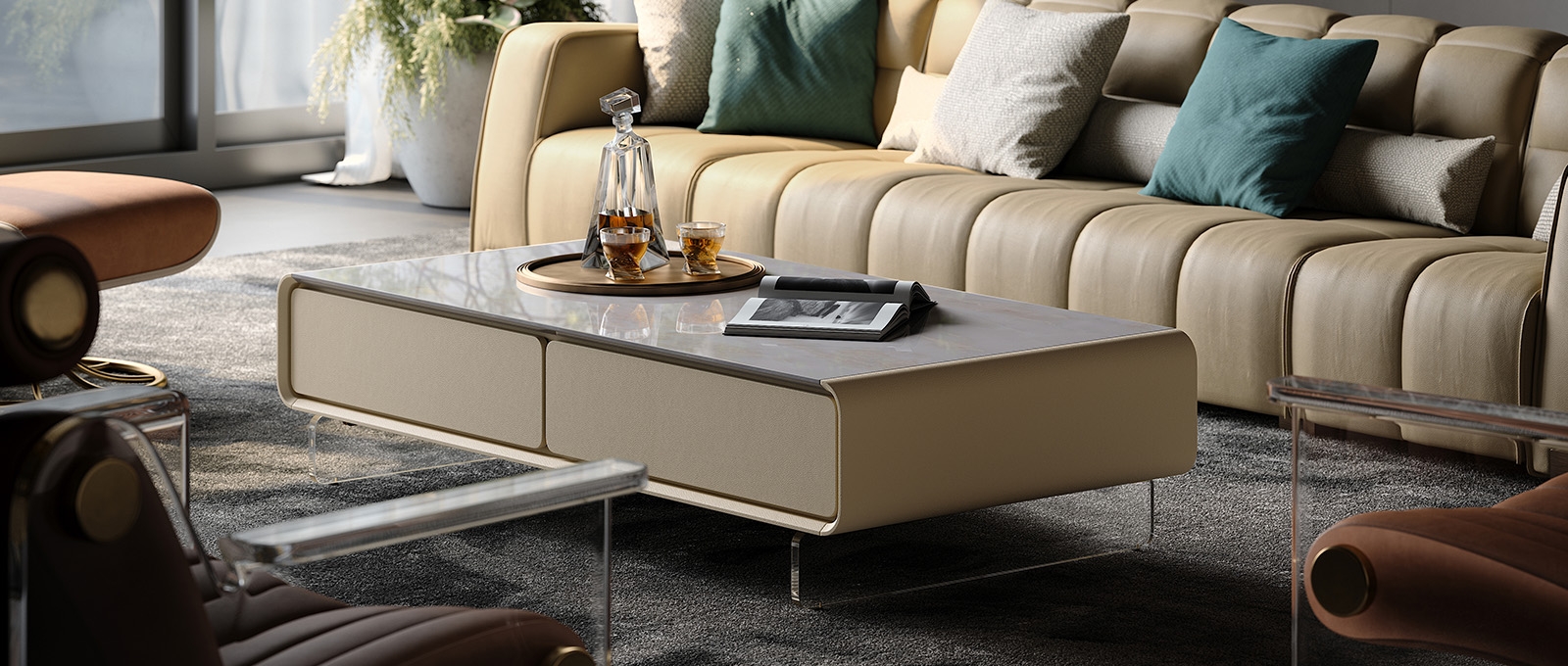 ingenuity into a minimalist shape. Designed with an acrylic floating base, it blends fashion