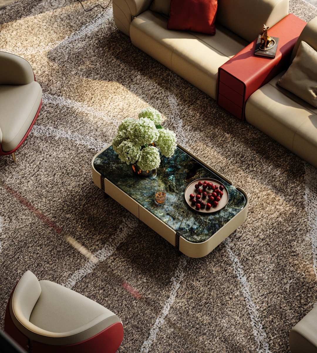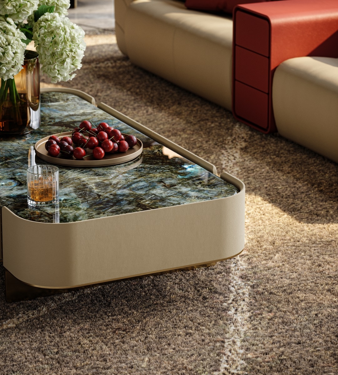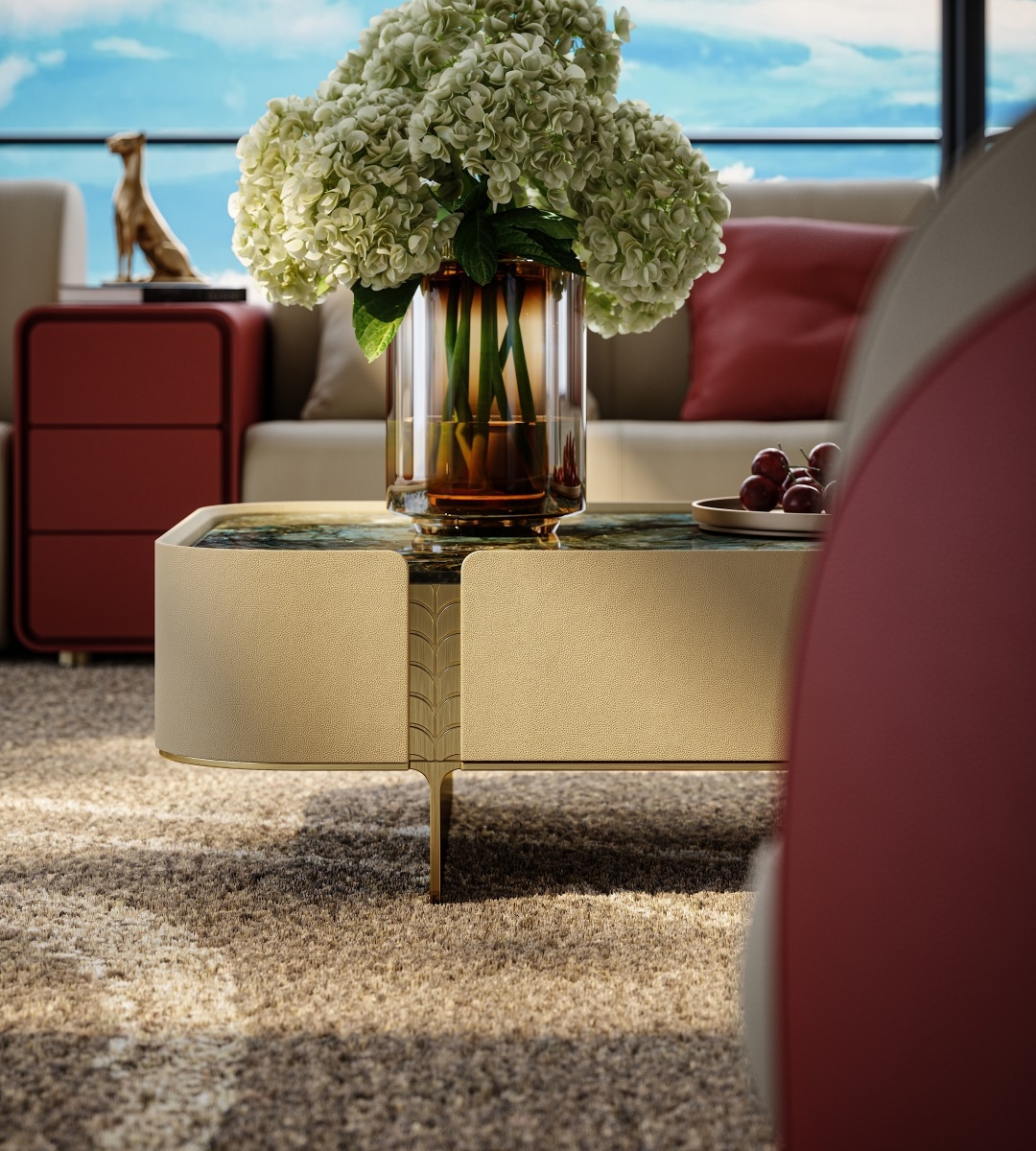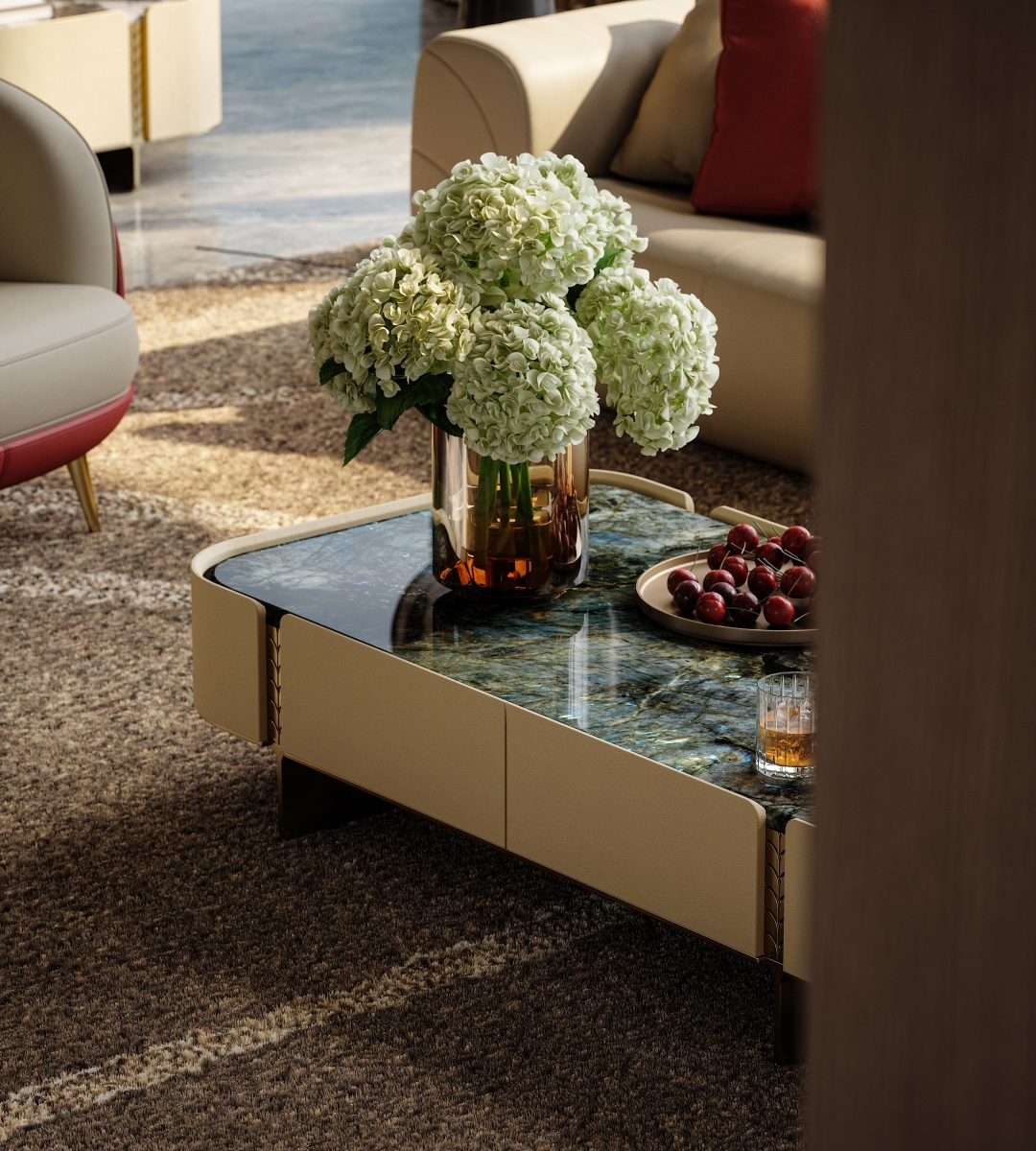 The natural luxury stone tabletop is warm and opulent, the cabinet body is wrapped in delicate genuine leather,