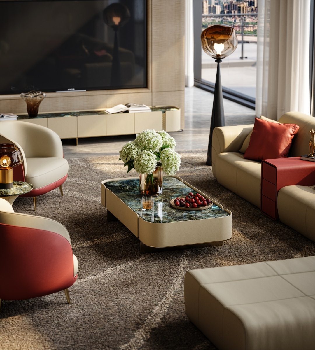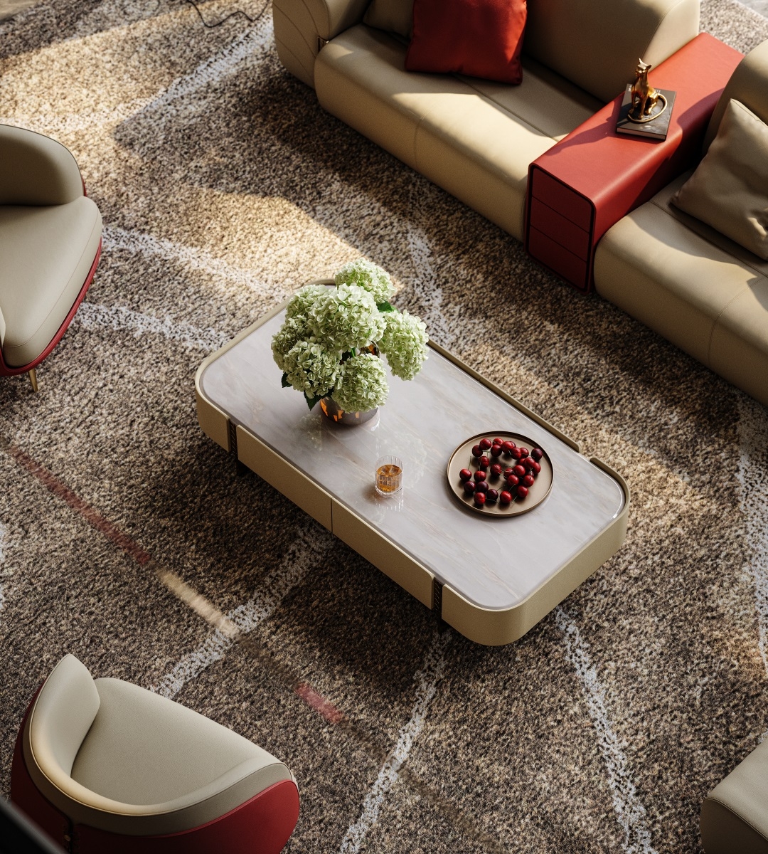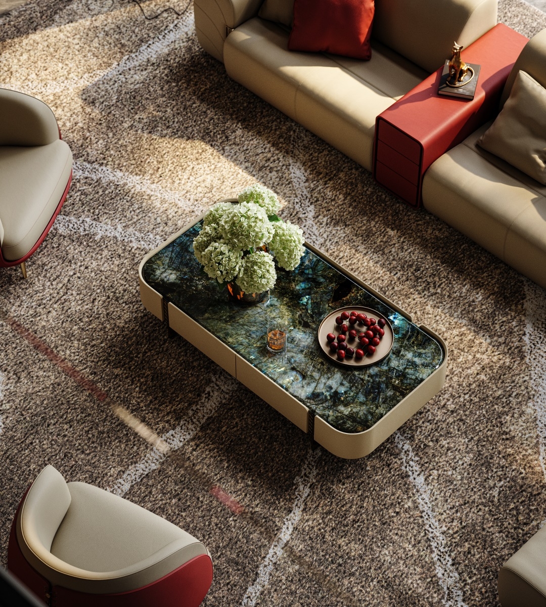 The natural luxury stone tabletop is warm and opulent, the cabinet body is wrapped in delicate genuine leather,