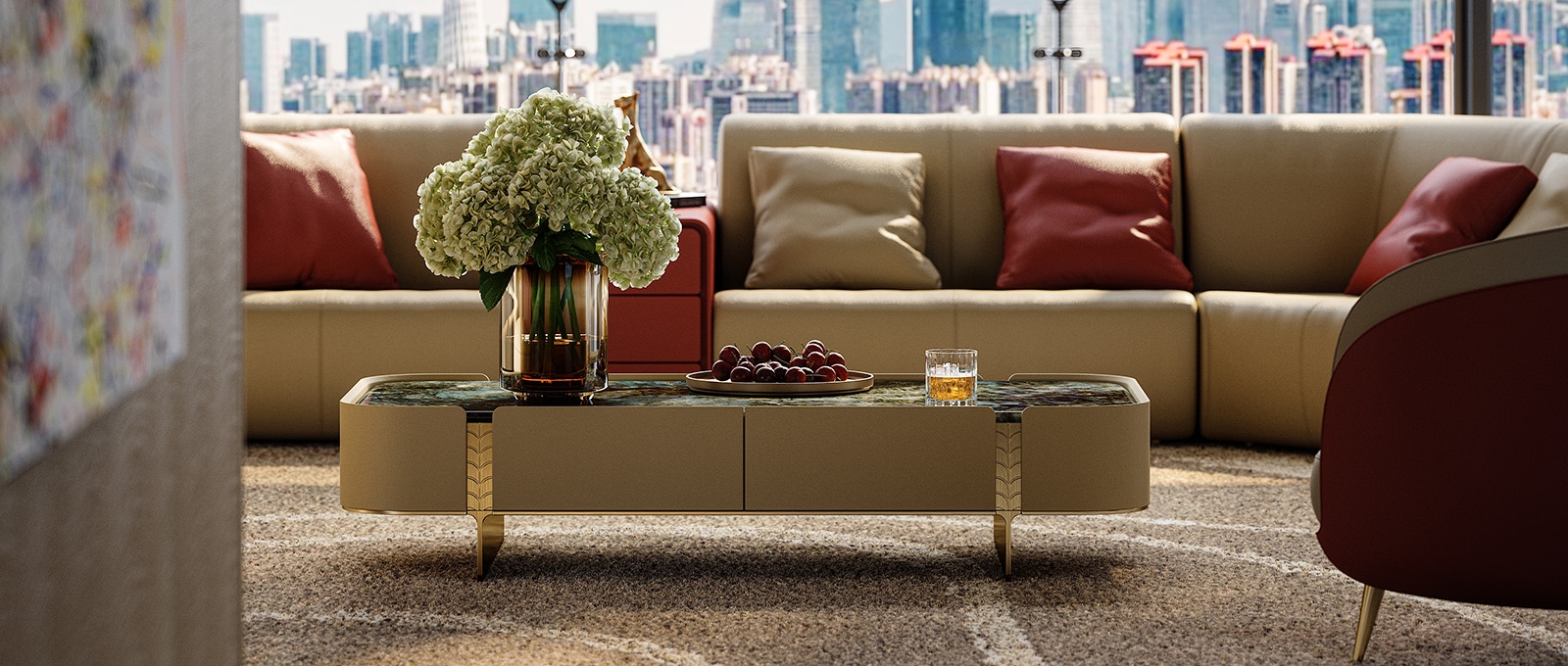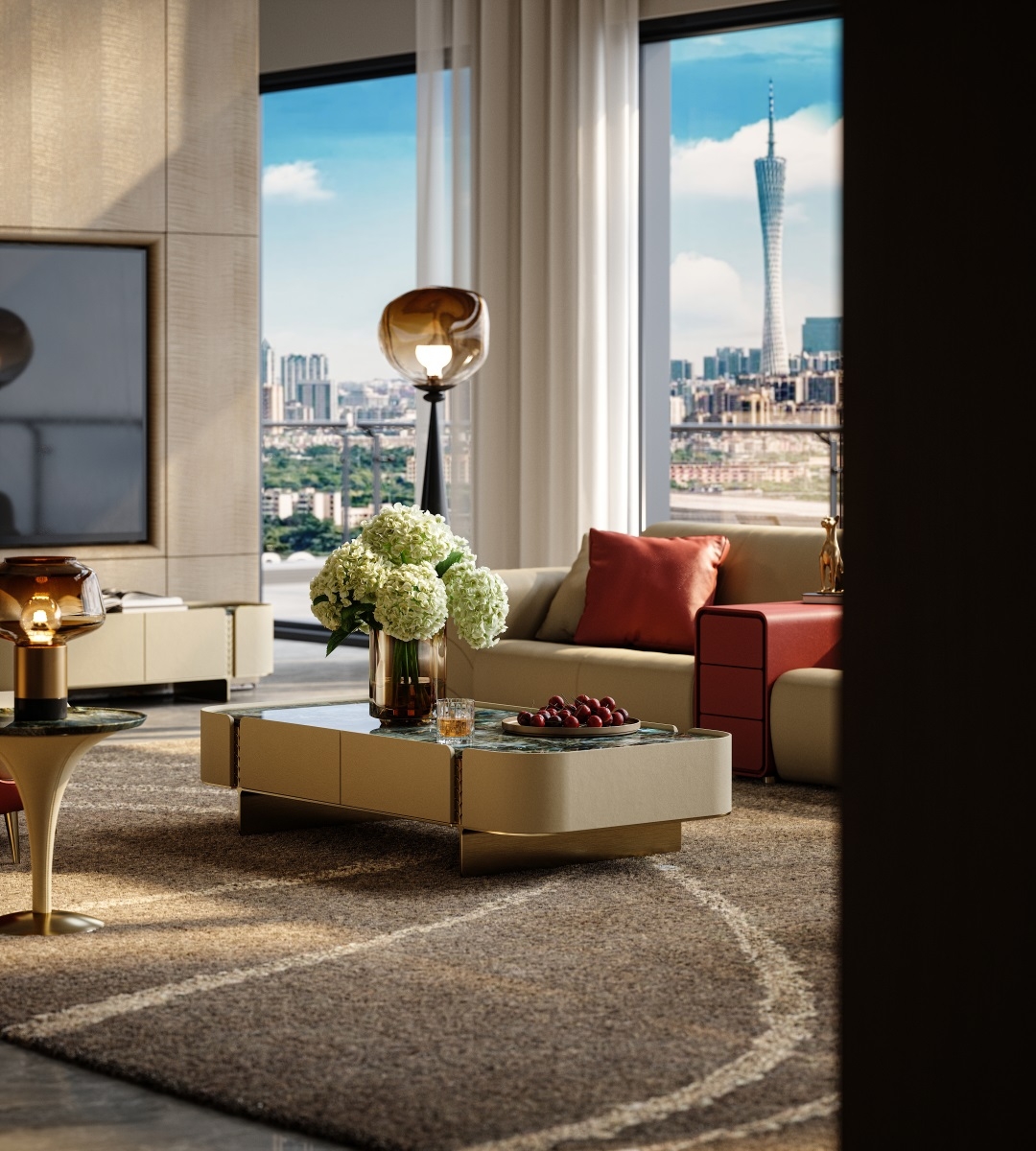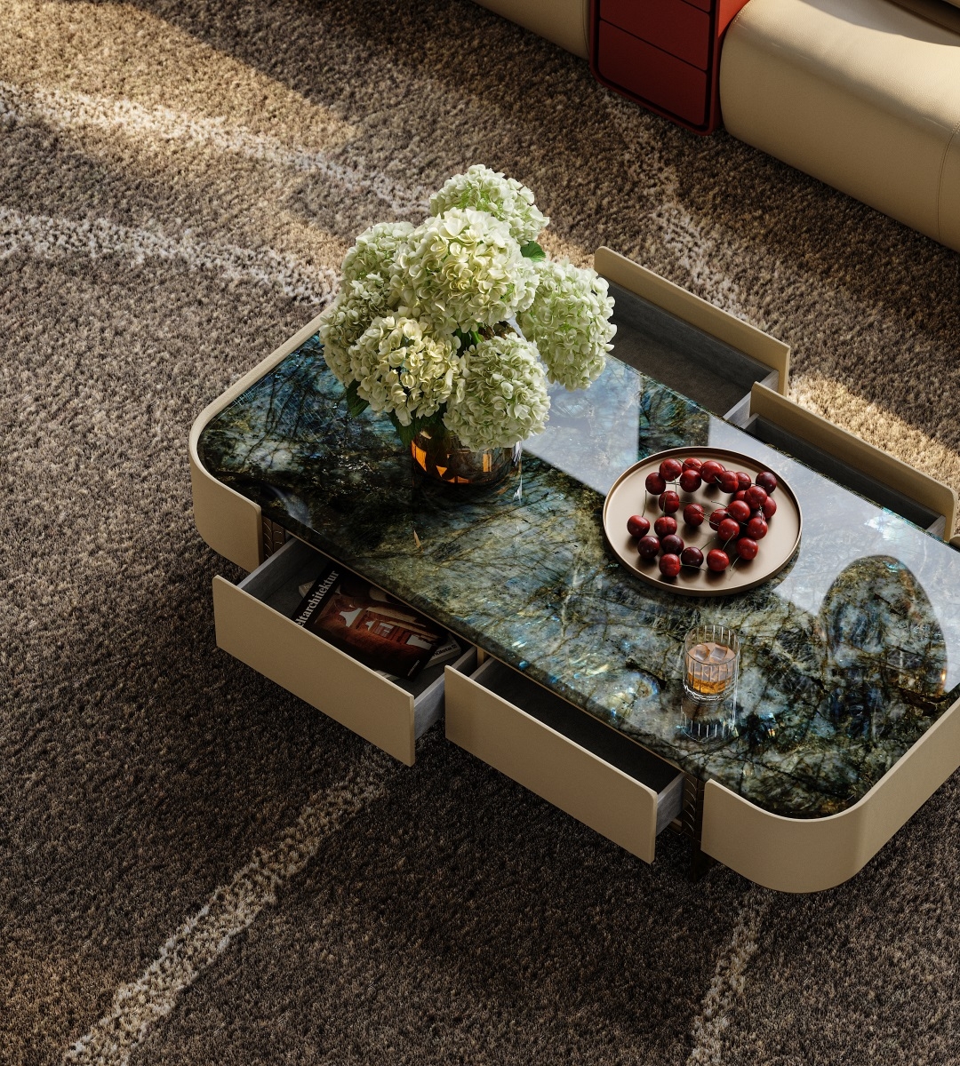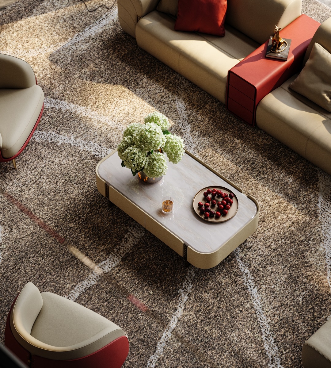The natural luxury stone tabletop is warm and opulent, the cabinet body is wrapped in delicate genuine leather,