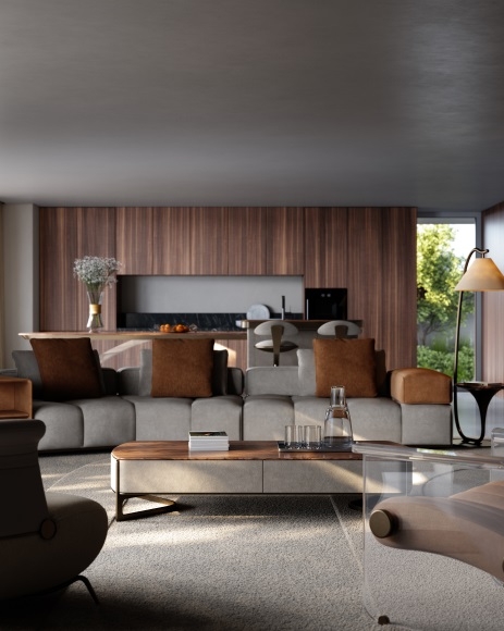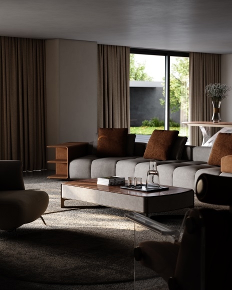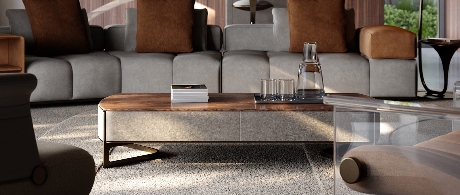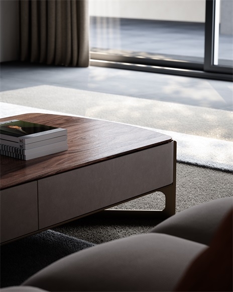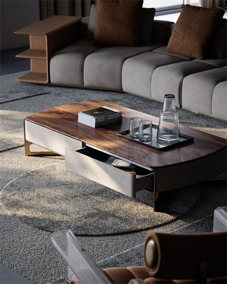 High - end coffee table with storage drawers, premium wood