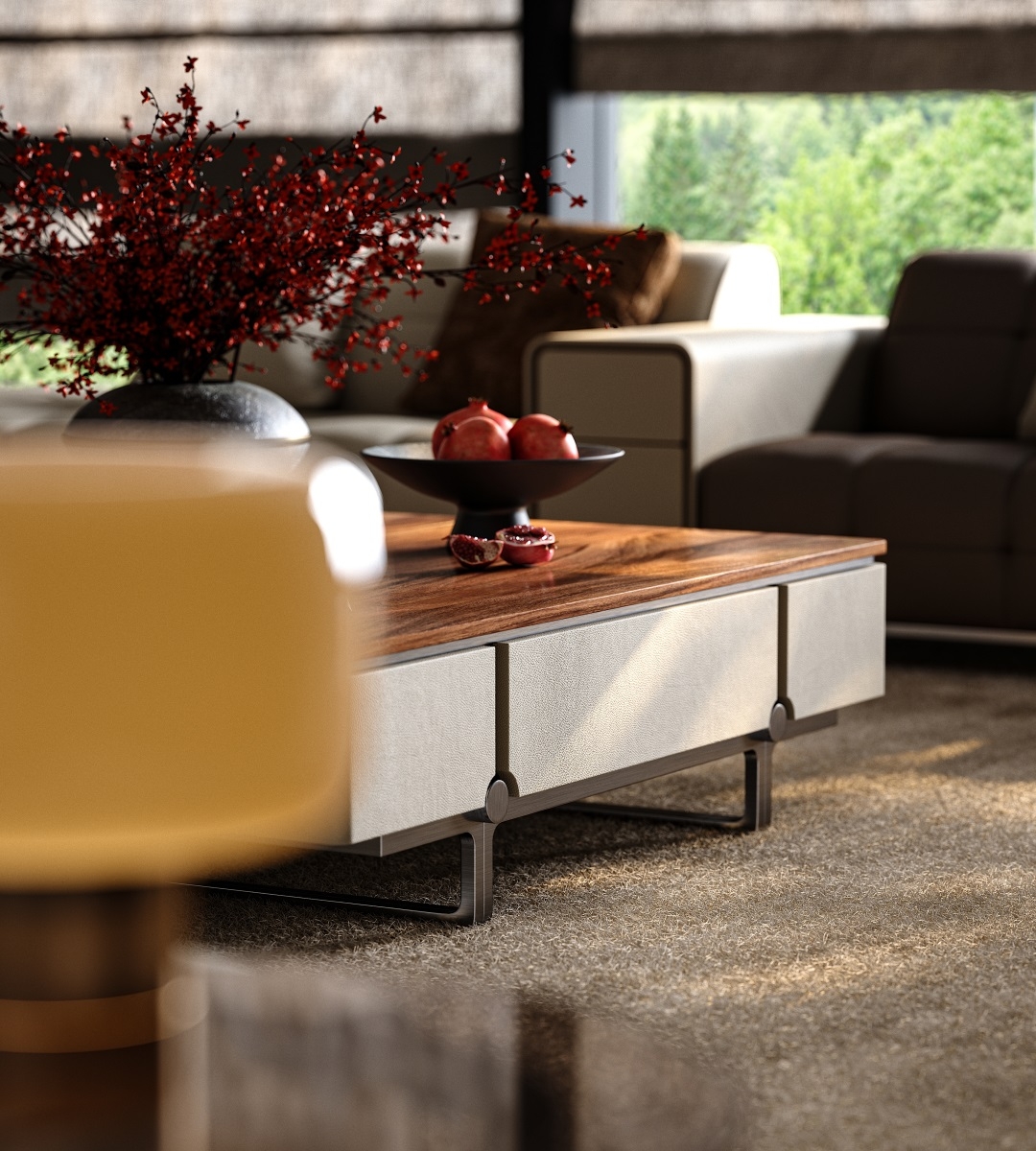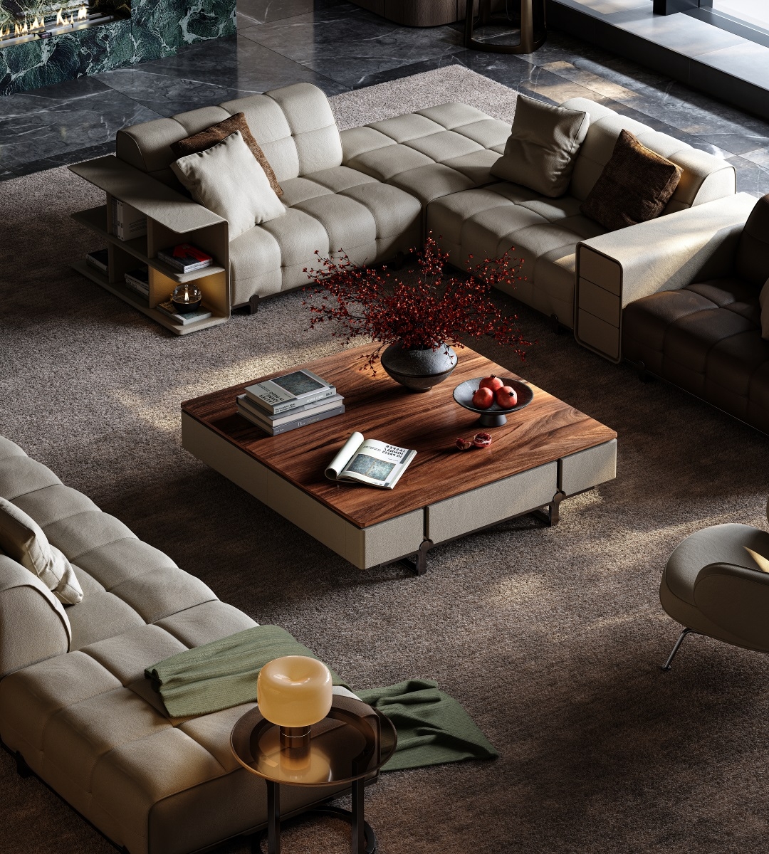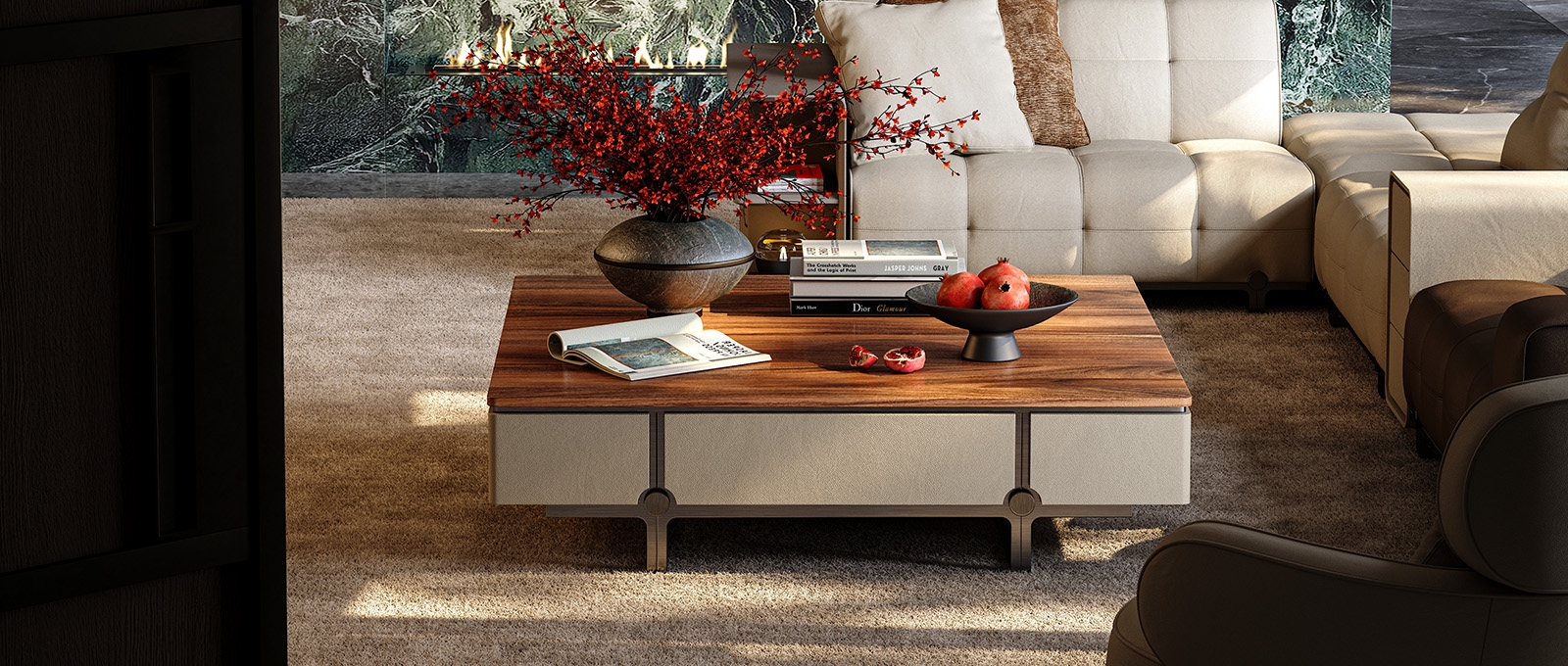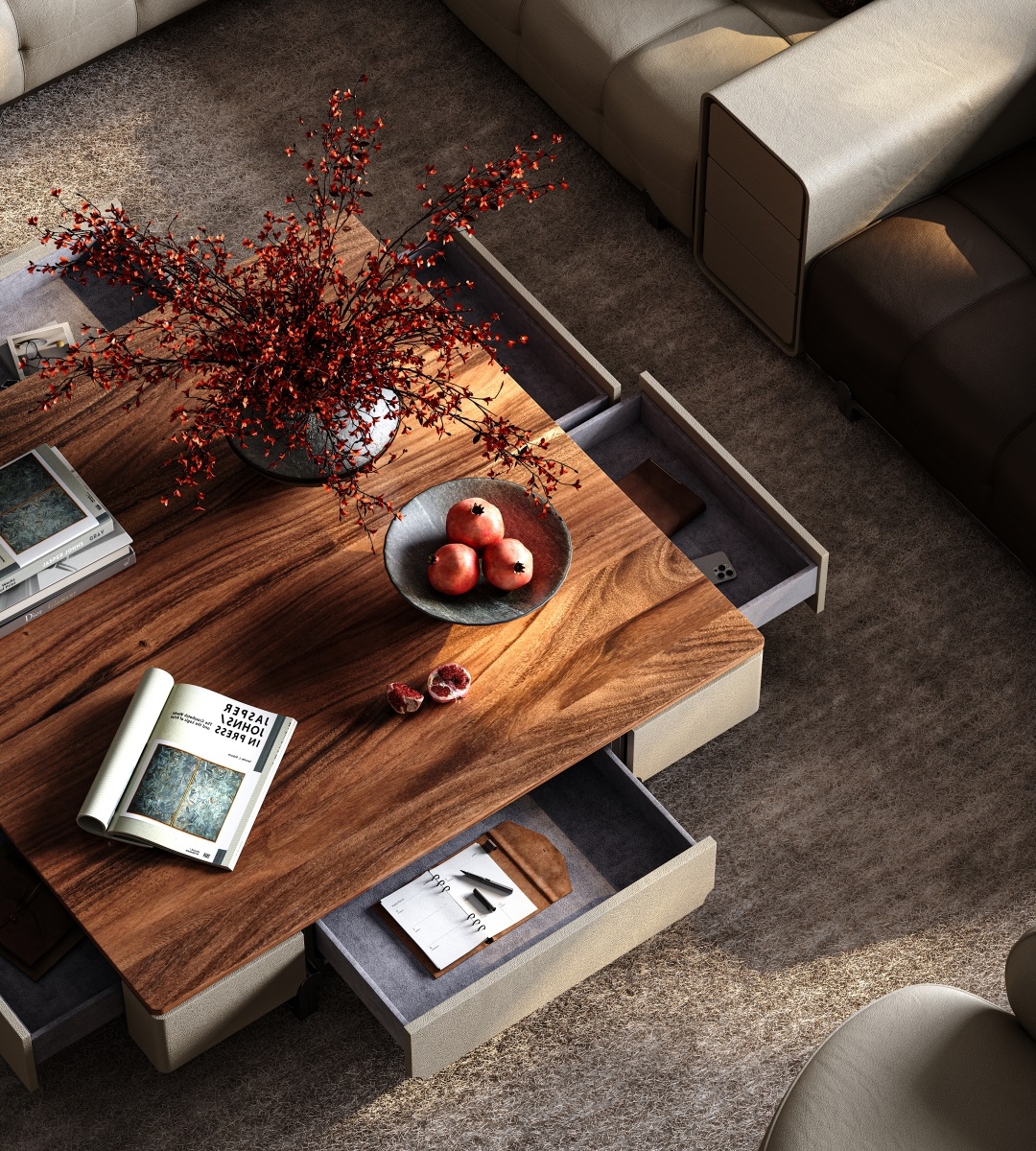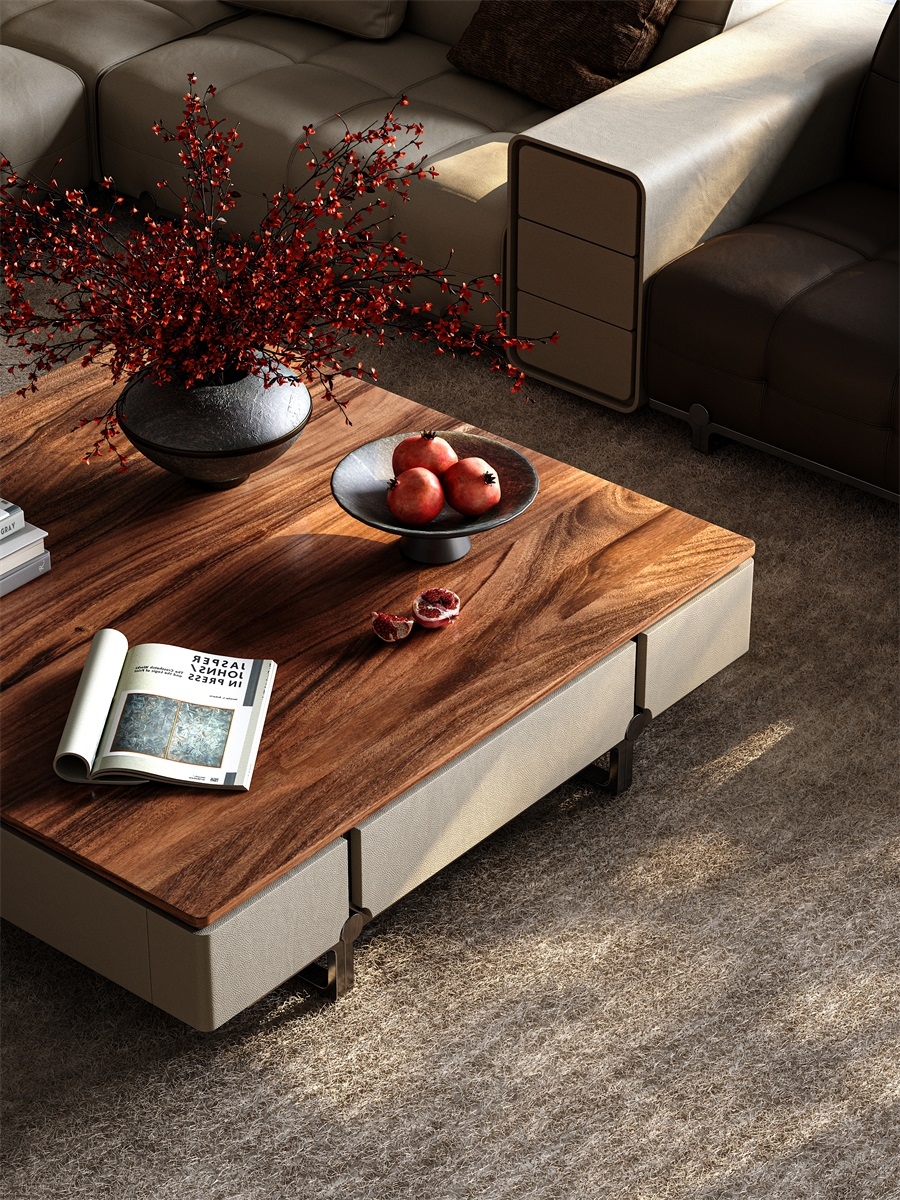Inspired by the traditional Chinese philosophy of a round heaven and a square earth, this Coffee Table features an exquisite axisymmetric structure. The square main body conveys steadiness while incorporating the gentleness of a circle, interpreting the aesthetics of Chinese craftsmanship through a perfect blend of firmness and softness.