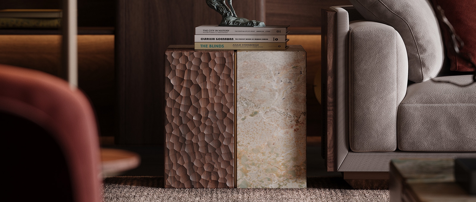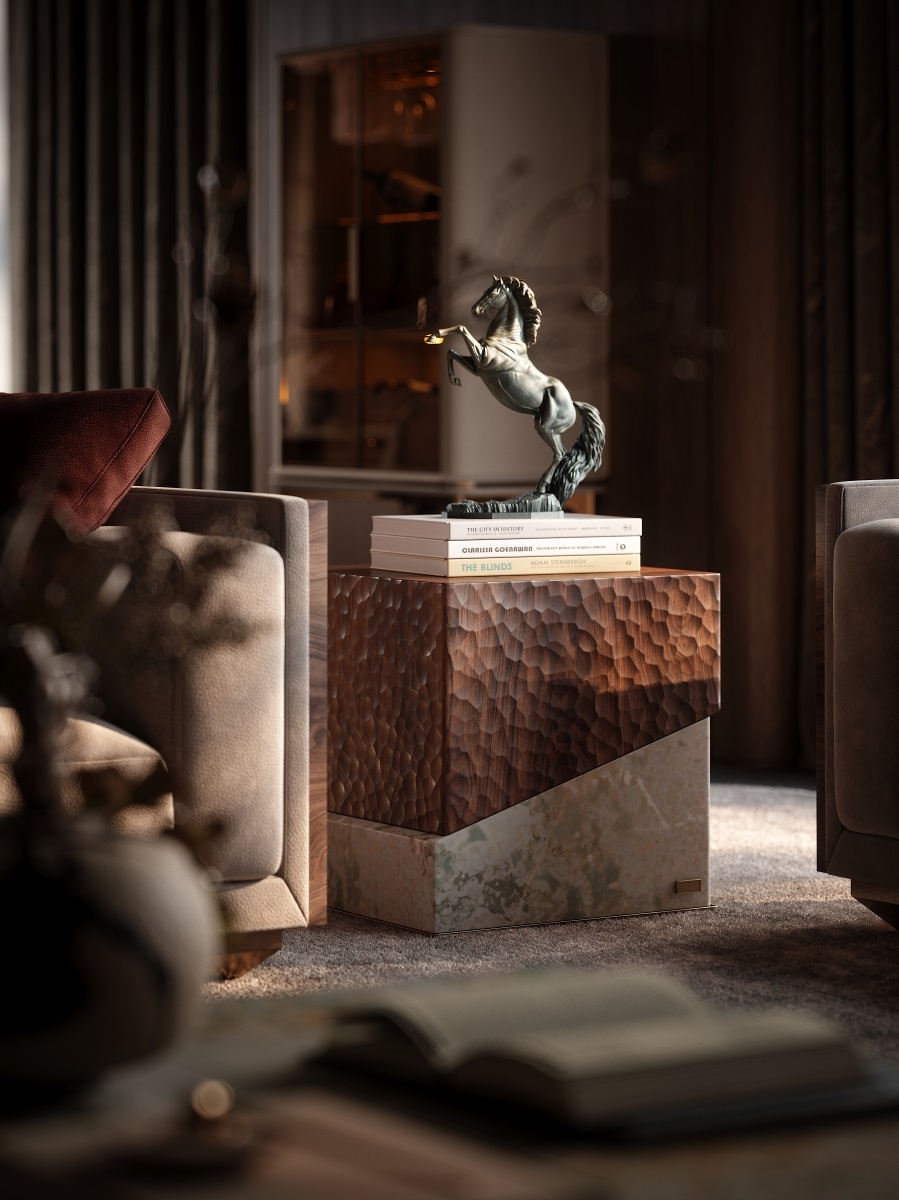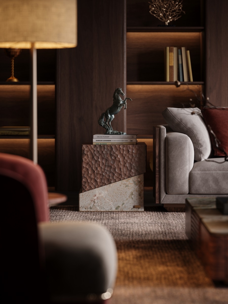 Hammered texture finish – North American black walnut veneer & Natural stone "Monet's Garden"